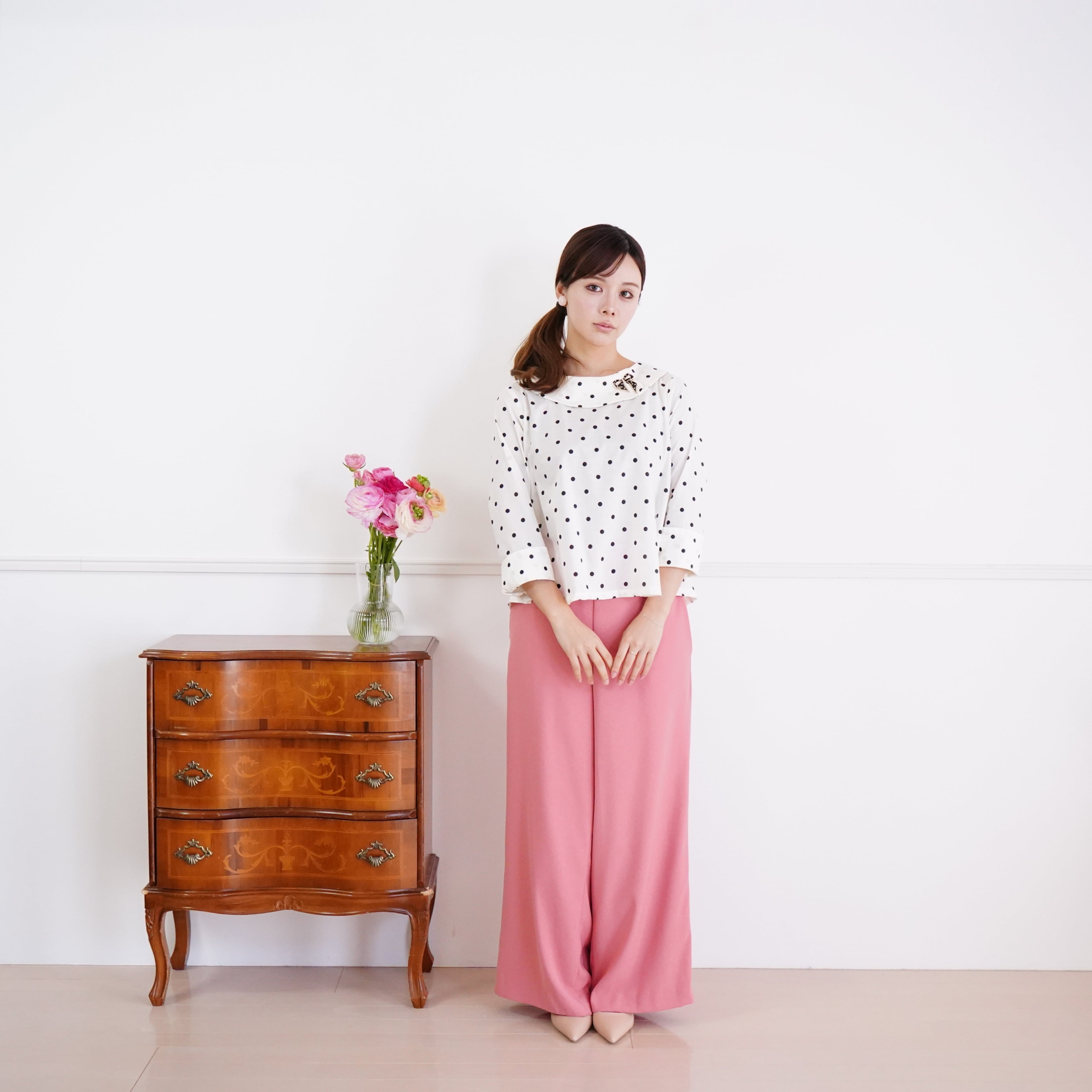 Roll and petal collar Blouse ロールペタルカラーブラウス(ドットオフホワイト)38