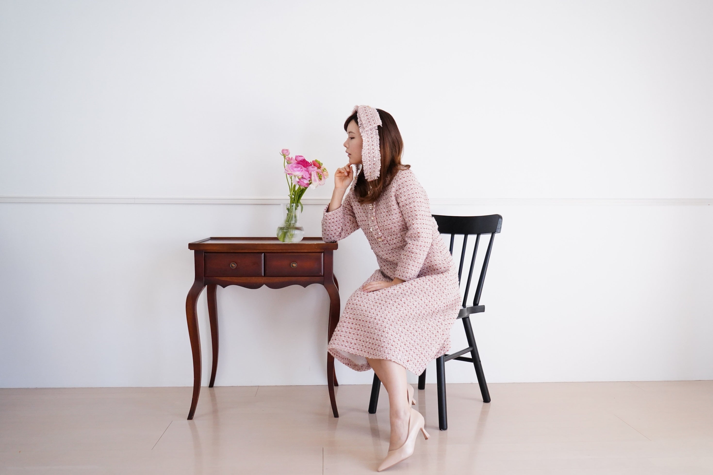Tweed Blouse ツイードフレアブラウス(ピンク)38
