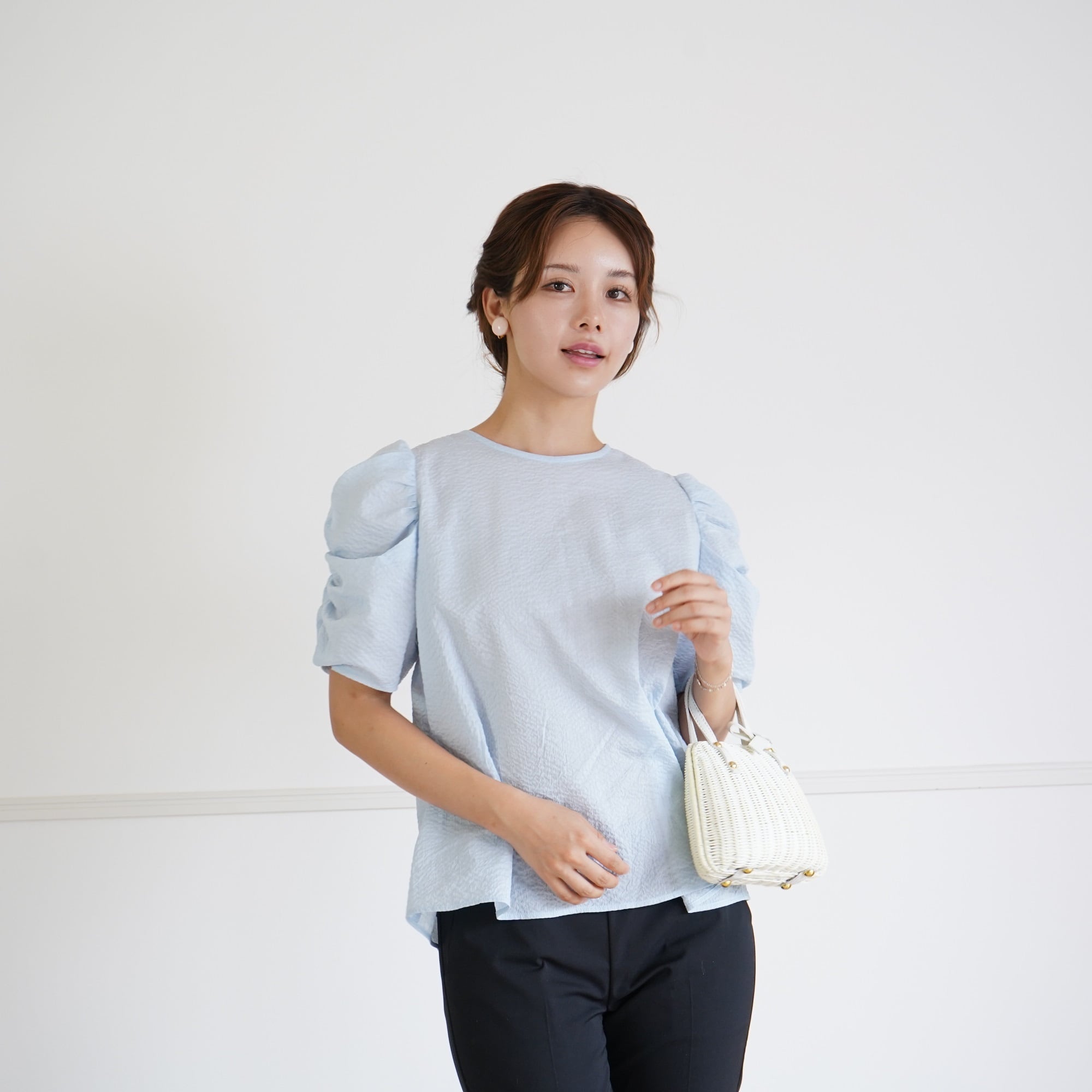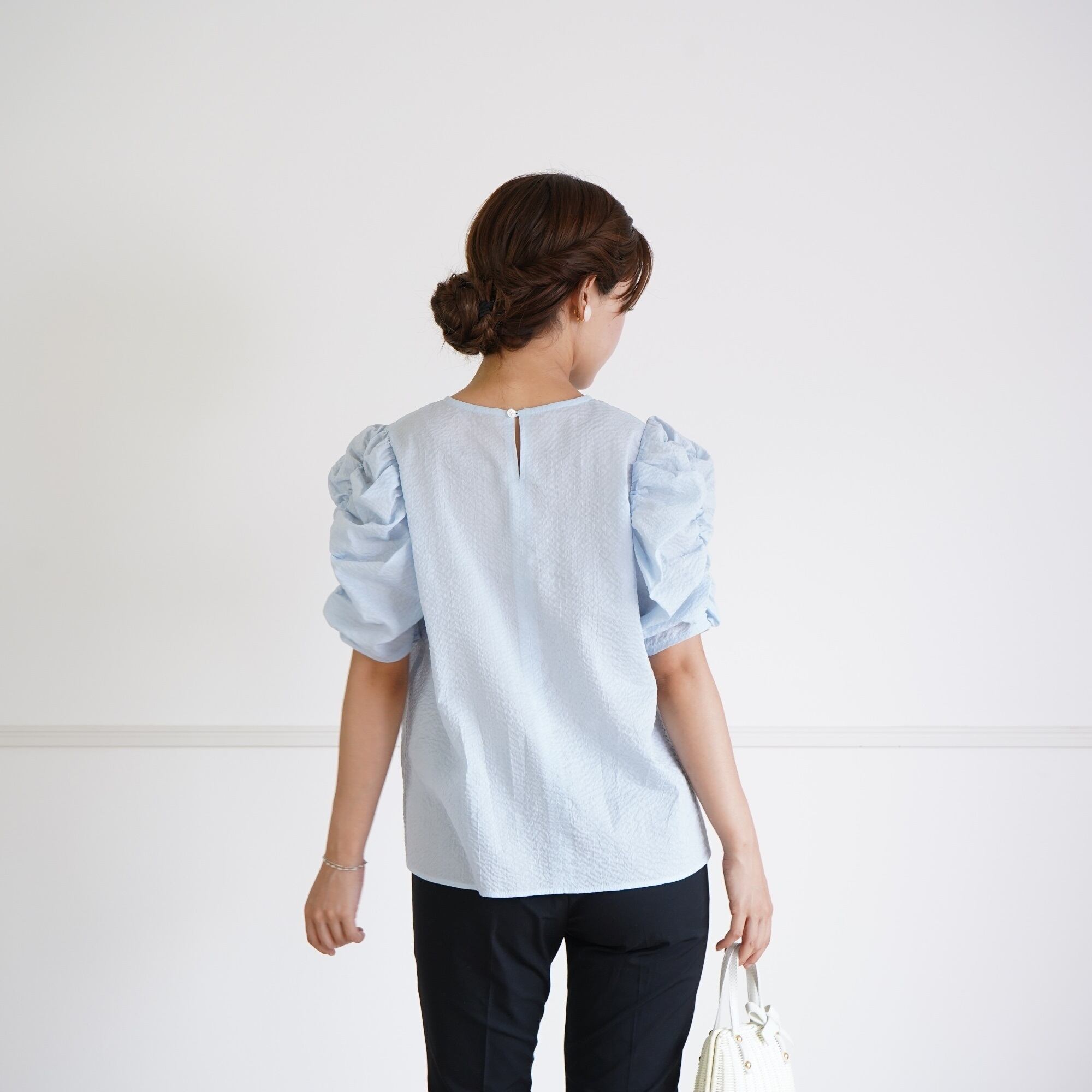Gathered sleeve blouse くしゅくしゅ袖ブラウス半袖(ライトブルー)38