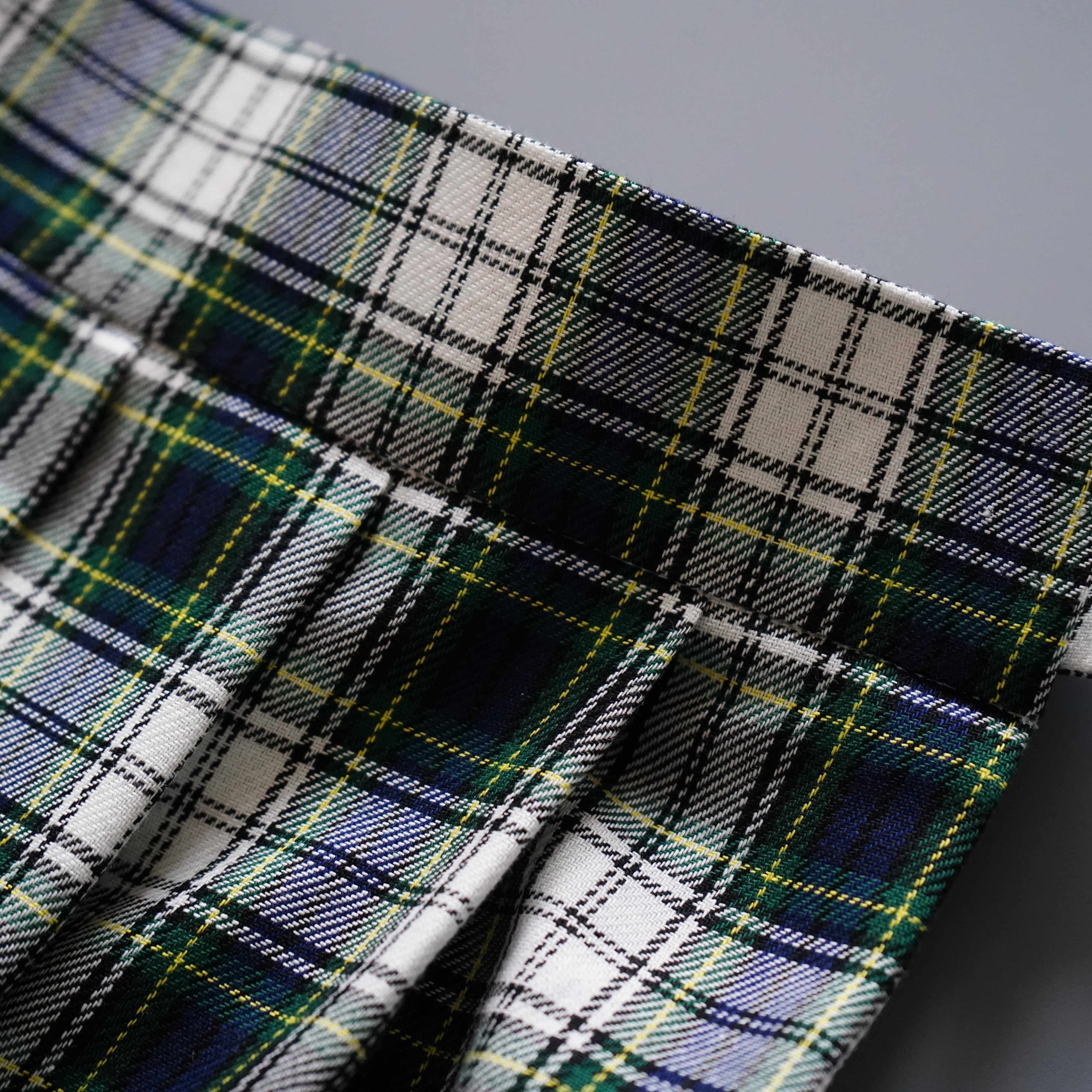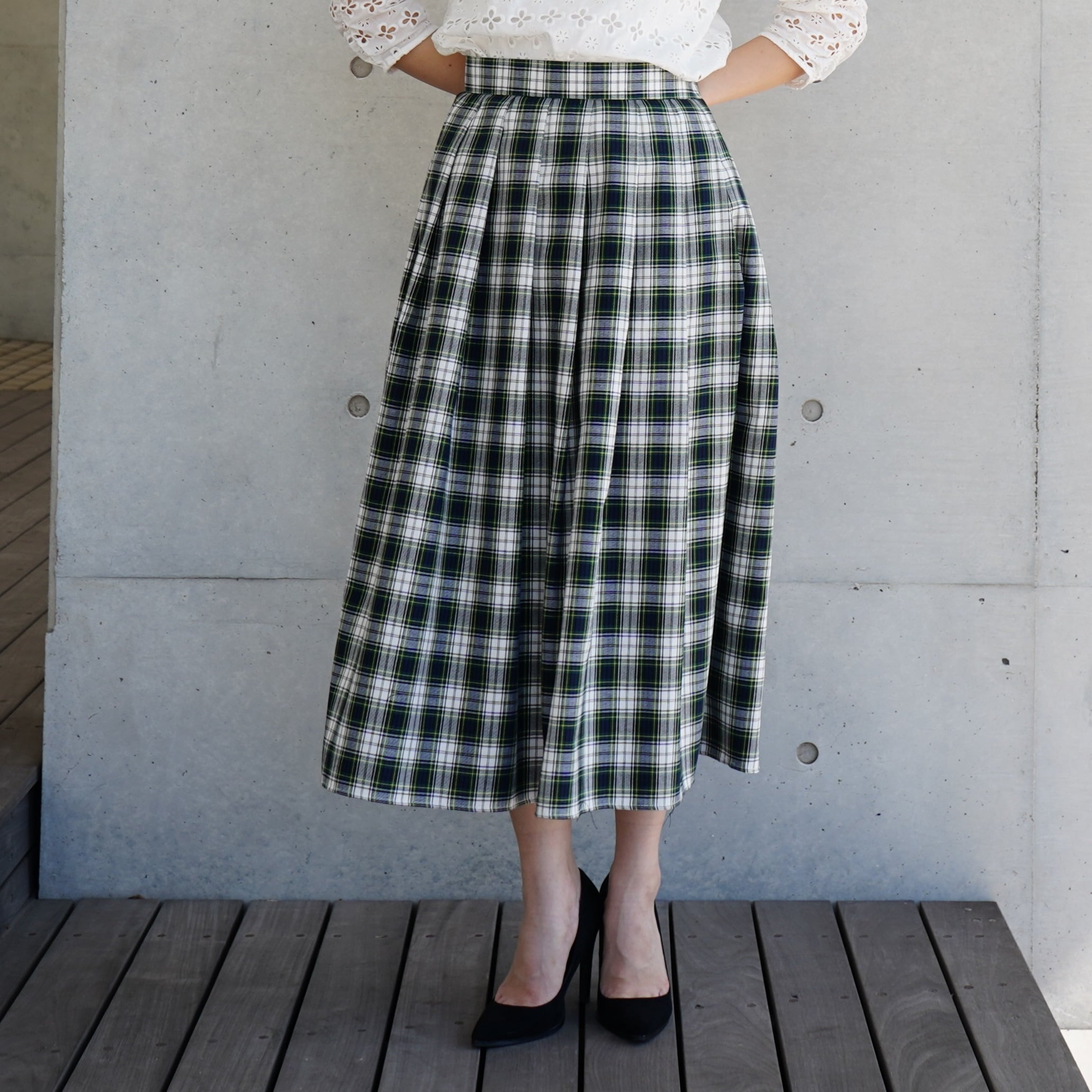 タータンチェックソフトプリーツスカート(グリーン×オフホワイト)36, 38