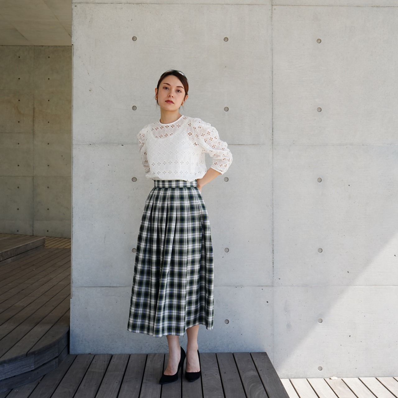 Tartan soft pleated skirt タータンチェックソフトプリーツスカート(グリーン×オフホワイト)36, 38