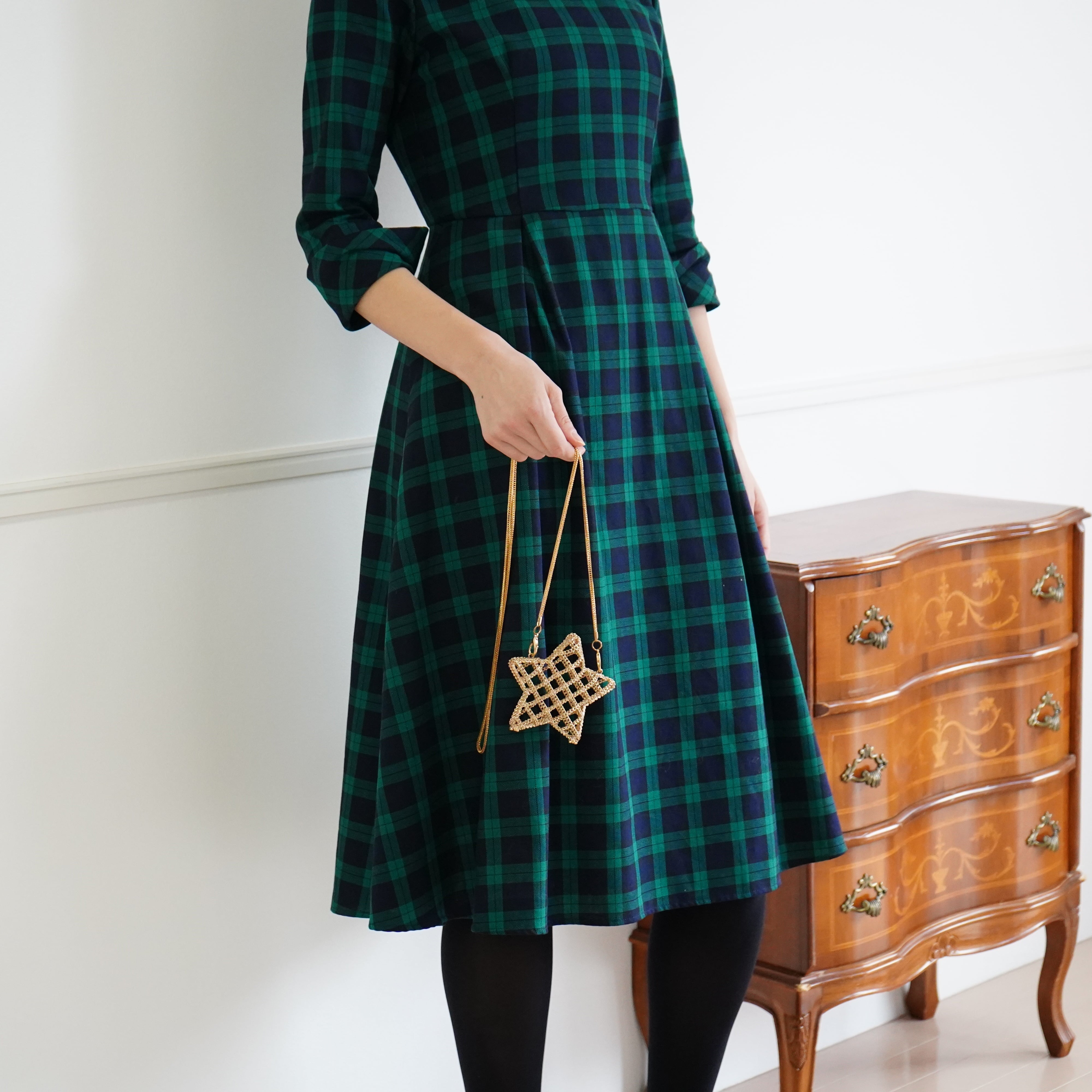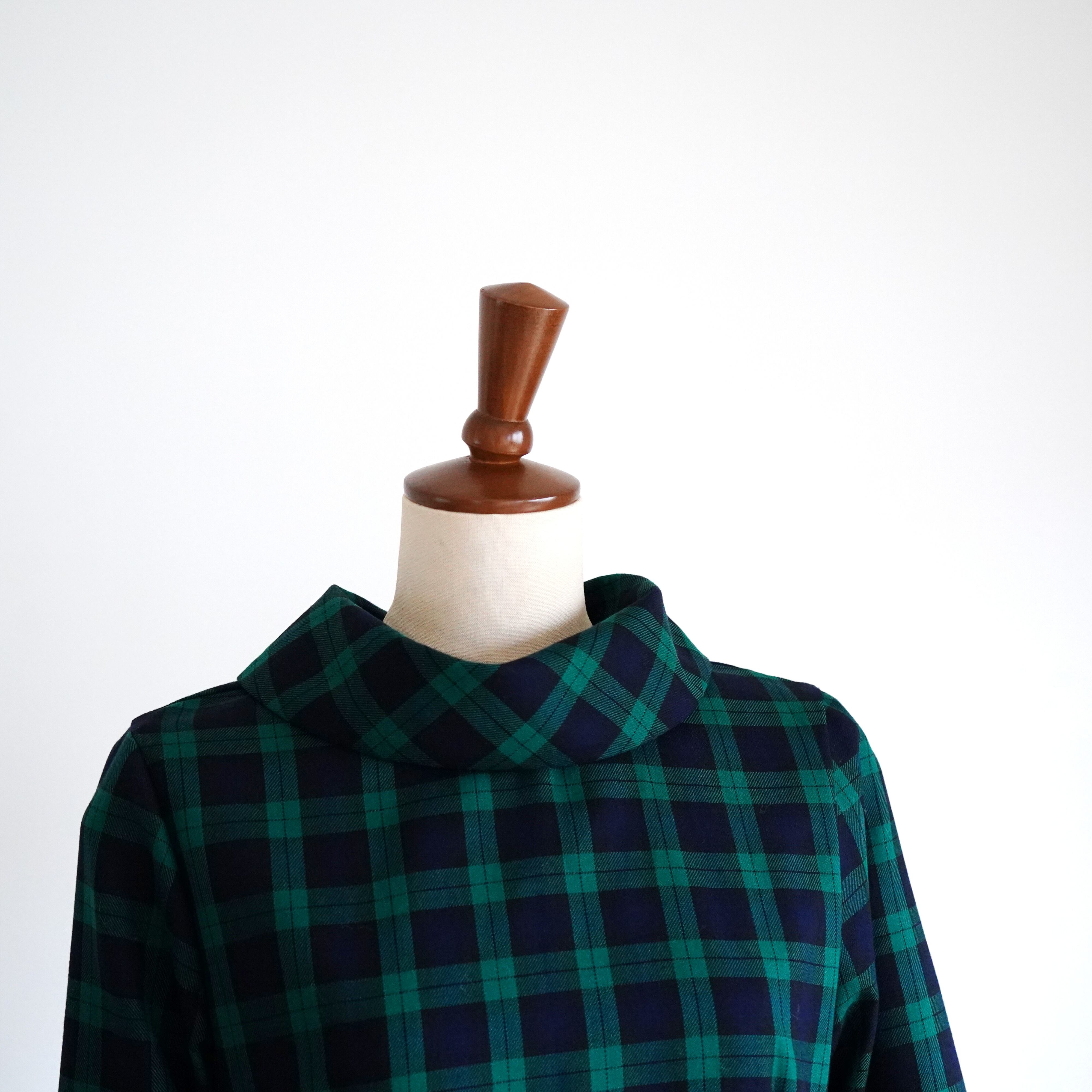 【再入荷】Tartan roll collar dress タータンチェックロールカラーワンピース(ネイビー)36, 38