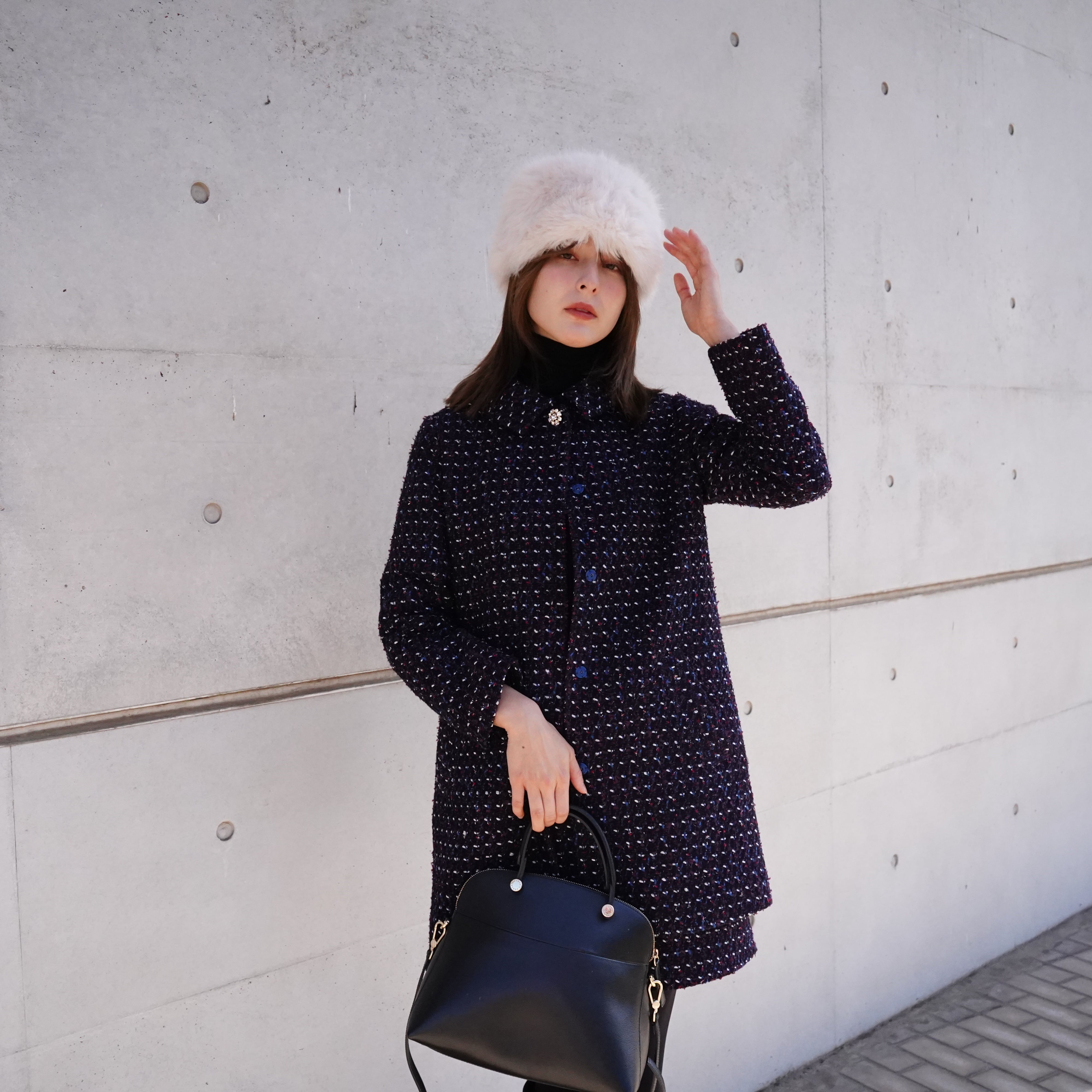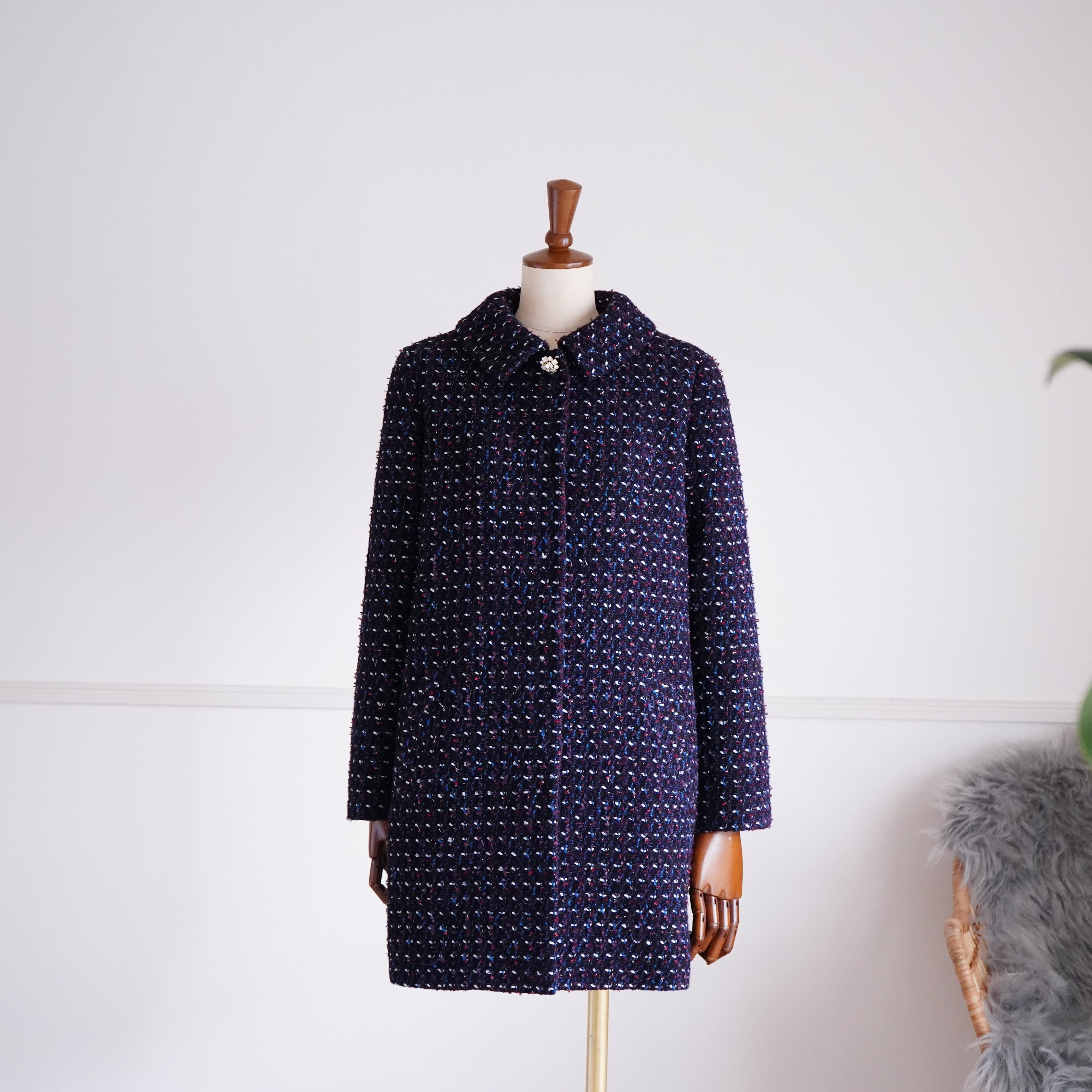 Tweed stand fall collar coat ツイードステンカラーコート(ネイビー)38
