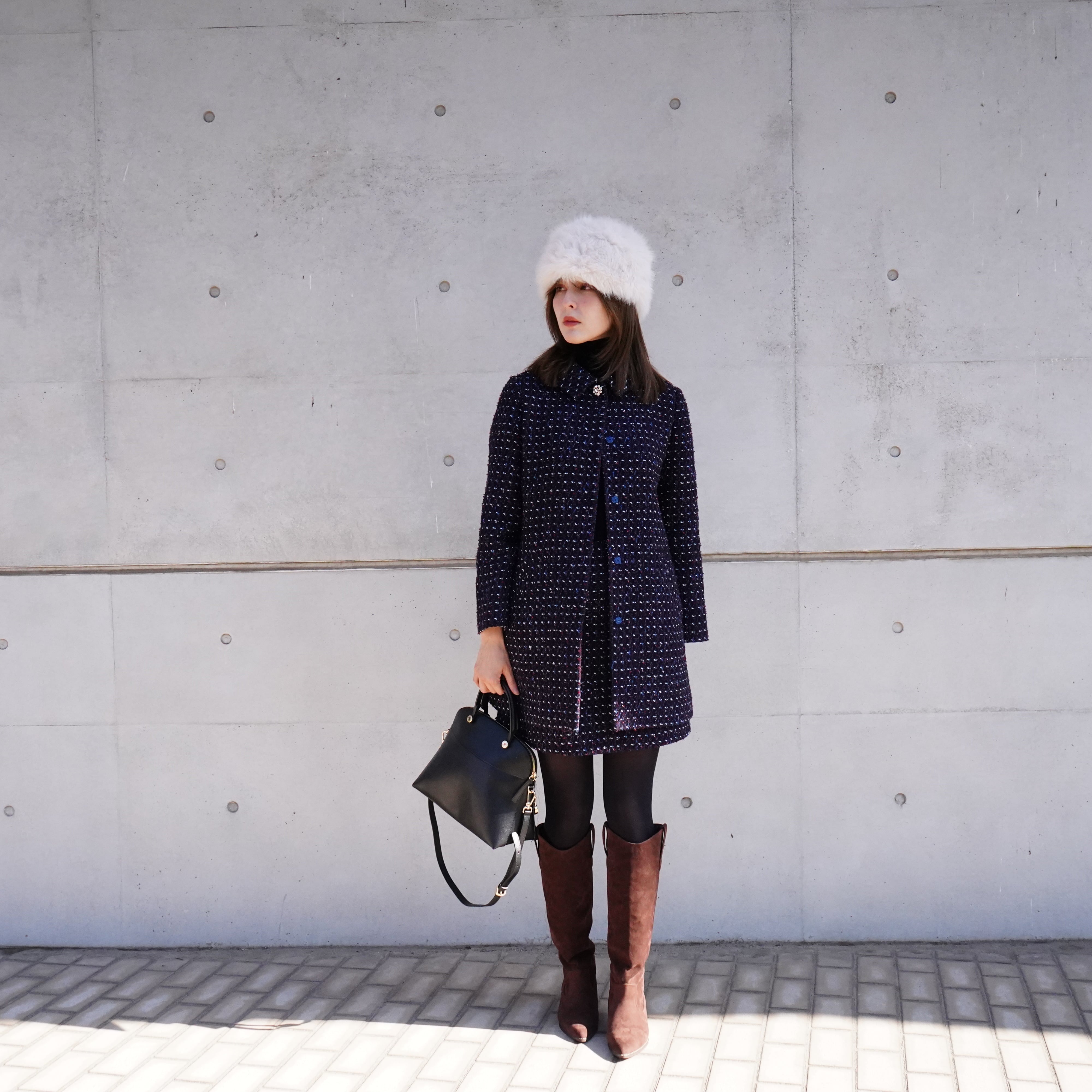 Tweed stand fall collar coat (navy)