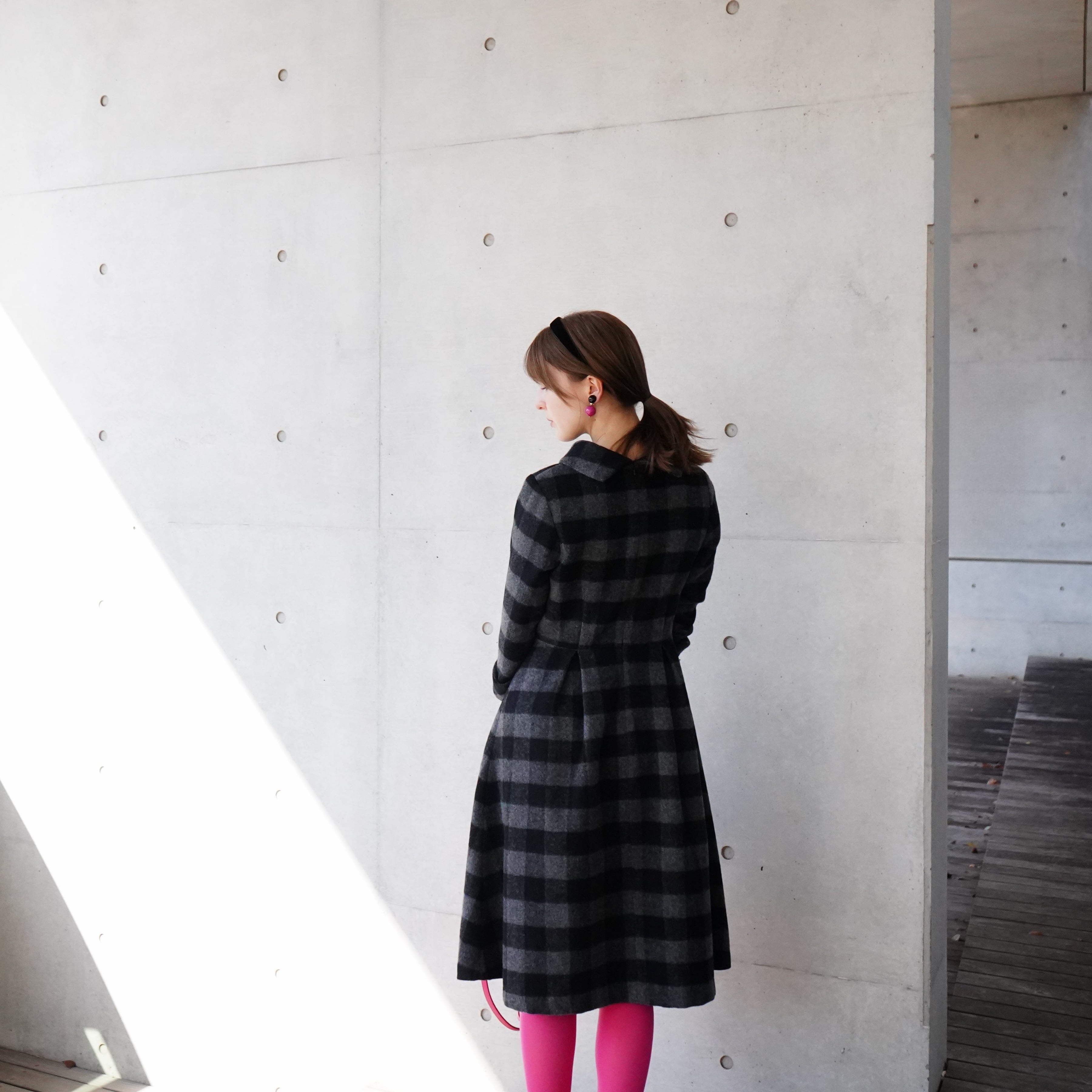 ※タータンチェックワンピースと比較して、身幅は1cm狭く、袖丈3cmは長くしました。