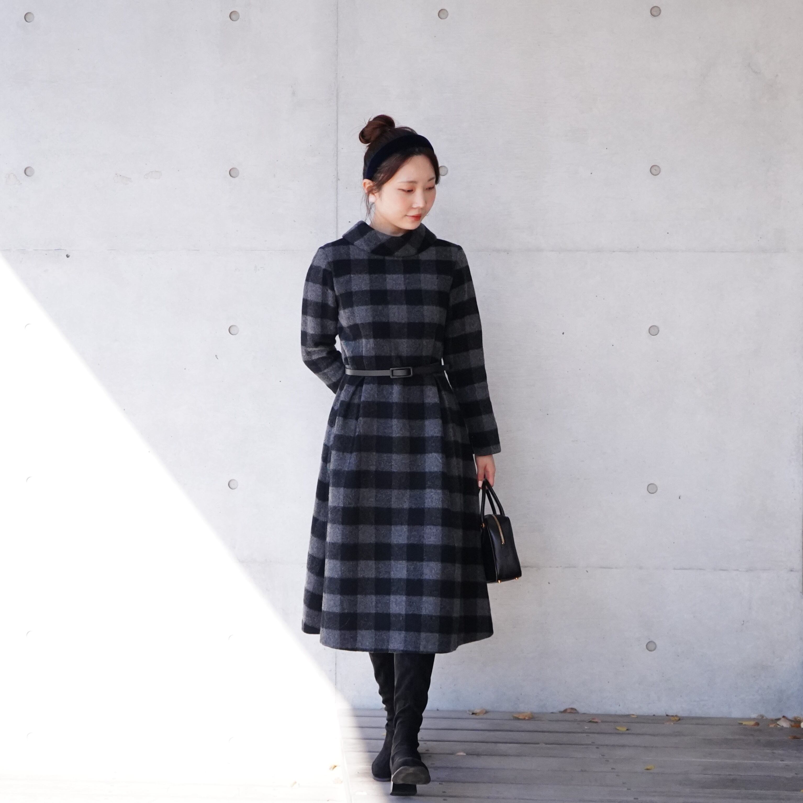 Winter check roll collar dress (gray)