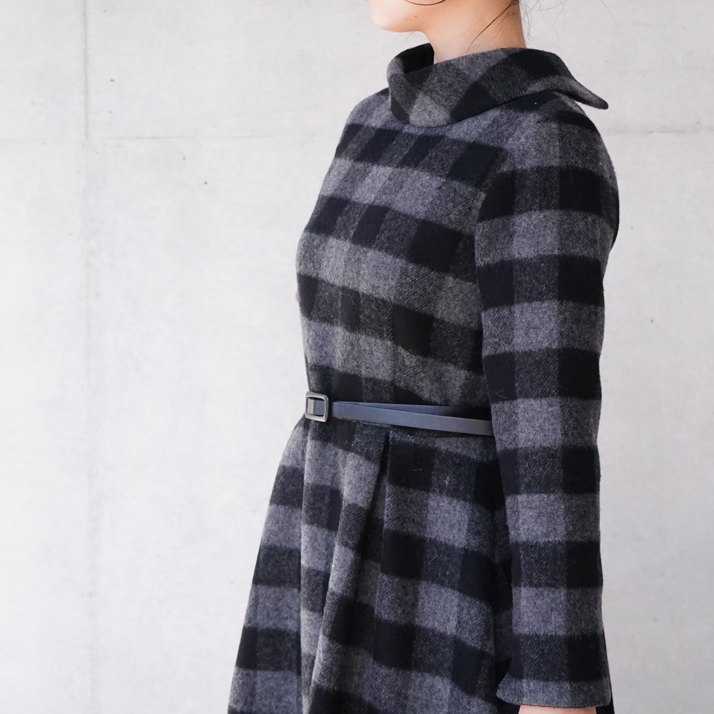 Winter check roll collar dress 冬のチェックロールカラーワンピース(グレー)36, 38