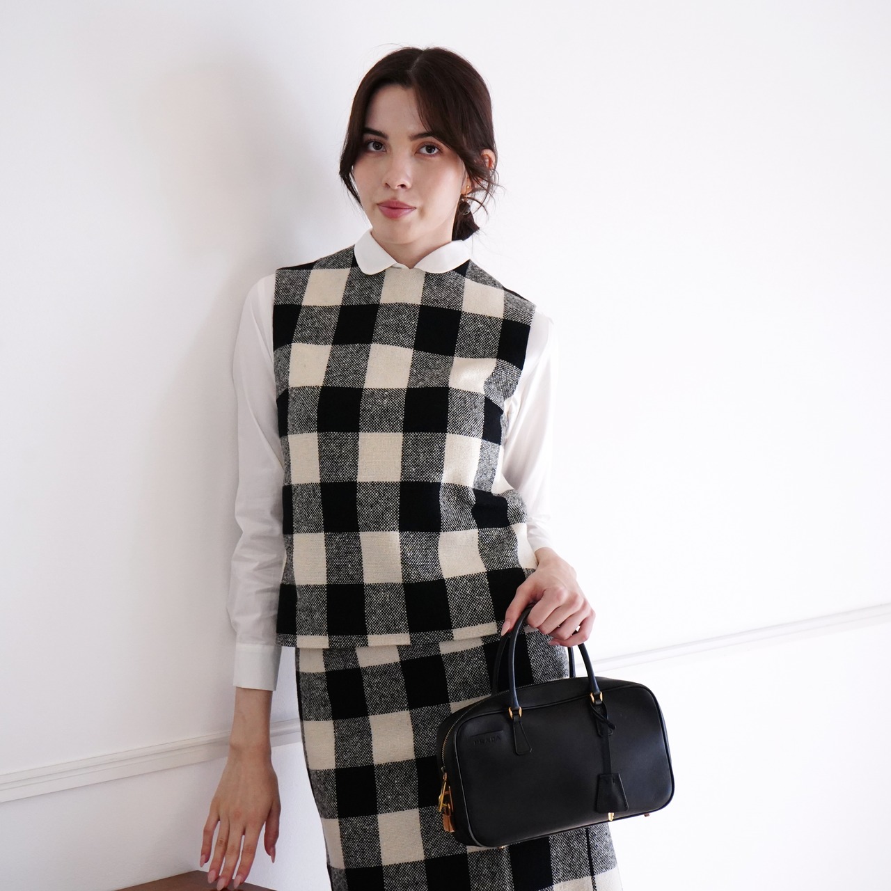 Gingham check Vest & Skirt (off white)