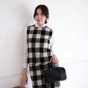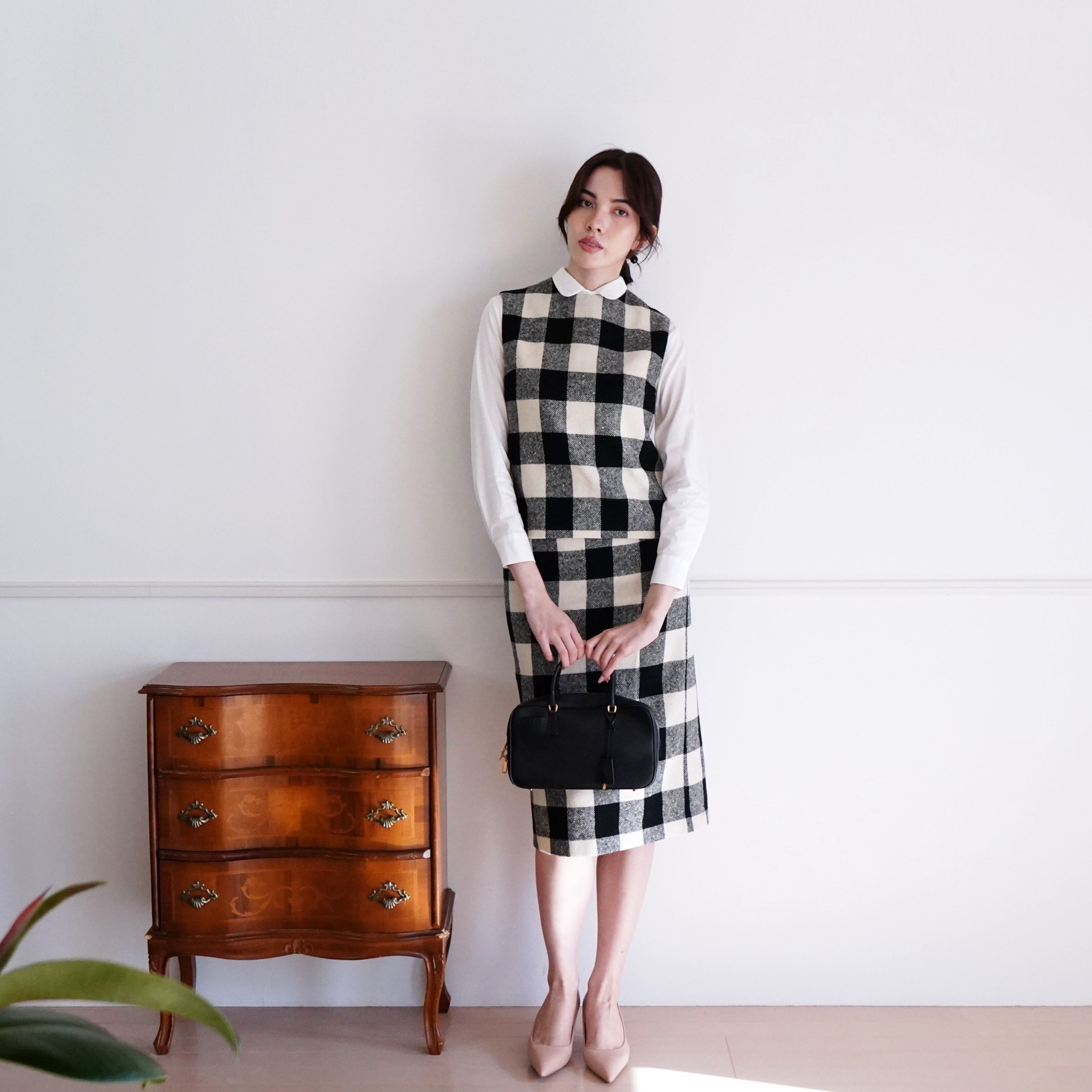 Gingham check Vest & Skirt ブロックチェックセットアップ(オフホワイト)36, 38