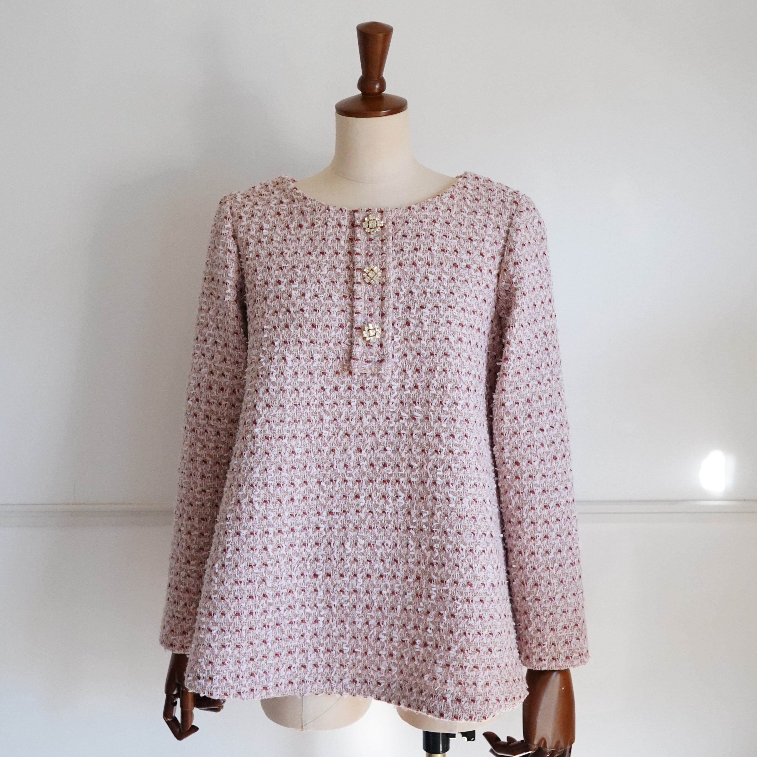 Tweed Blouse ツイードフレアブラウス(ピンク)38