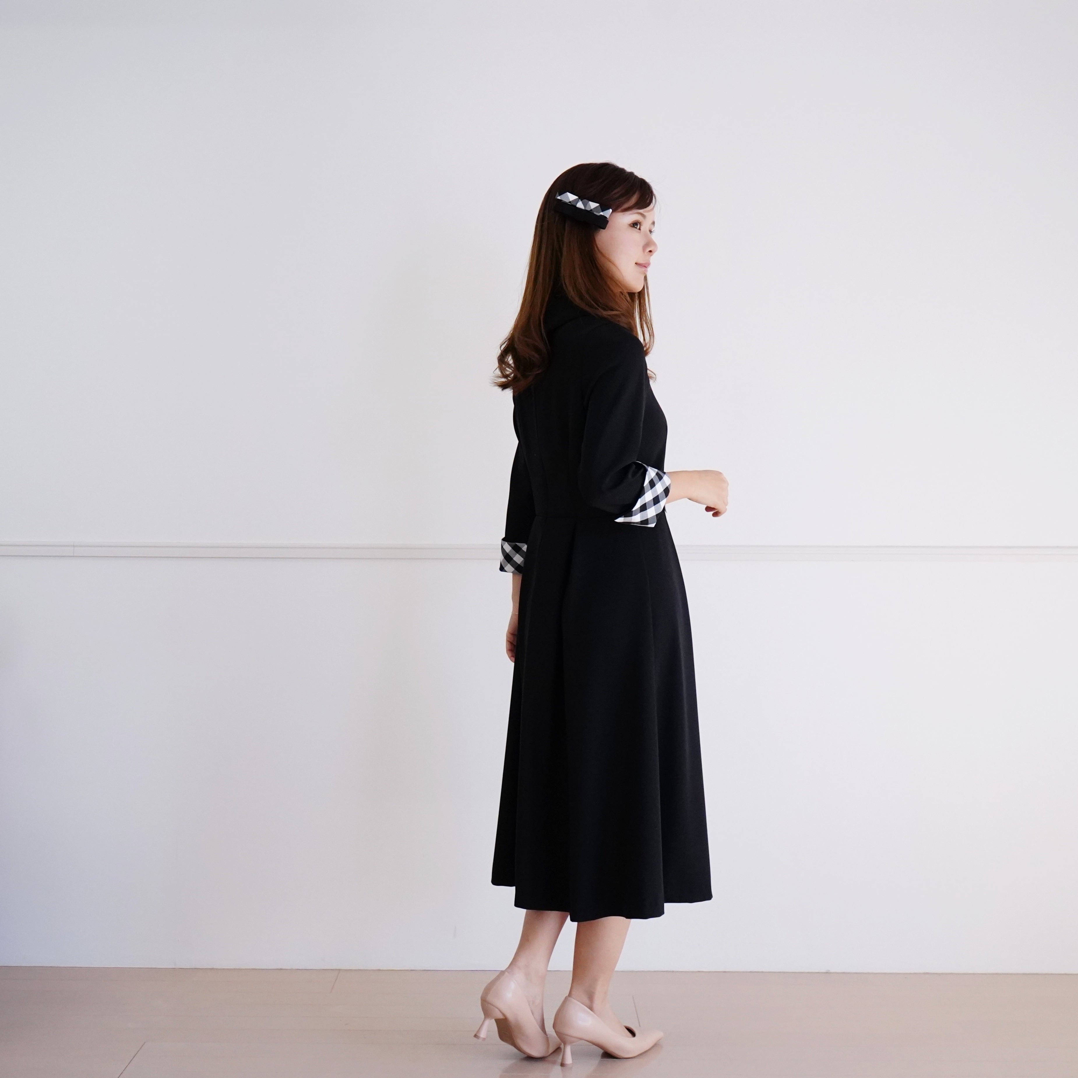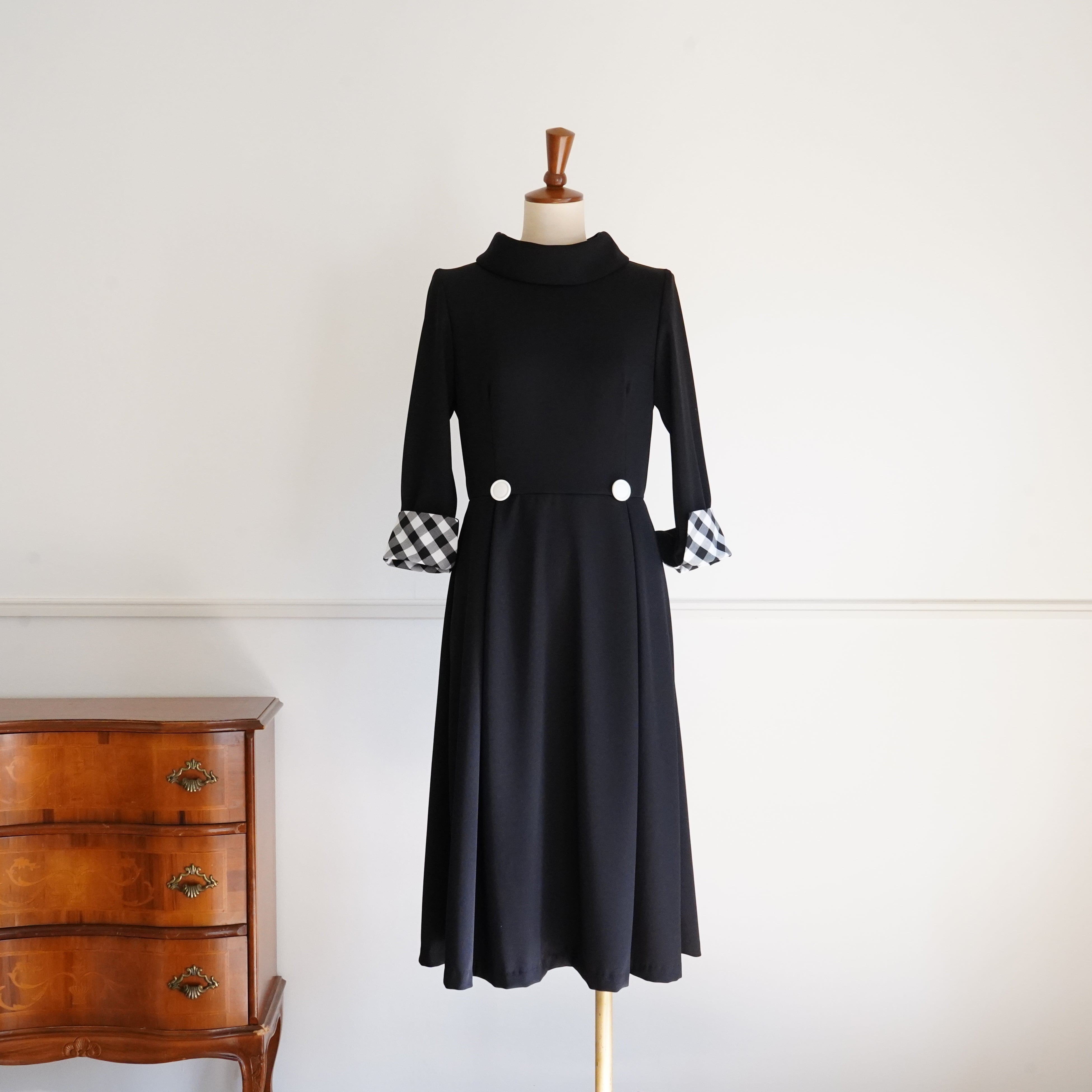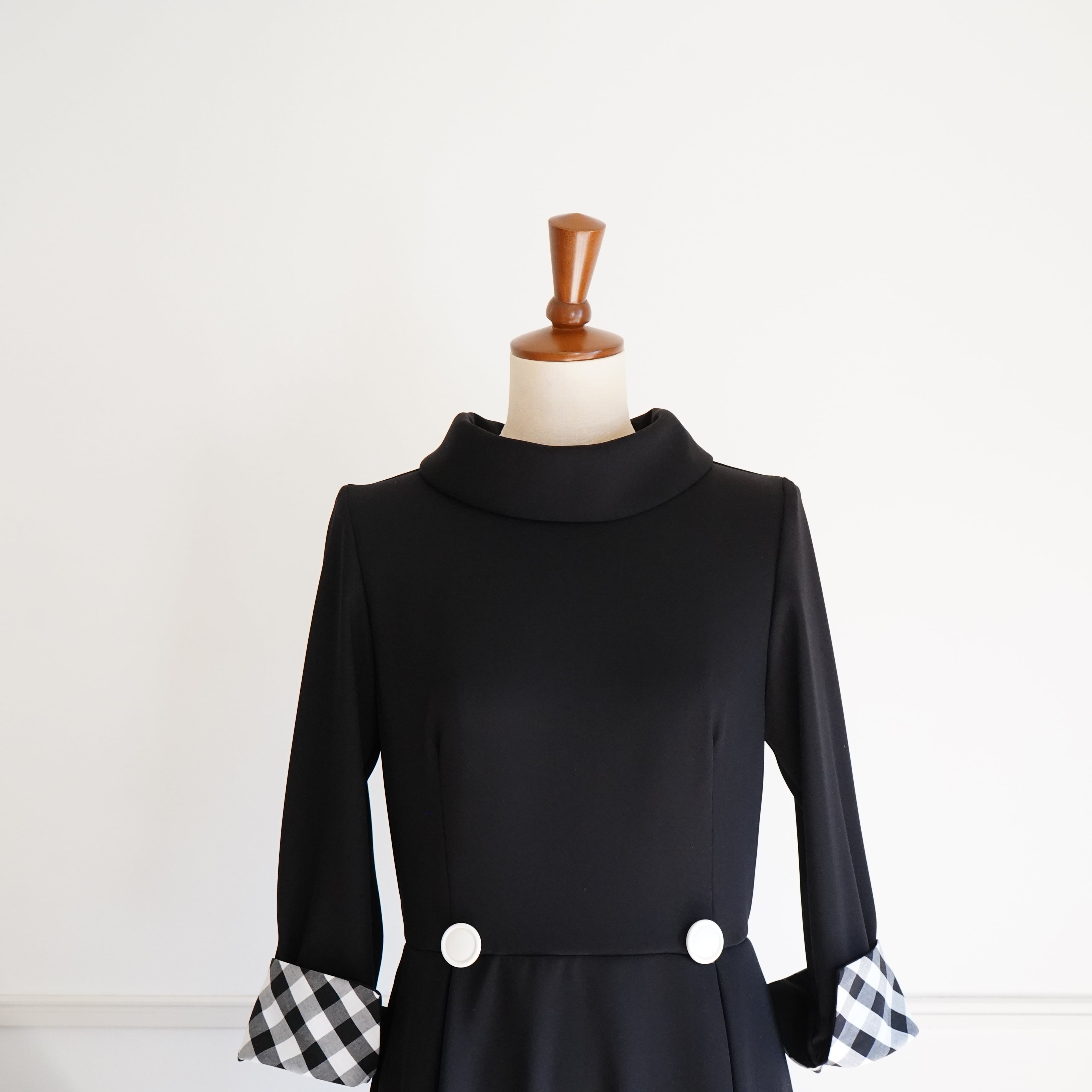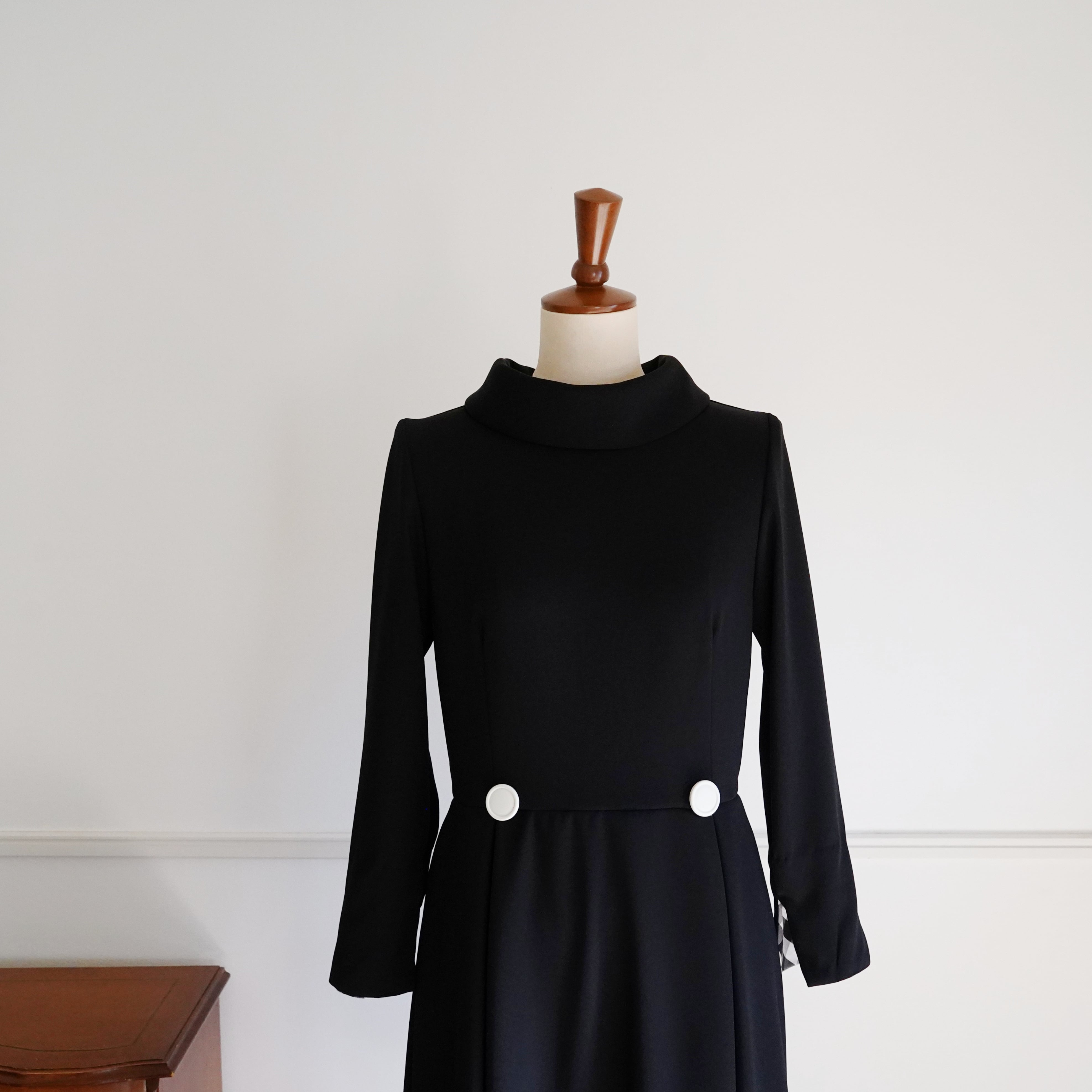 【オーダーは2/1まで】Roll Collar Dress ロールカラーワンピース(ブラック)36, 38