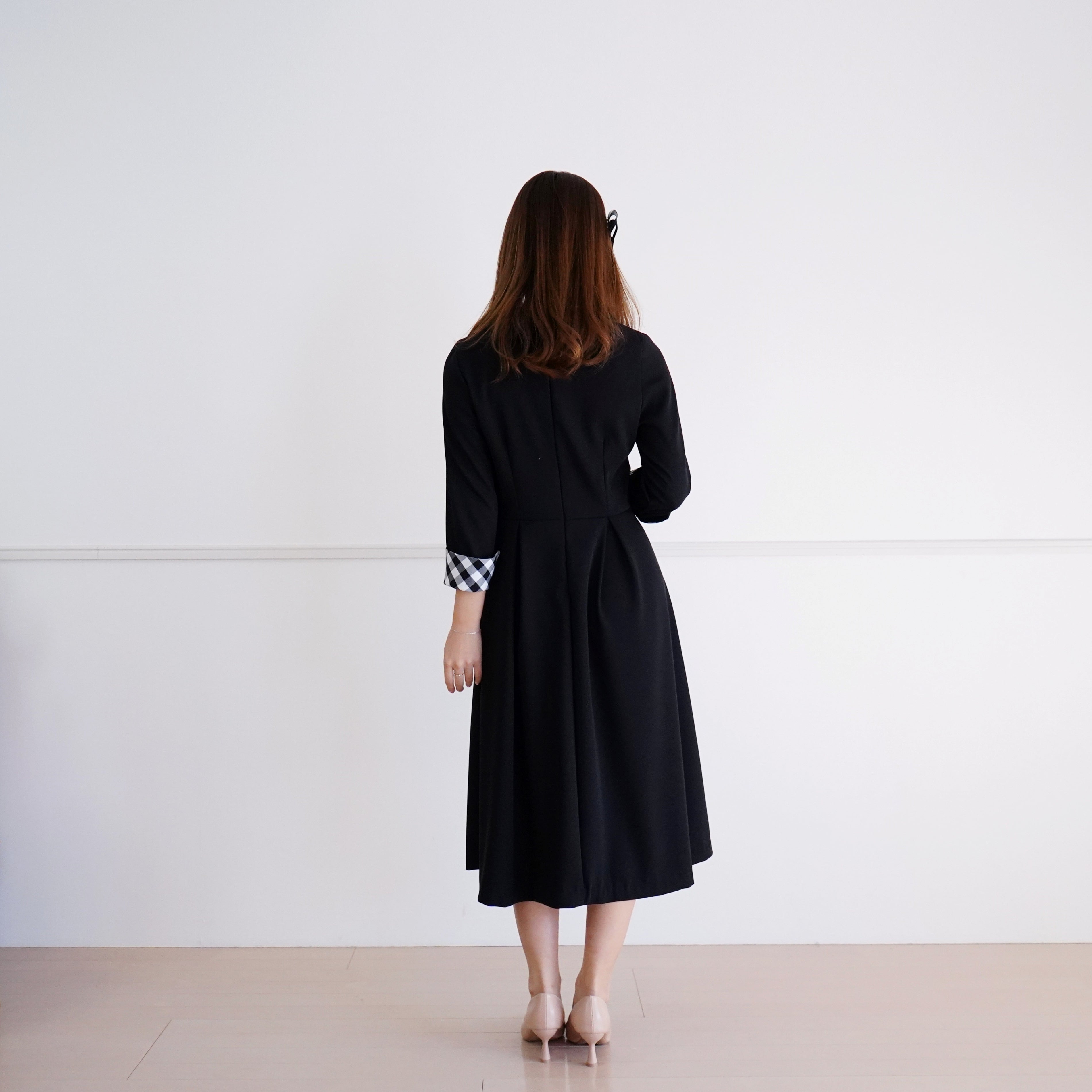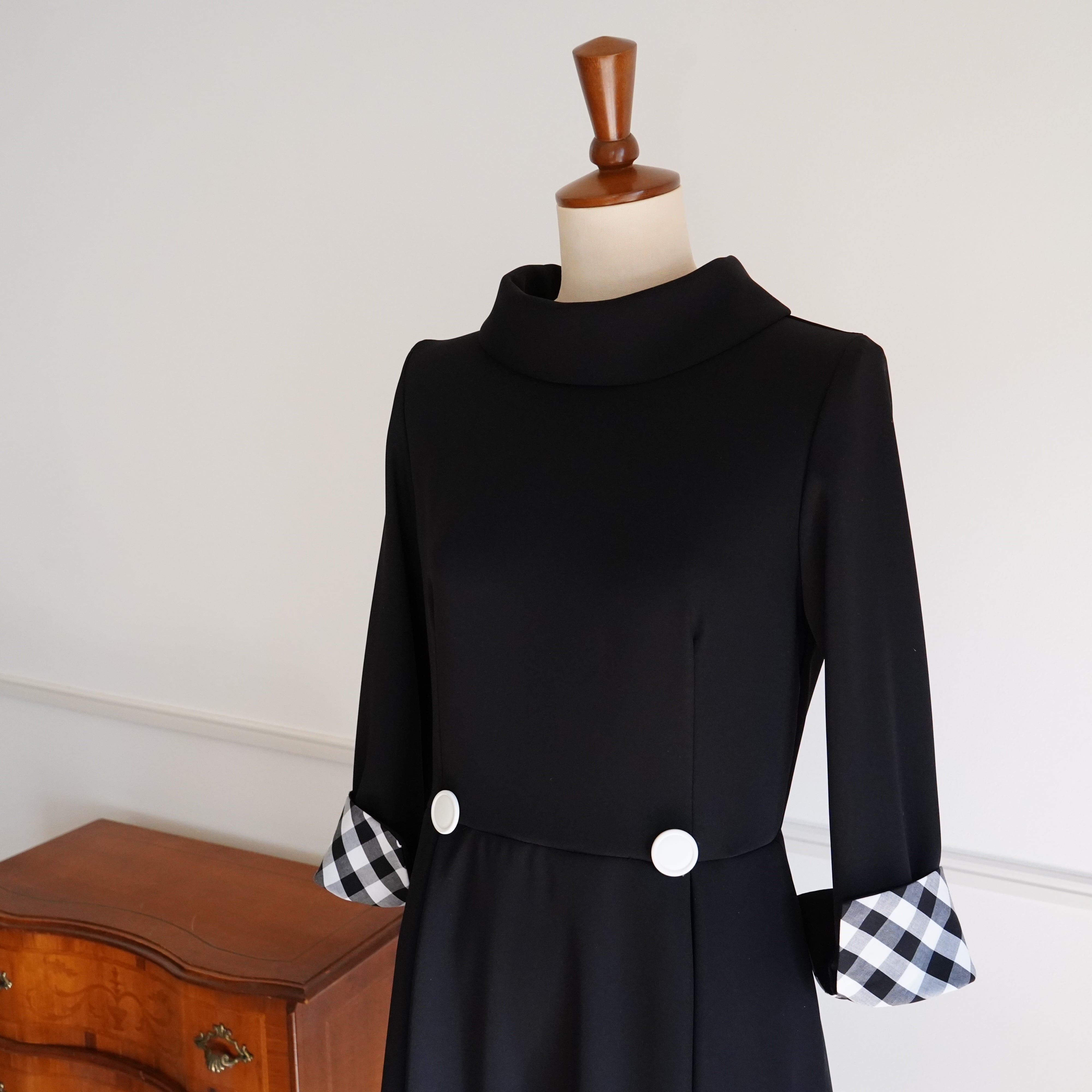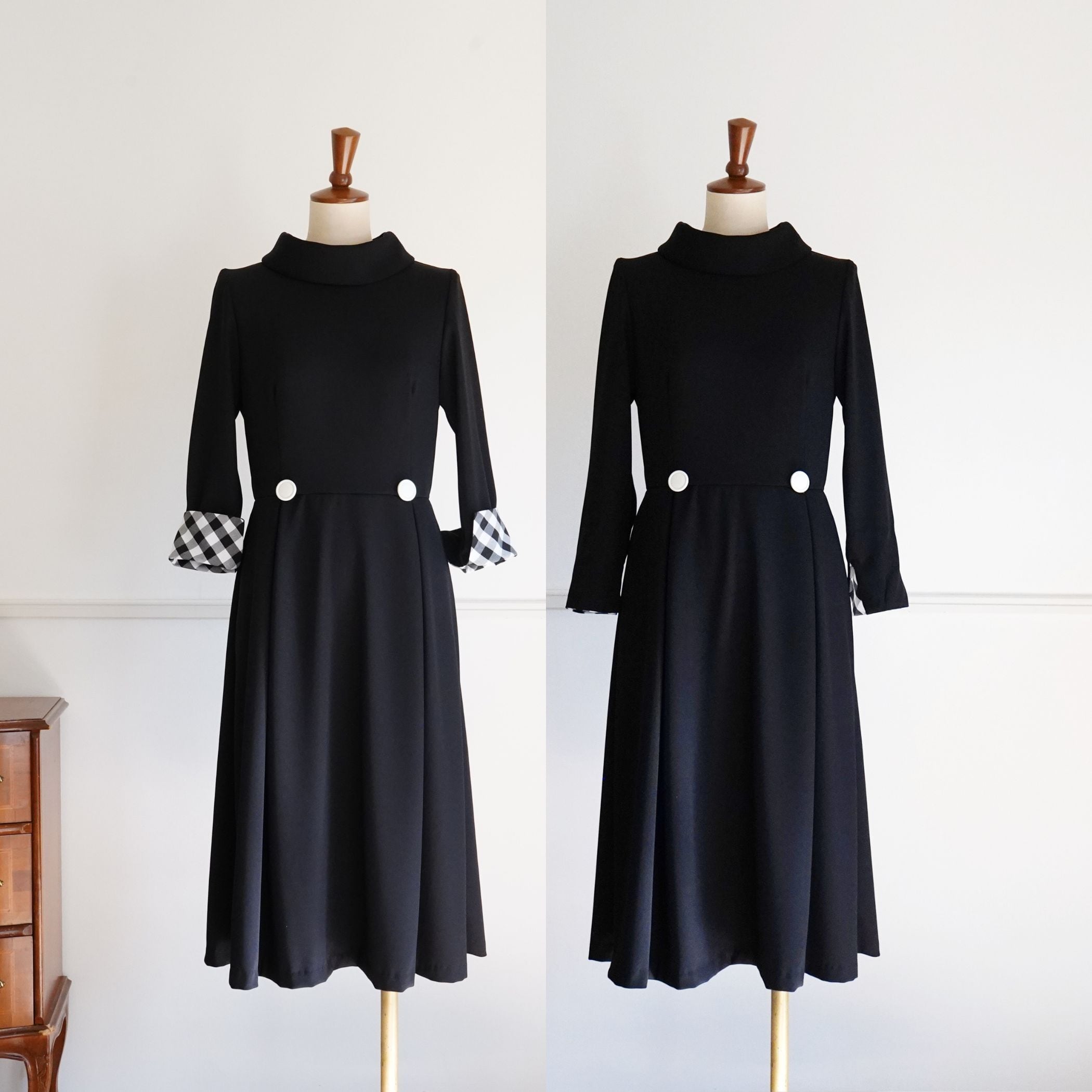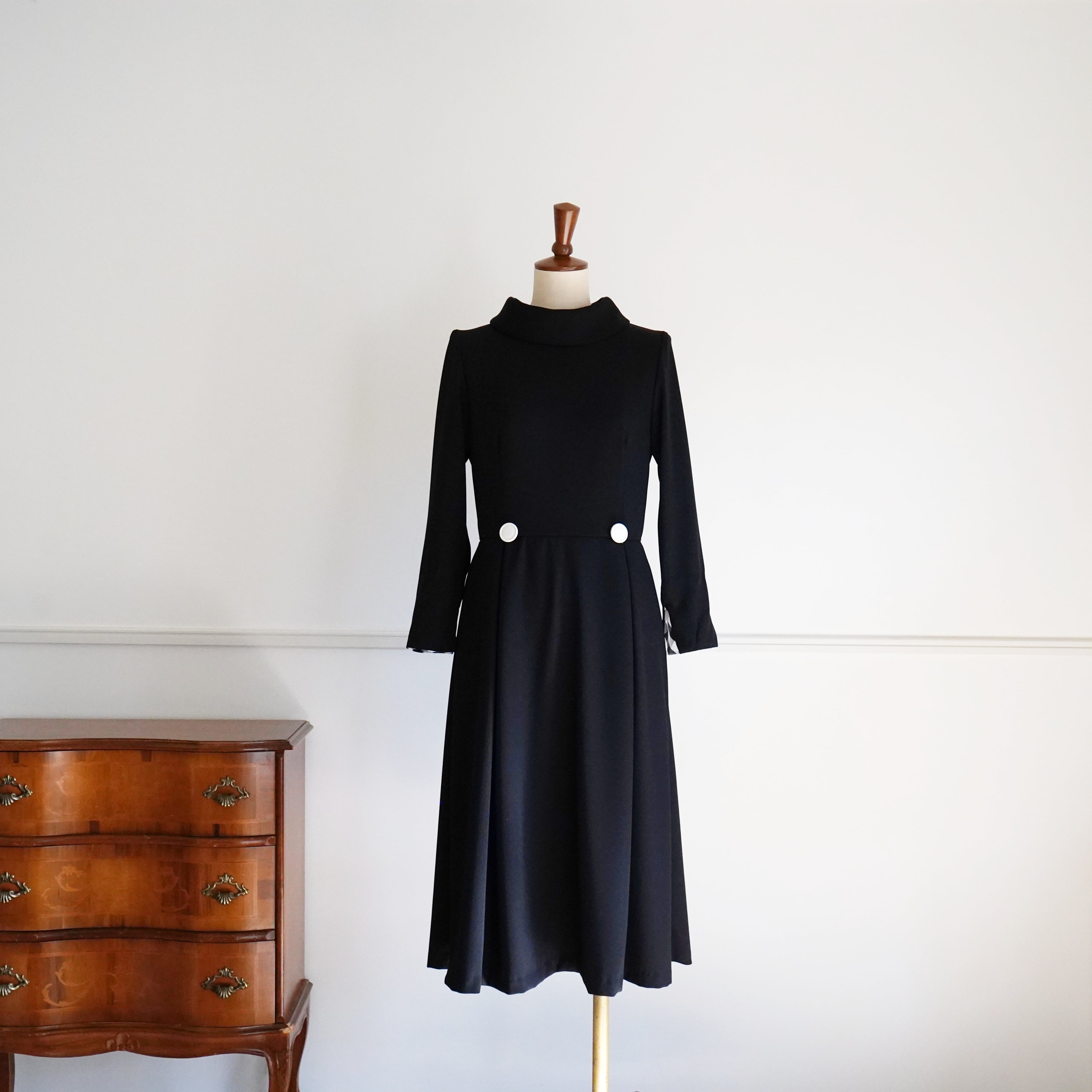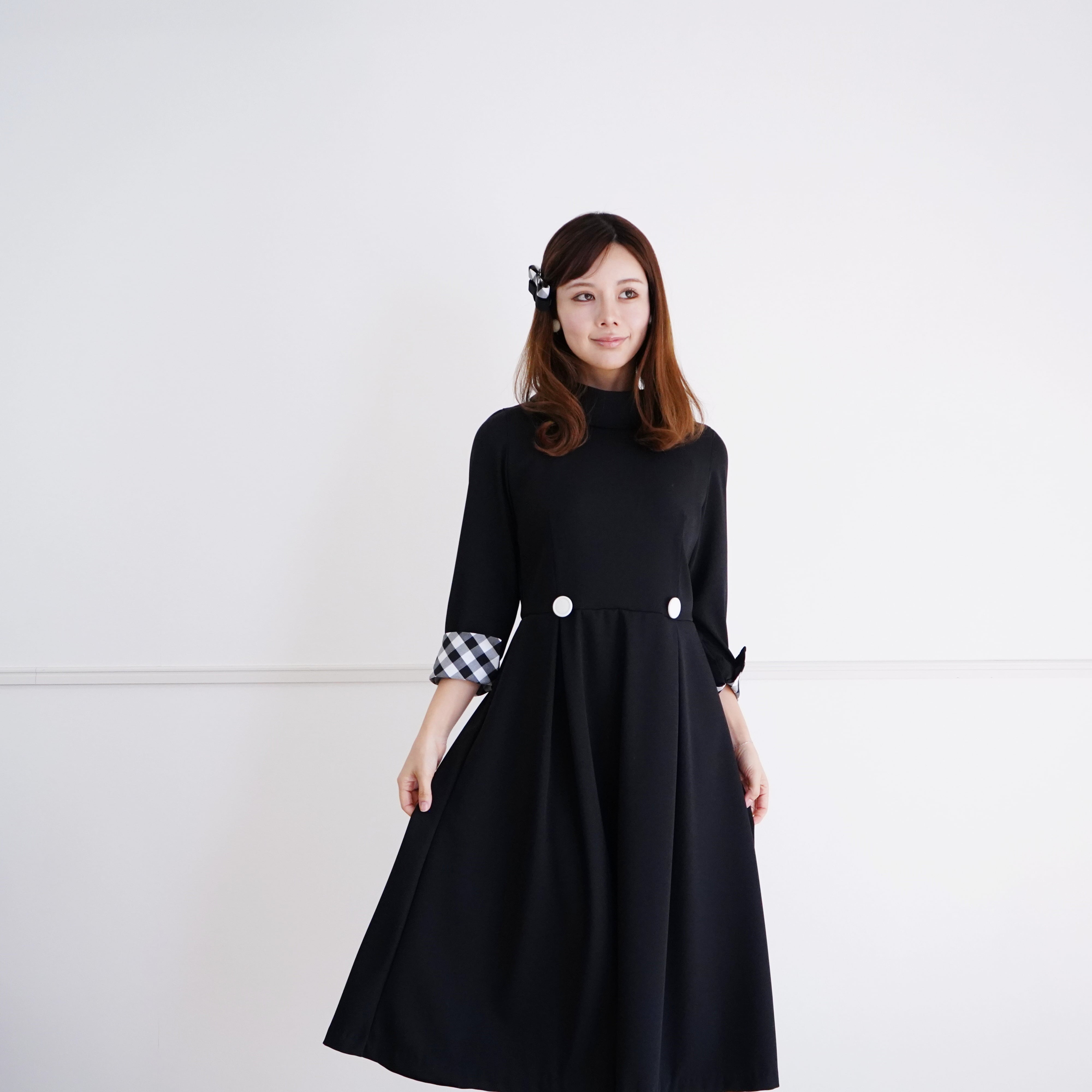 【オーダーは2/1まで】Roll Collar Dress ロールカラーワンピース(ブラック)36, 38