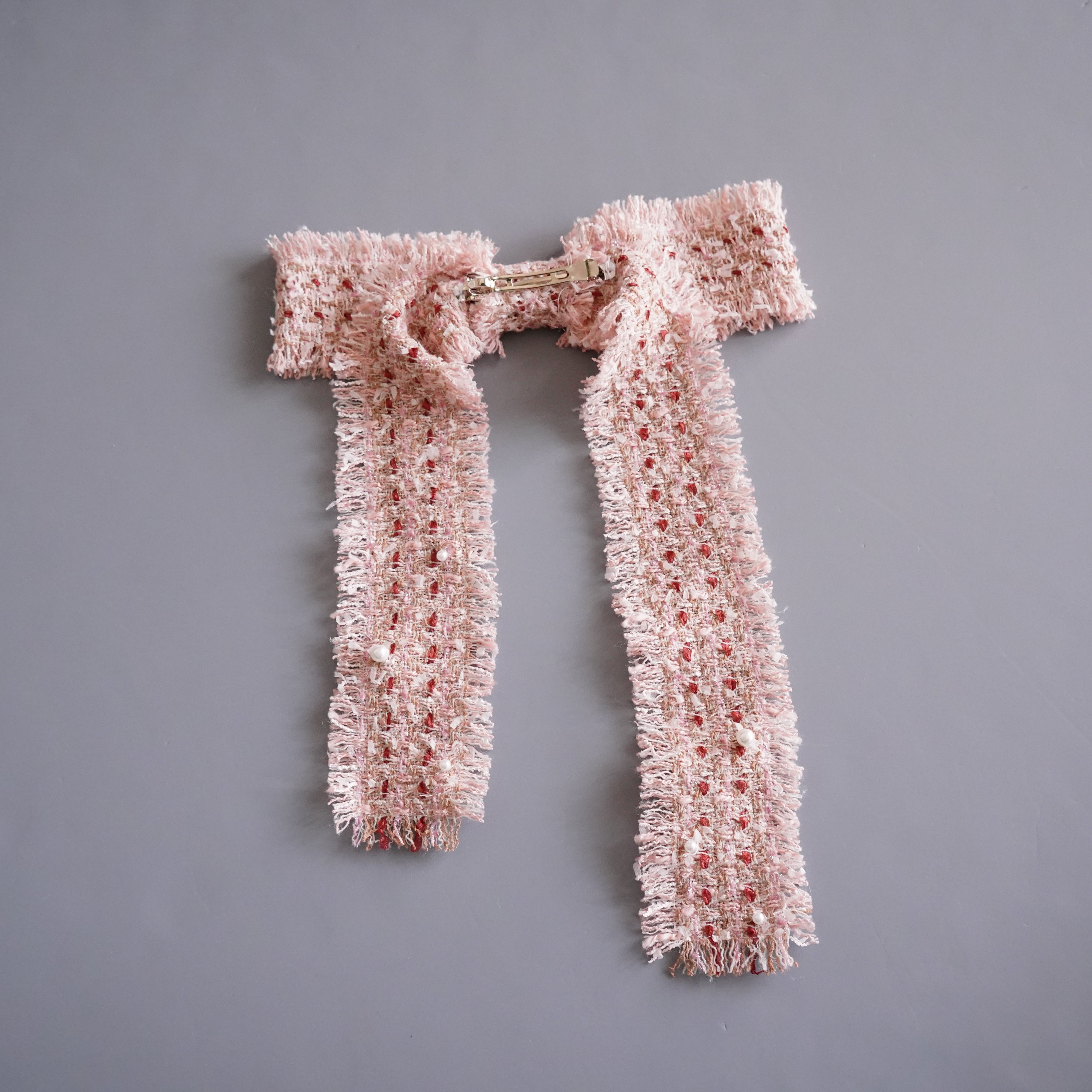 Tweed Fringe Bow Barrette ツイードフリンジリボンバレッタ