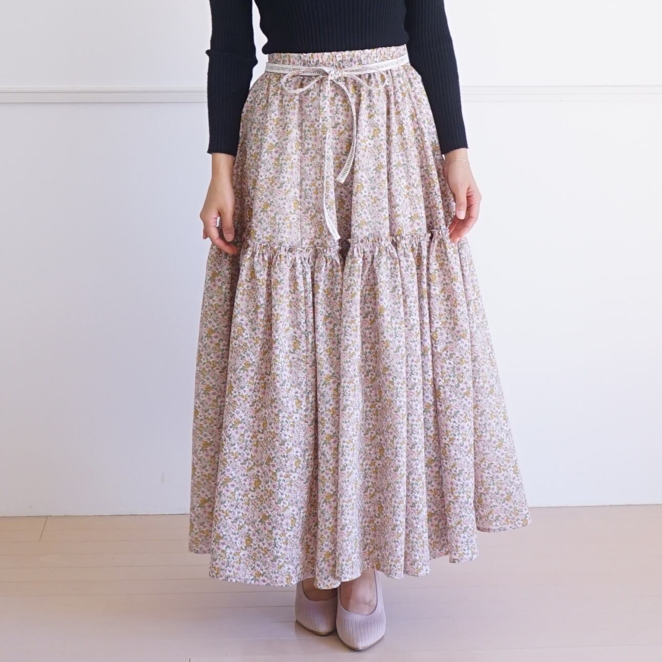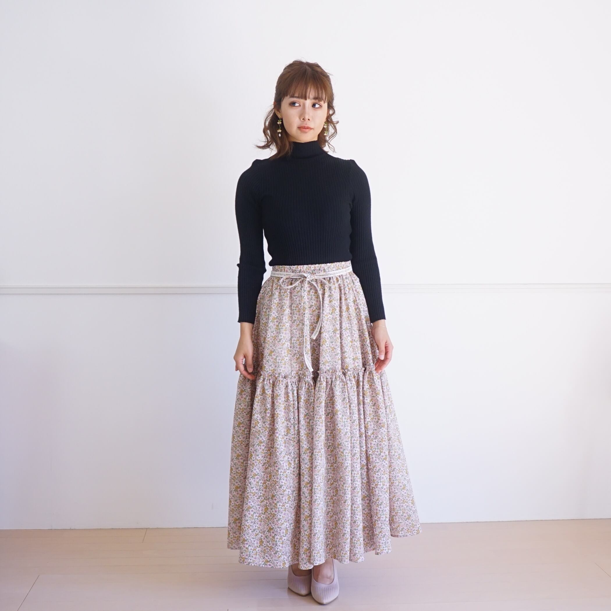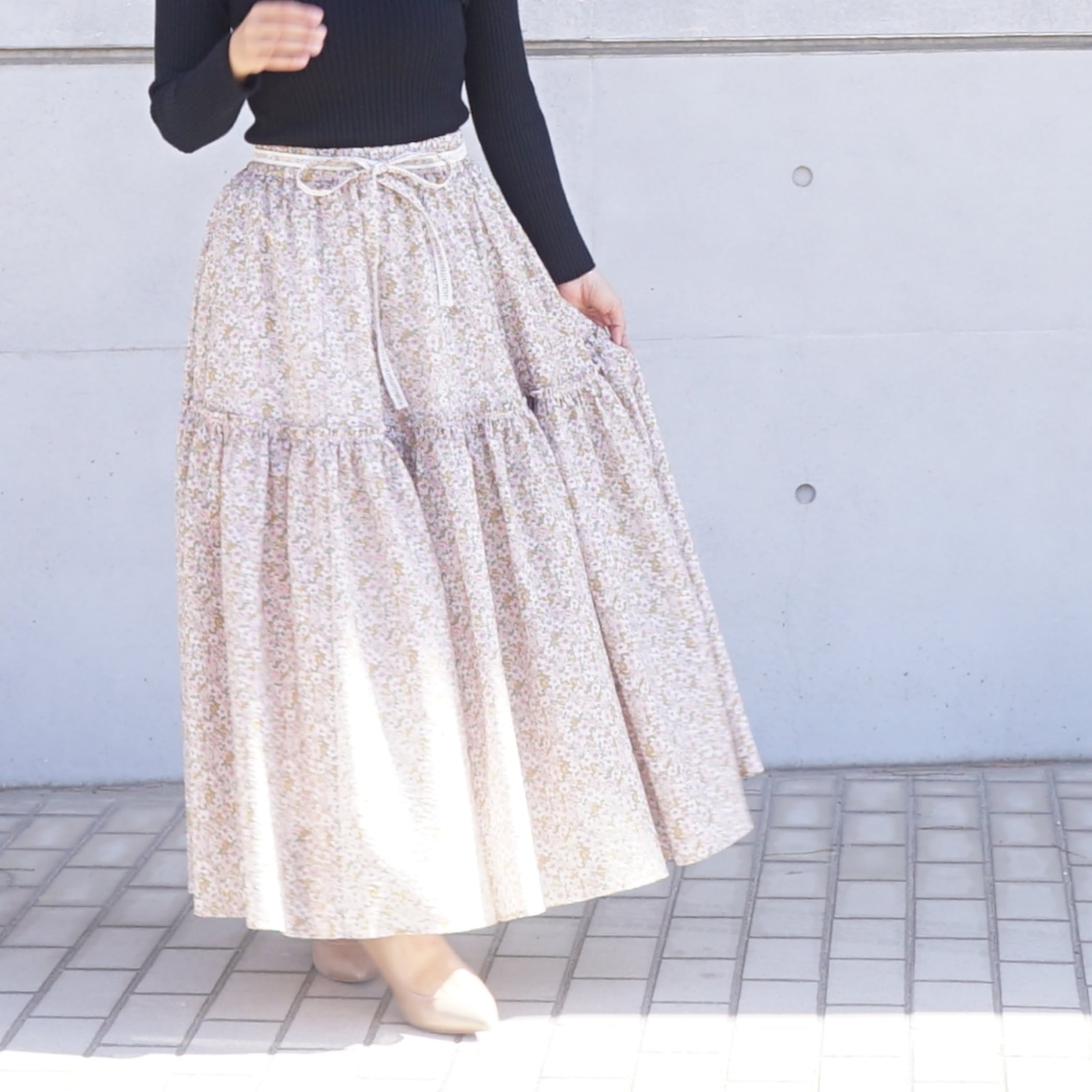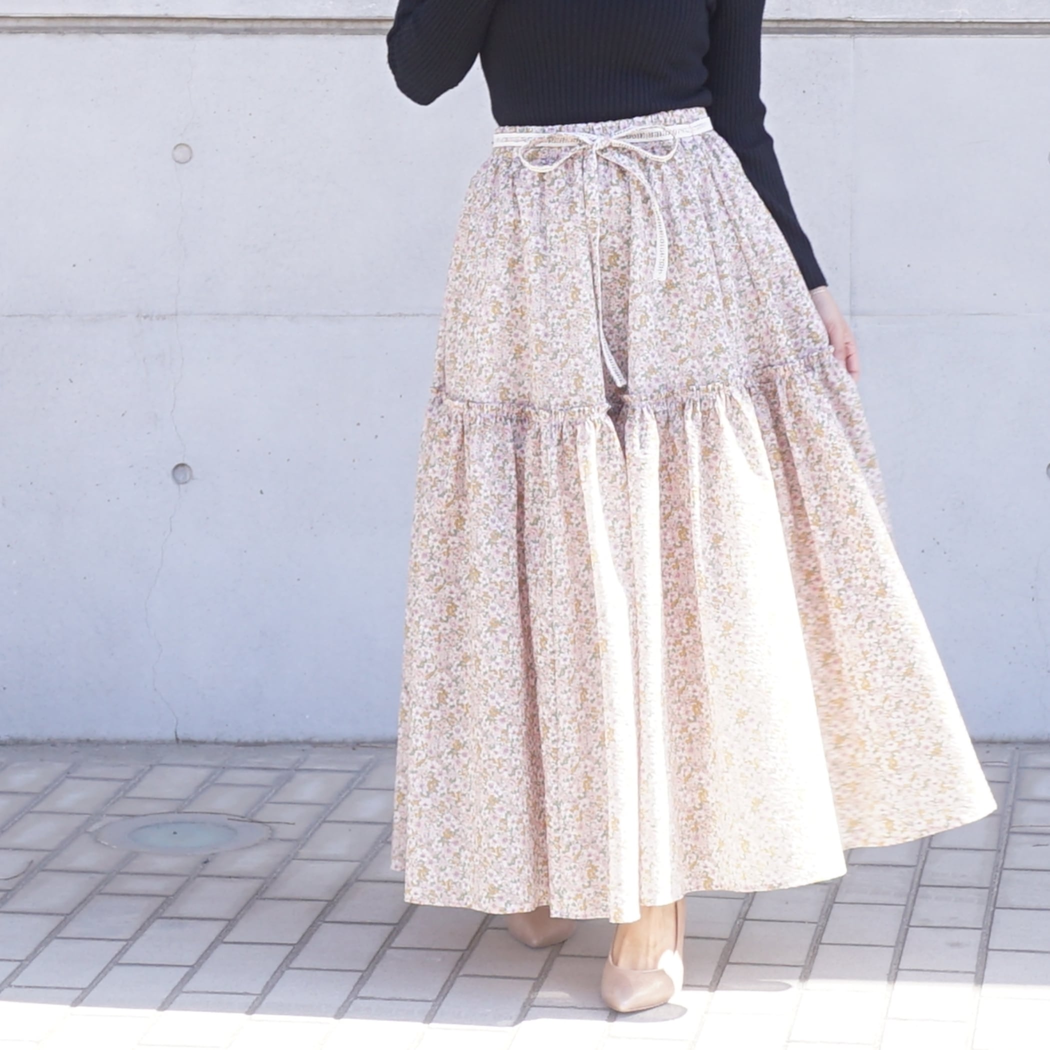 桜の花のように軽くてふわふわとしたボリュームのロングスカート。