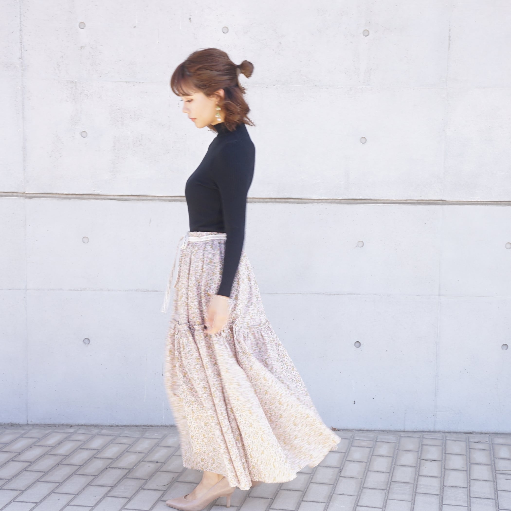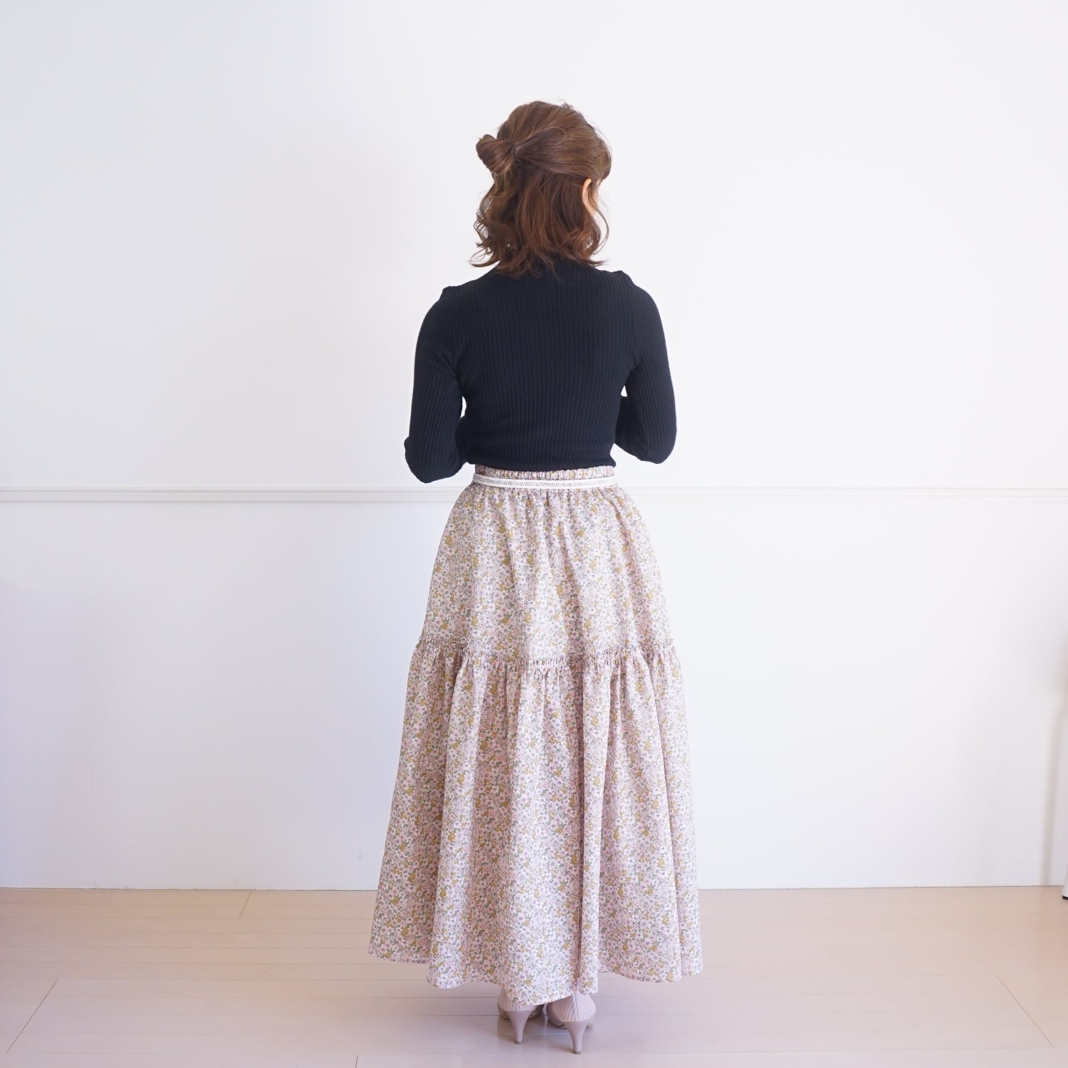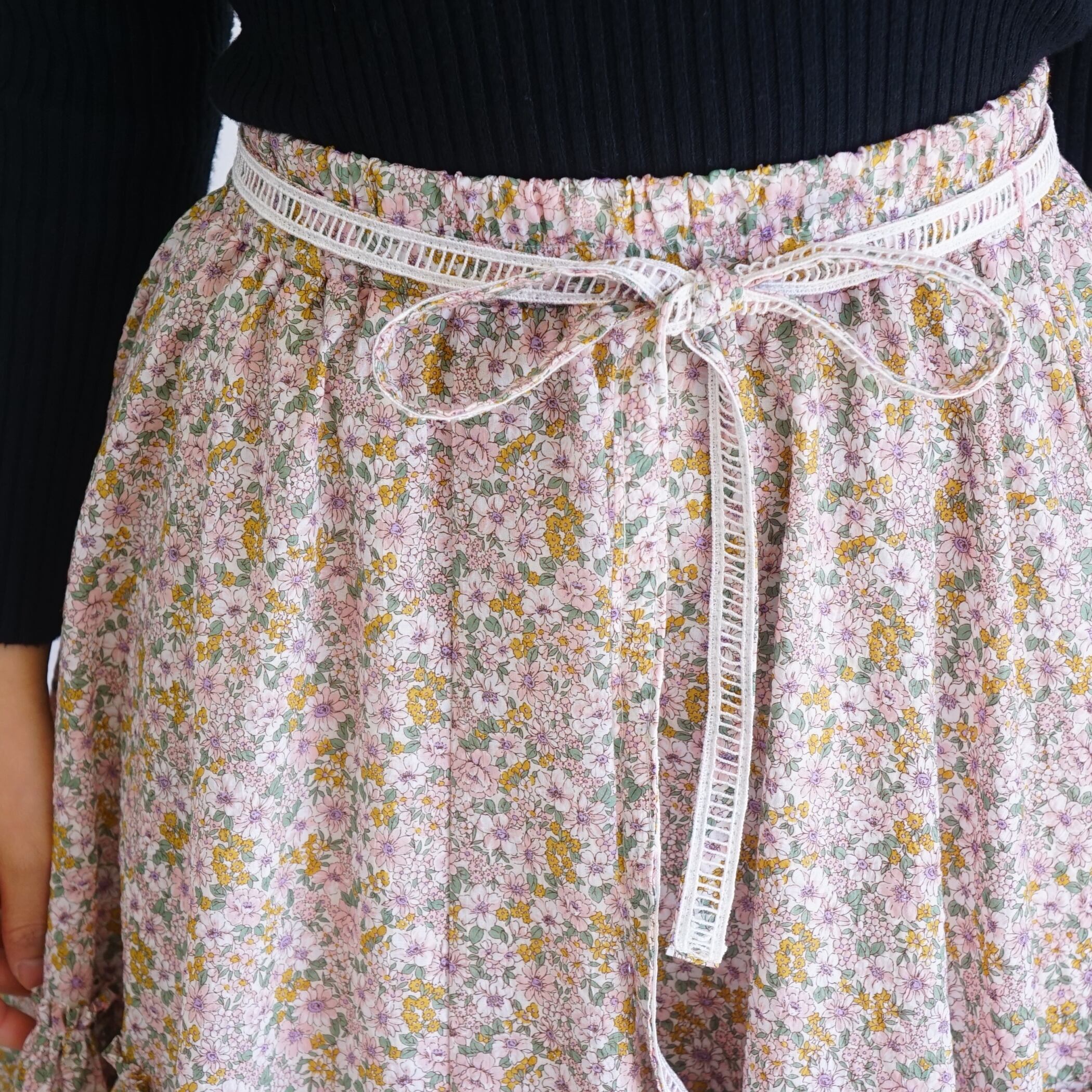 桜の花のように軽くてふわふわとしたボリュームのロングスカート。