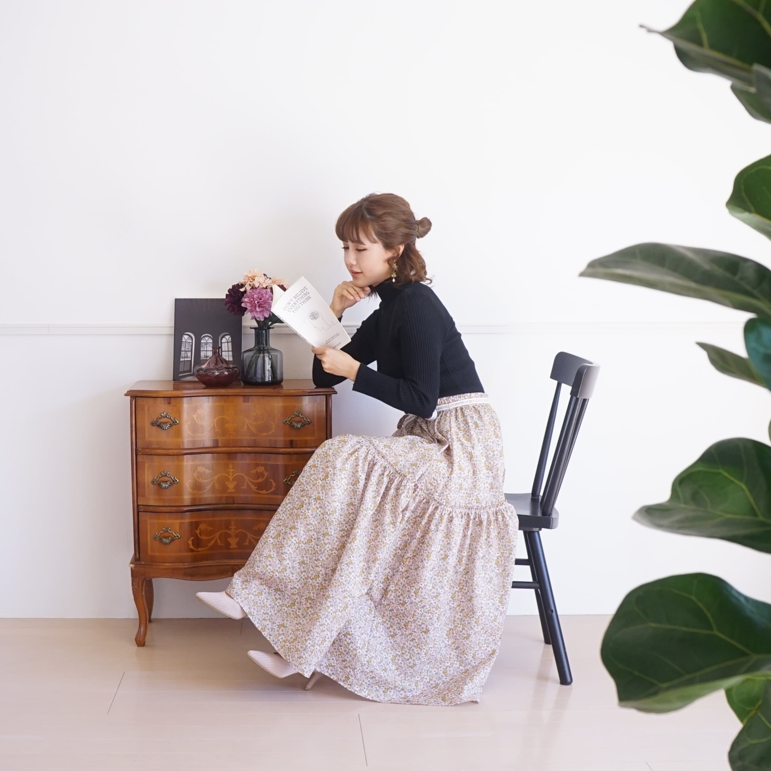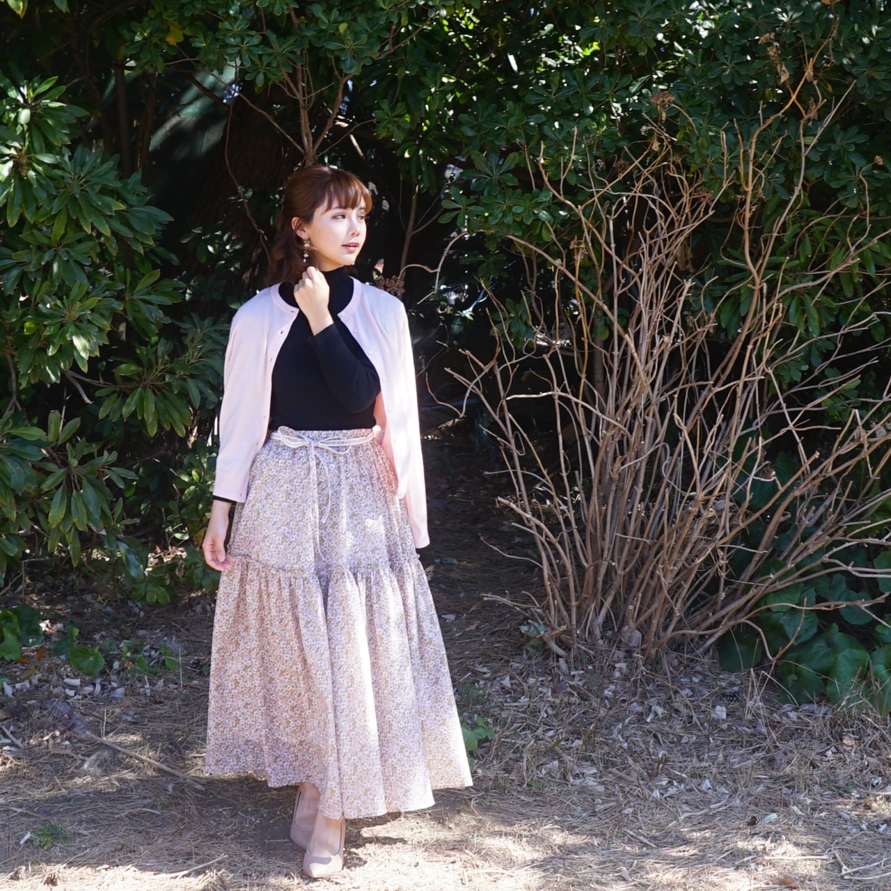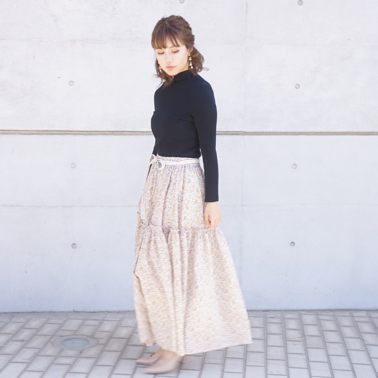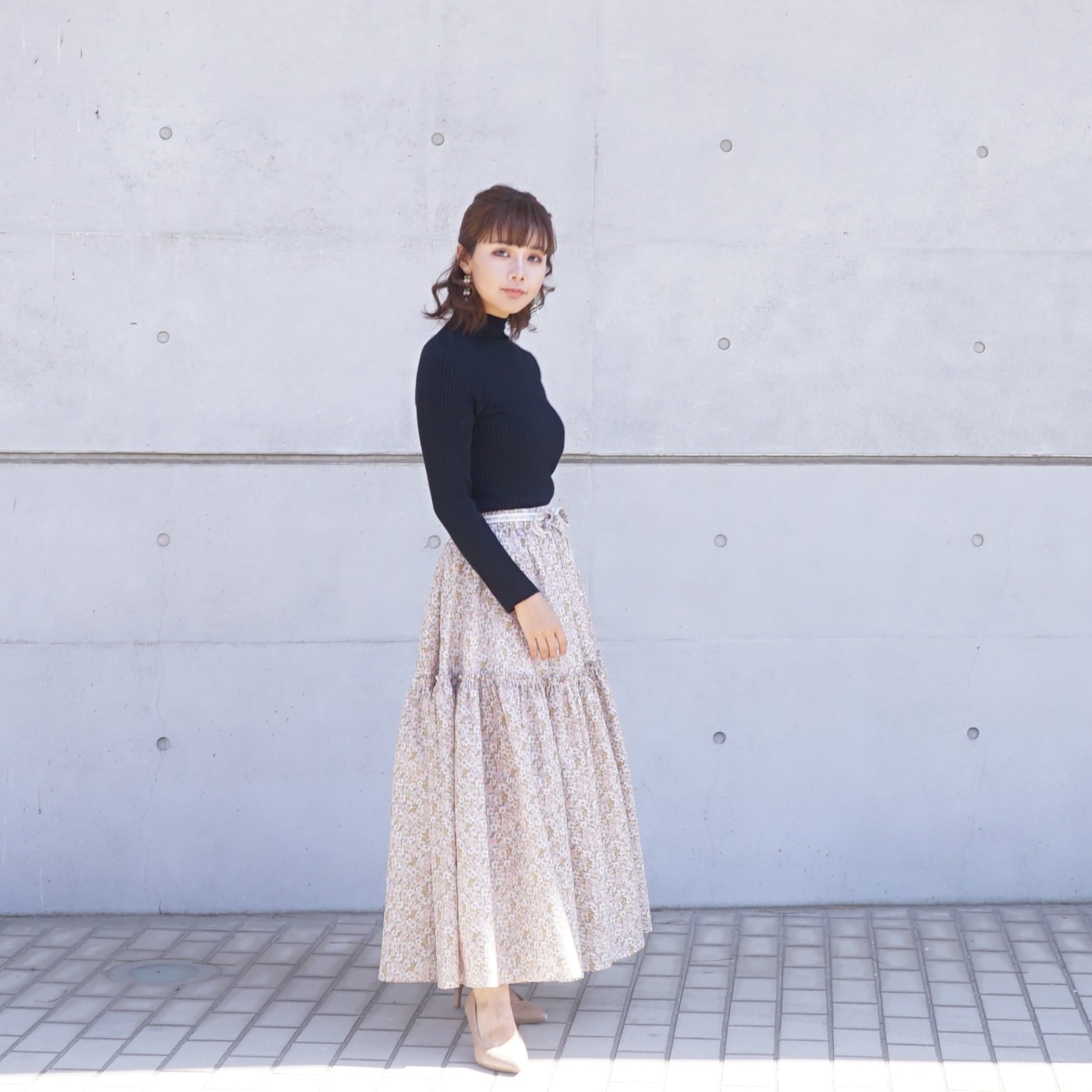 桜の花のように軽くてふわふわとしたボリュームのロングスカート。
