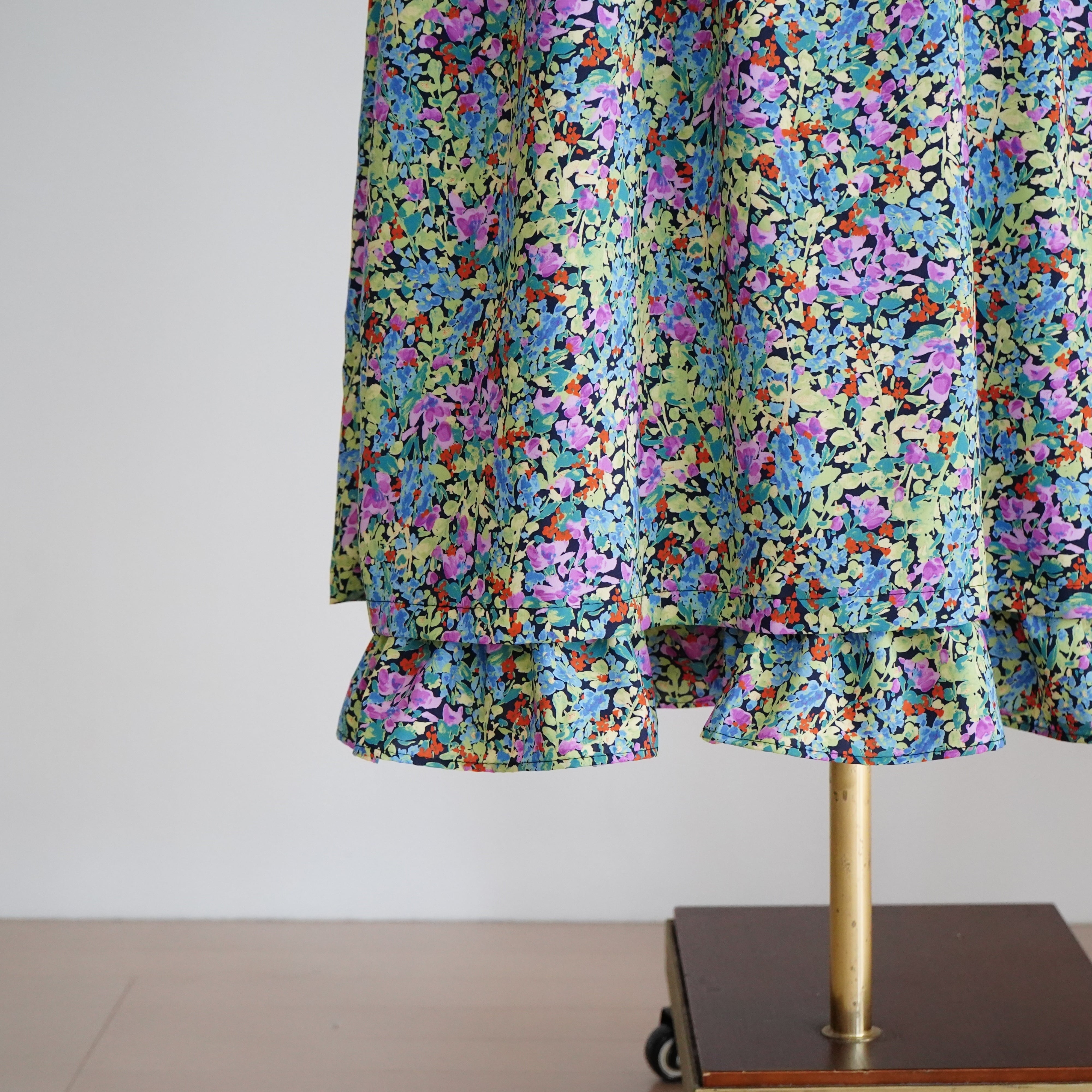 裾はギャザースカートが下から覗くようなレイヤードデザインになっています。