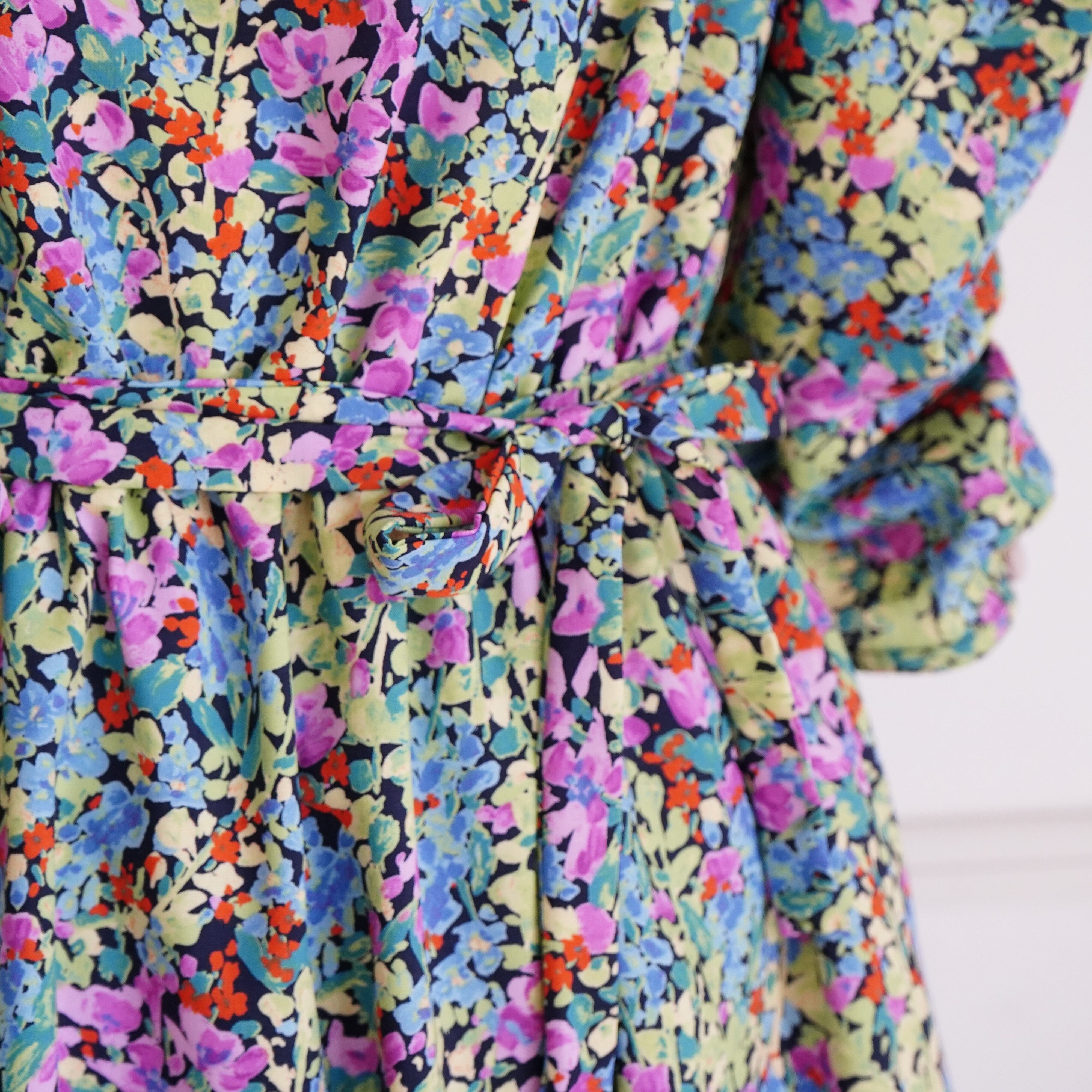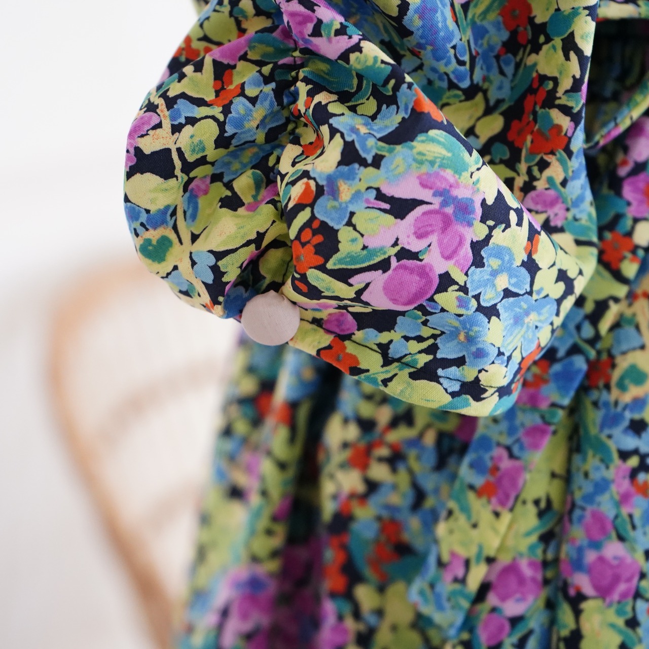春を感じさせる、明るい色使いの花柄で、
