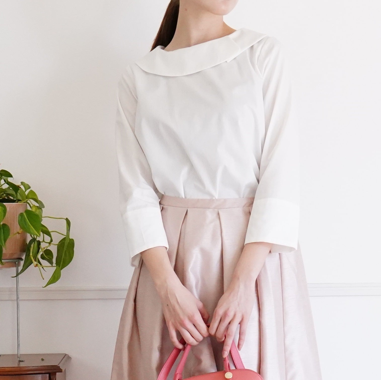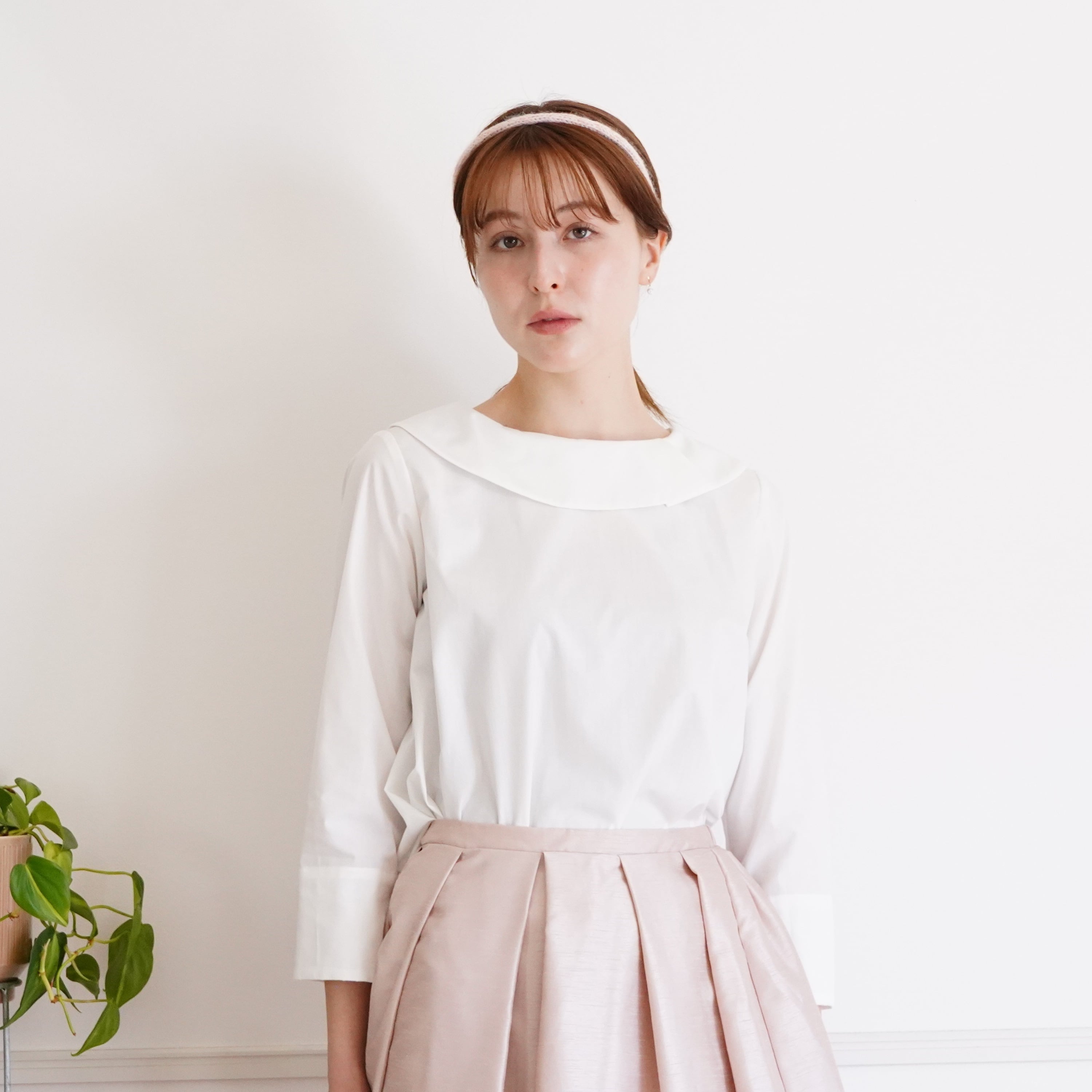 Roll and petal collar Blouse (off white)
