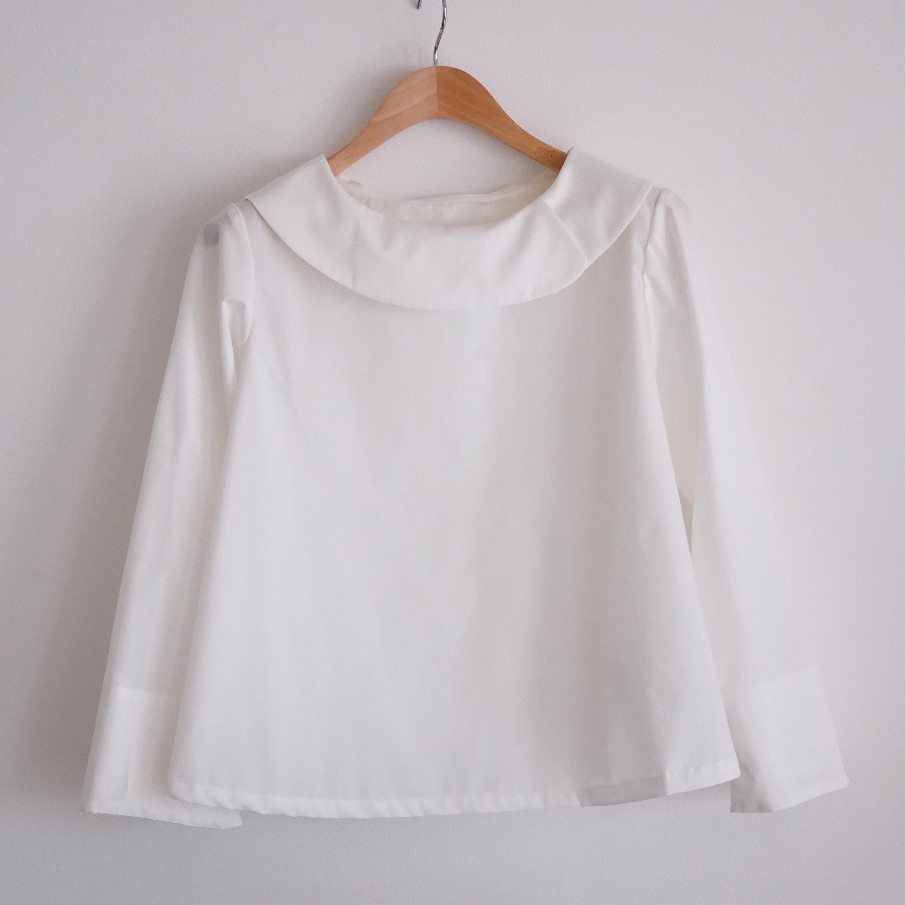 ロールカラーと花びらのような襟のブラウスです。