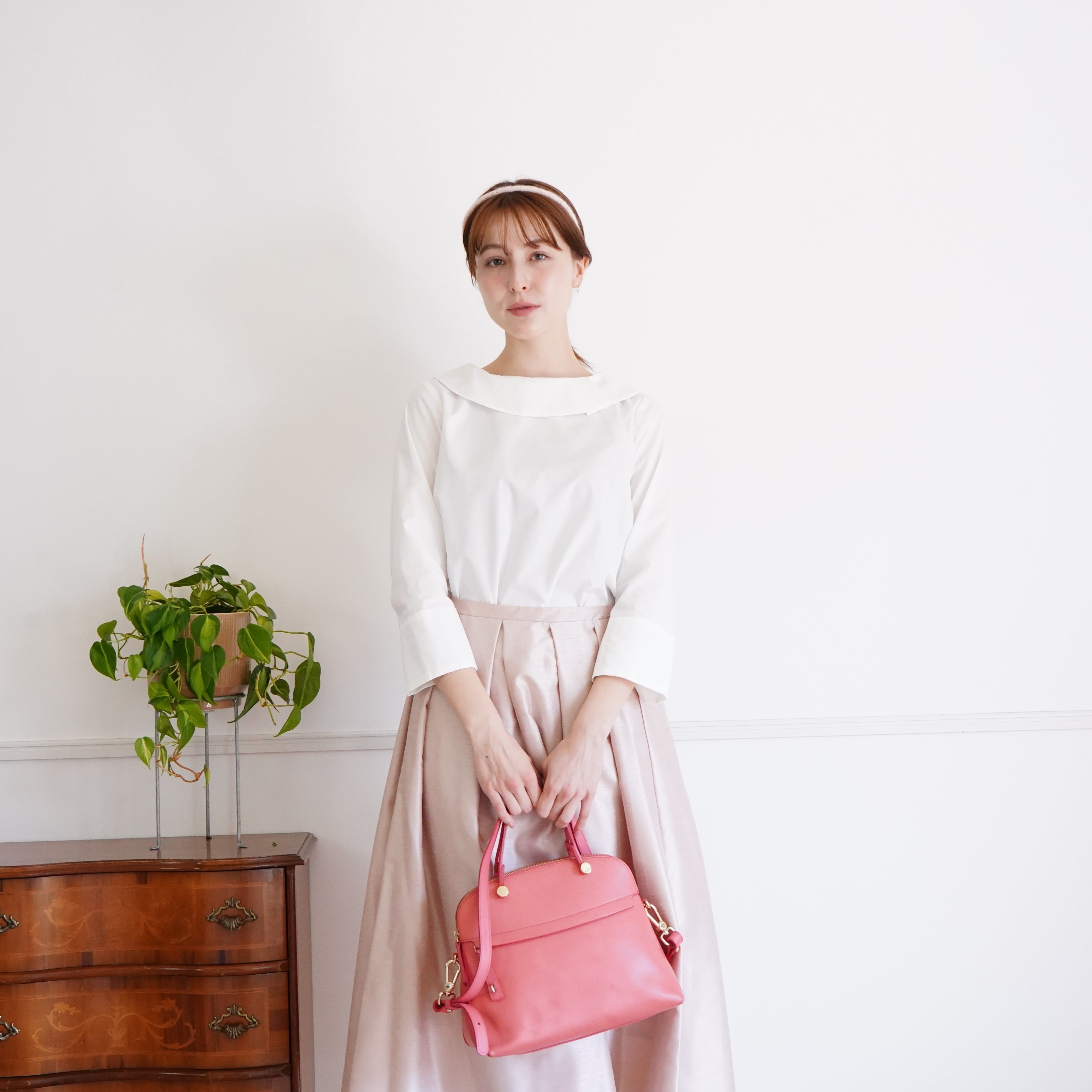 【セットアップ可】Roll and petal collar Blouse ロールペタルカラーブラウス(オフホワイト)38