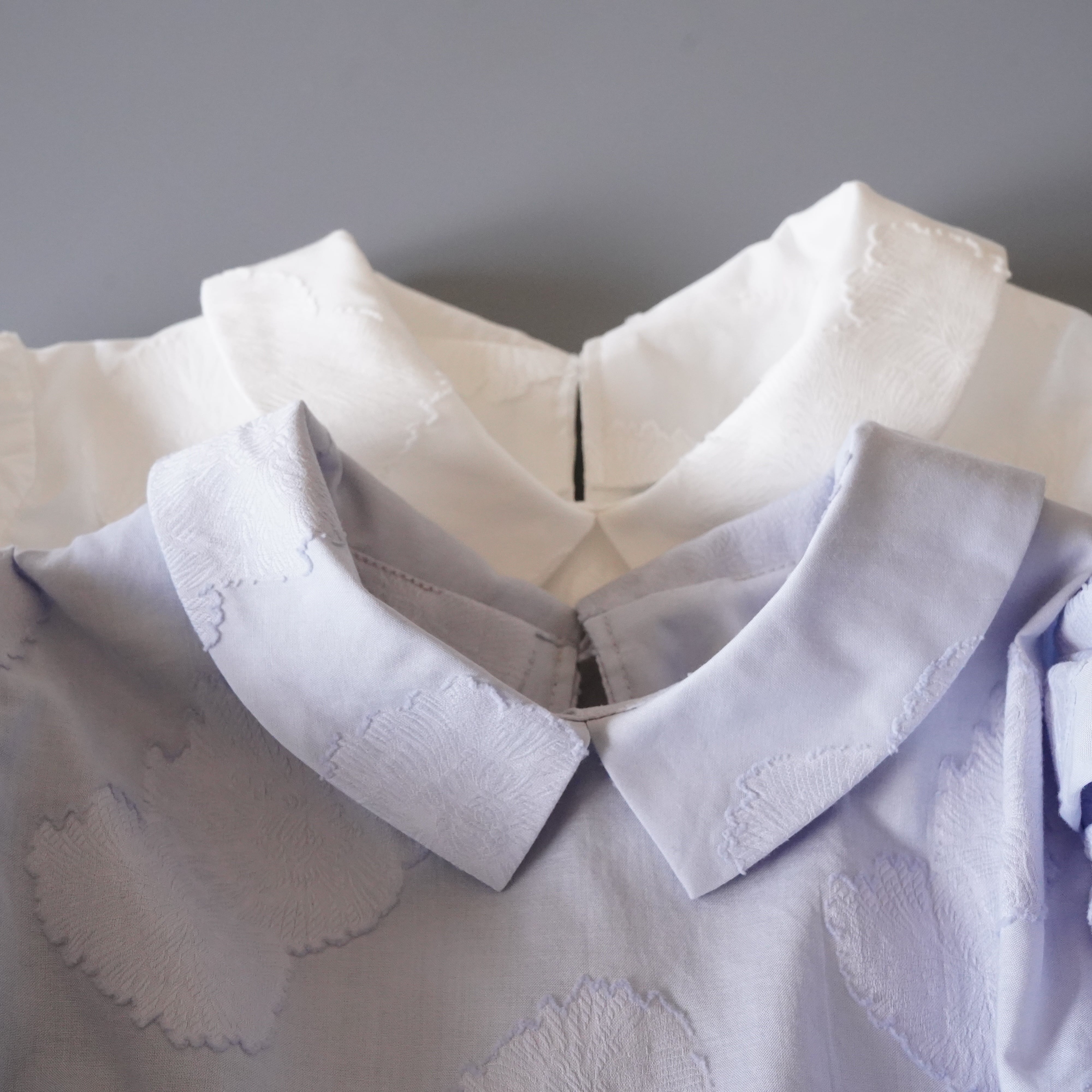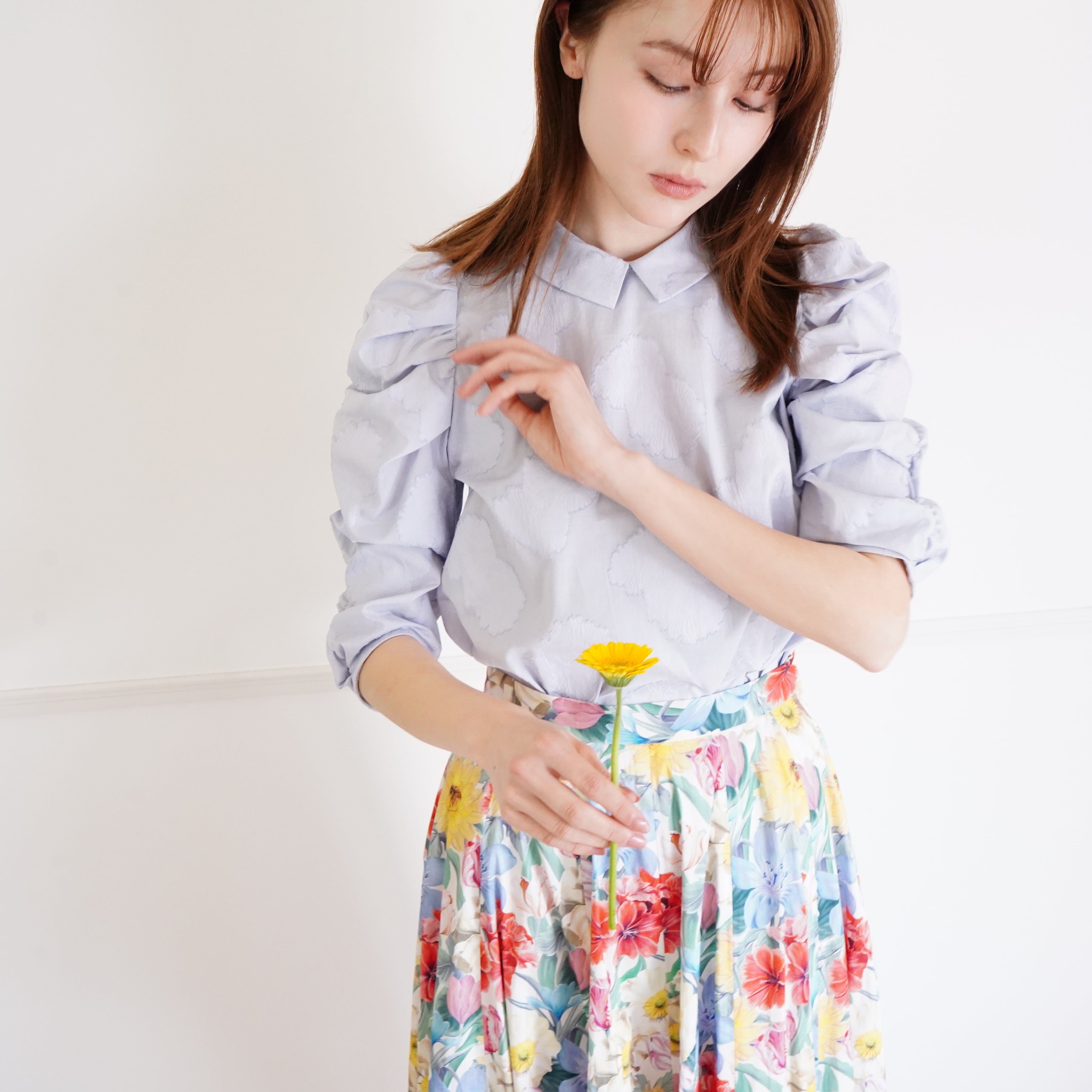 Cut jacquard gathered sleeve blouse カットジャカード襟付きくしゅくしゅ袖ブラウス(オフホワイト)38