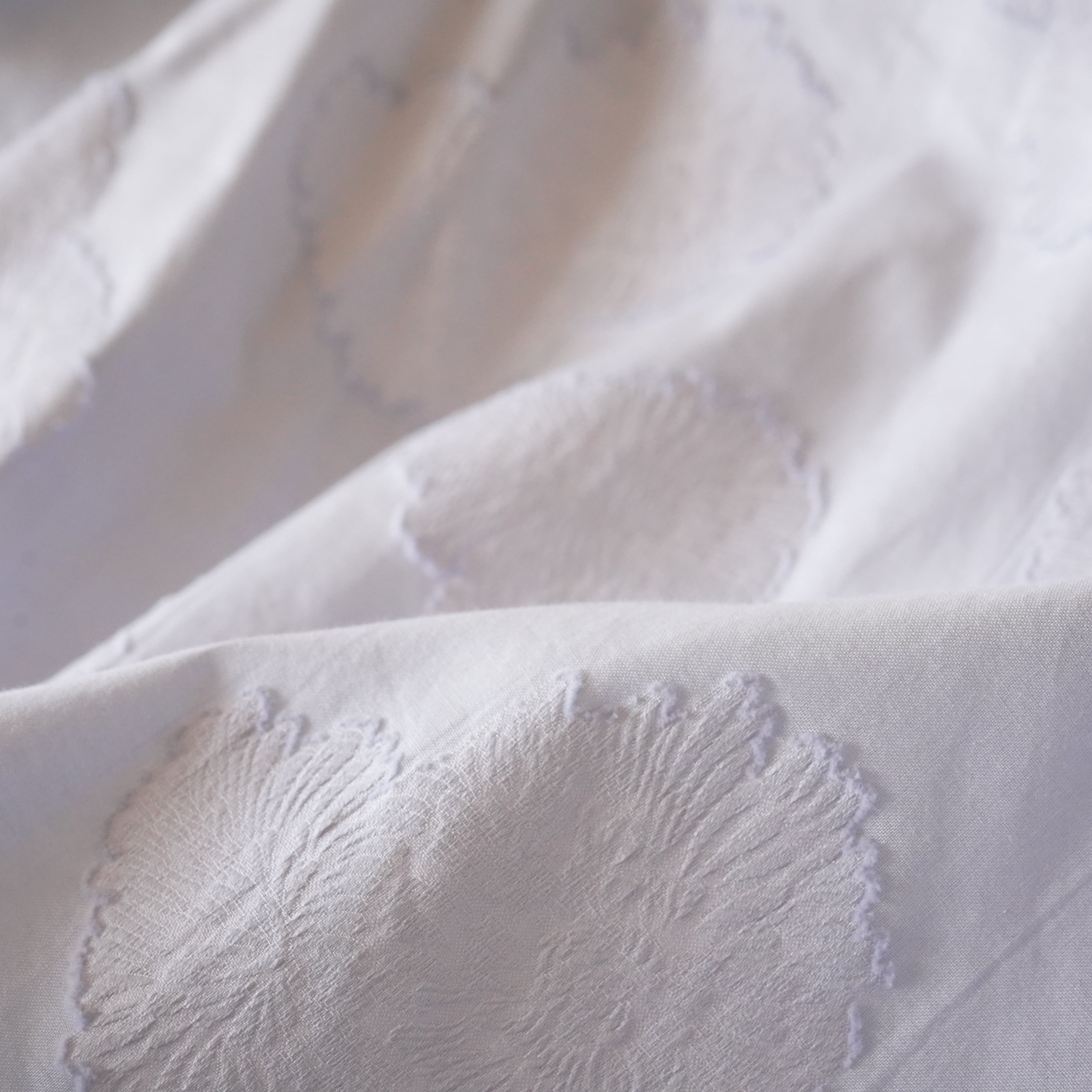 カットジャカードとは、織り方の違いで柄を表現し、糸をカットすることで
