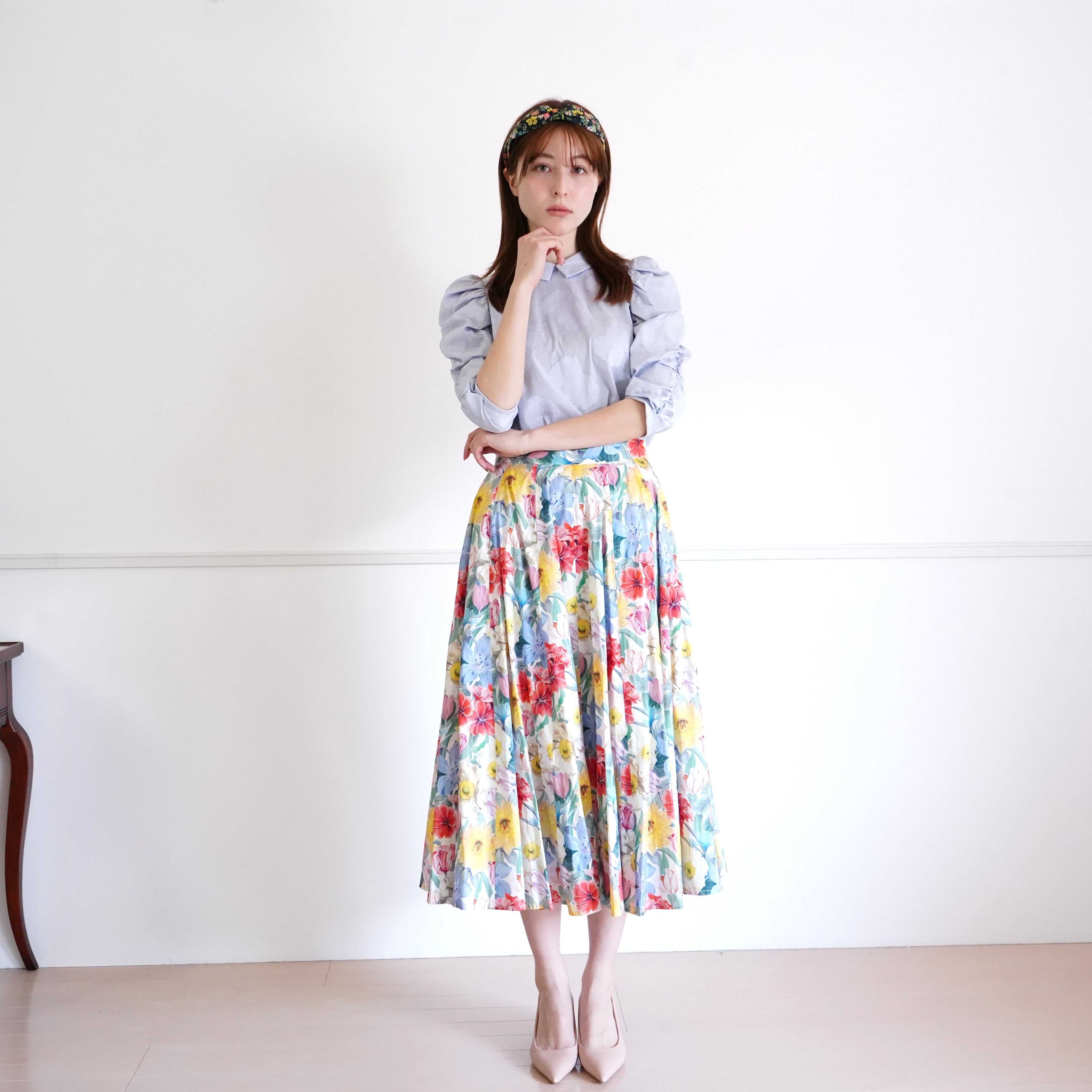 リバティ 花柄ボリュームスカート(オフホワイト系)38