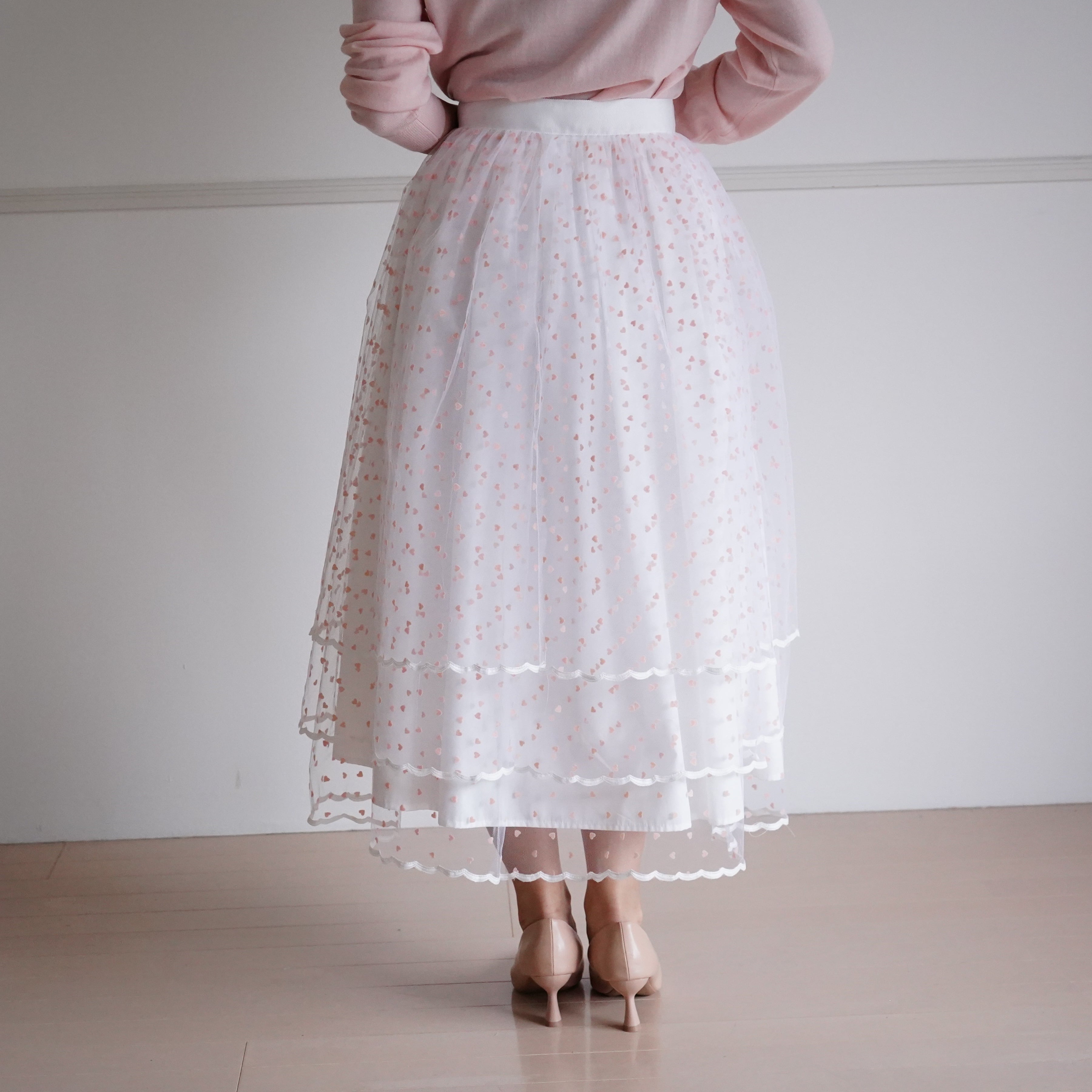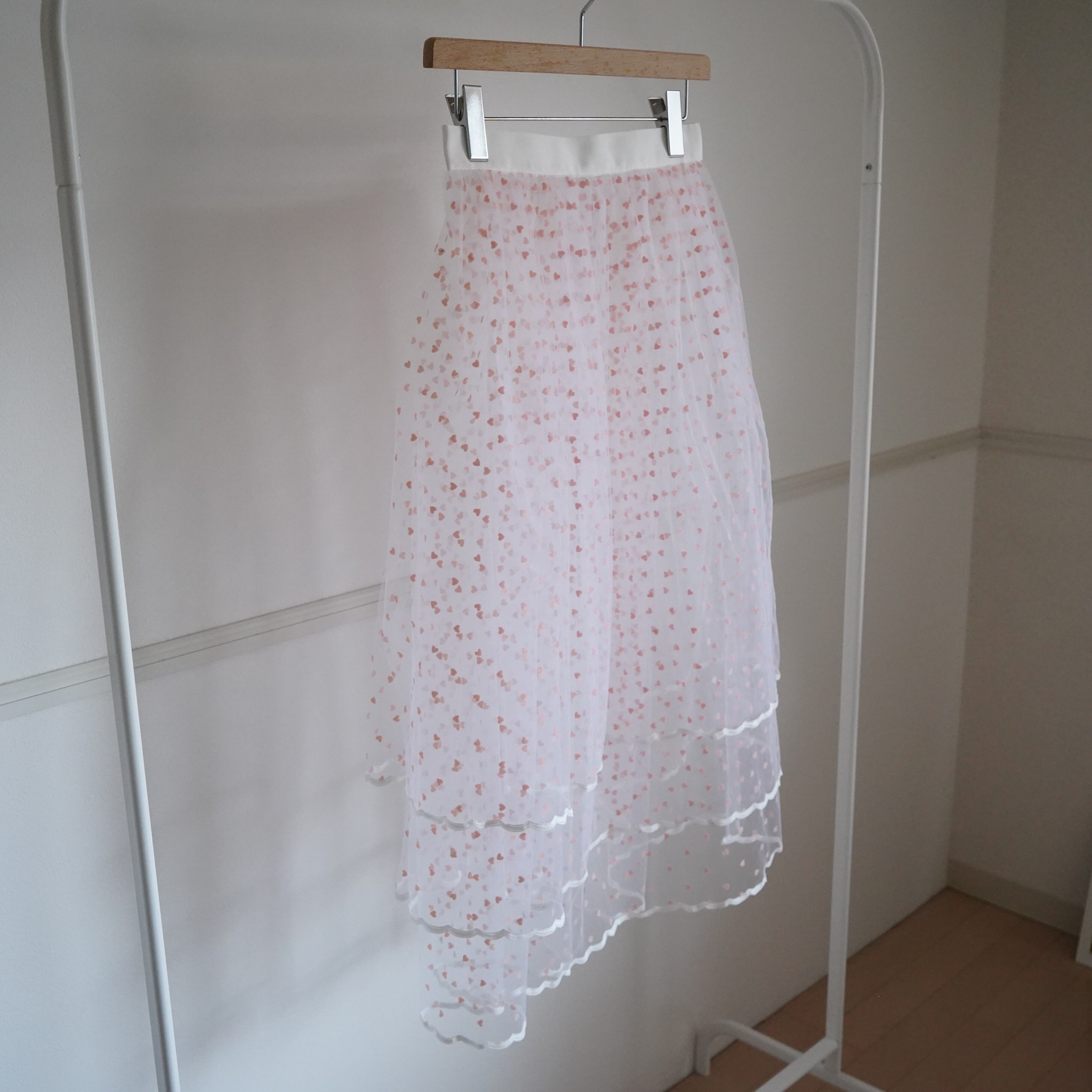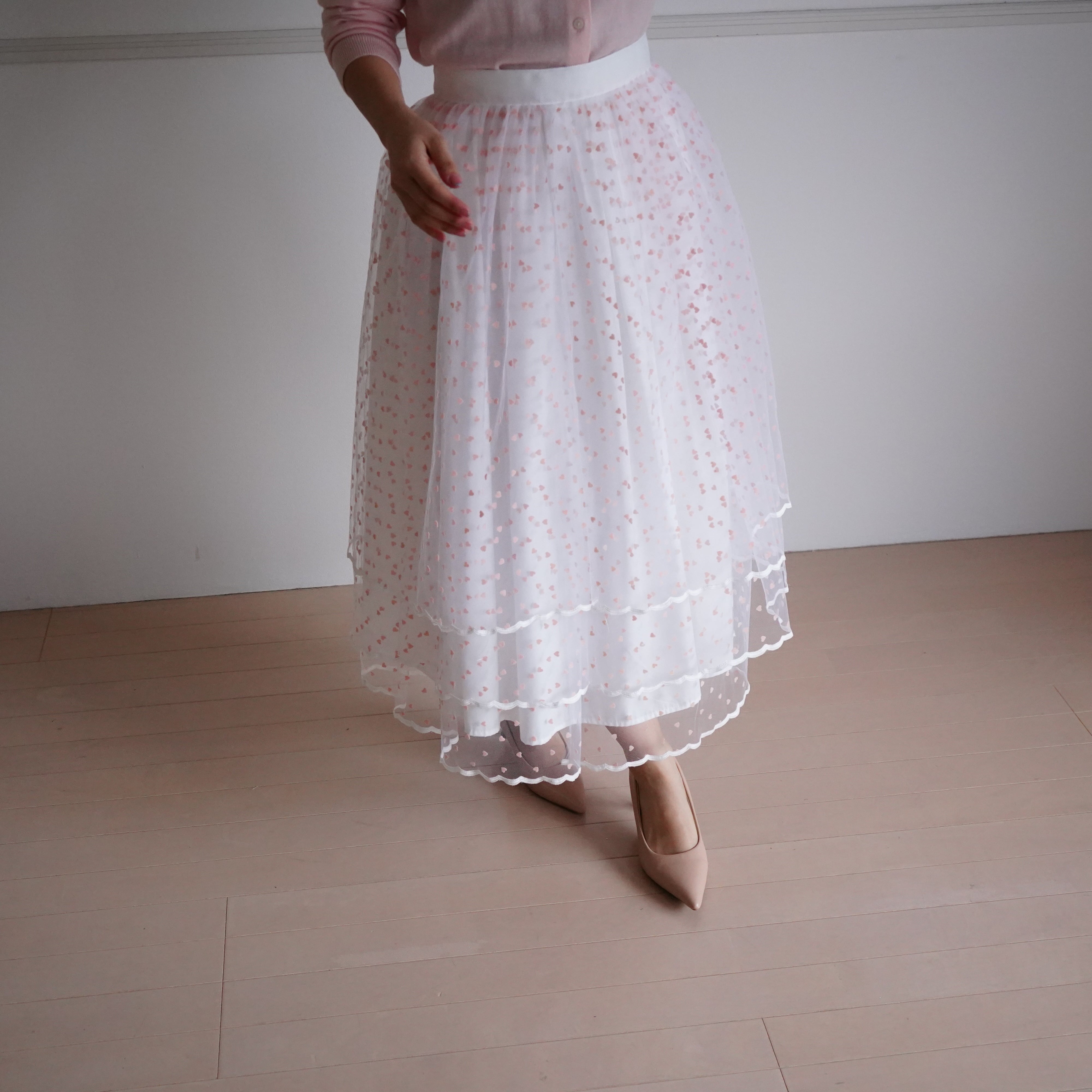 Heart Dot Tulle Over Skirt ハートドットチュールオーバースカート(オフホワイト)F