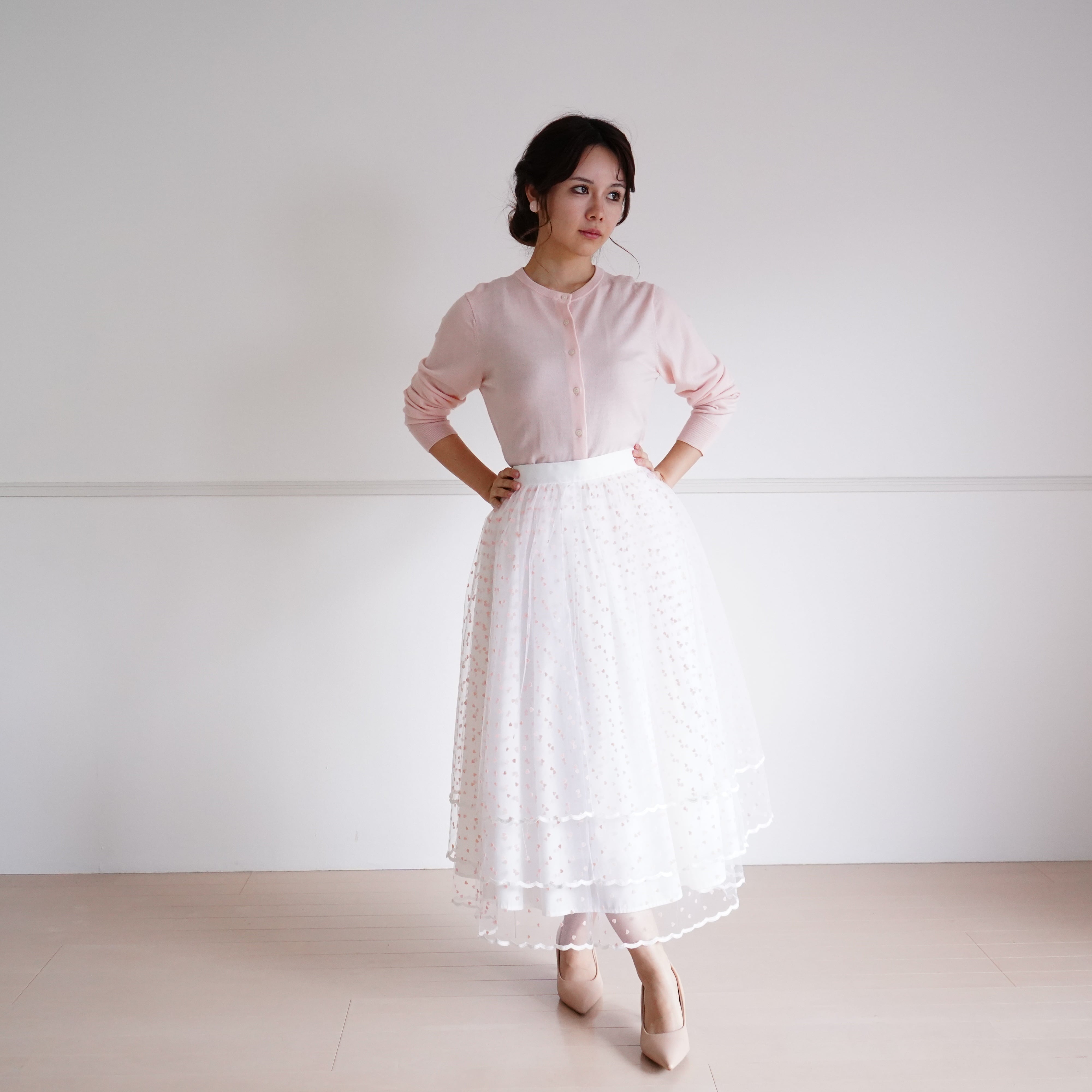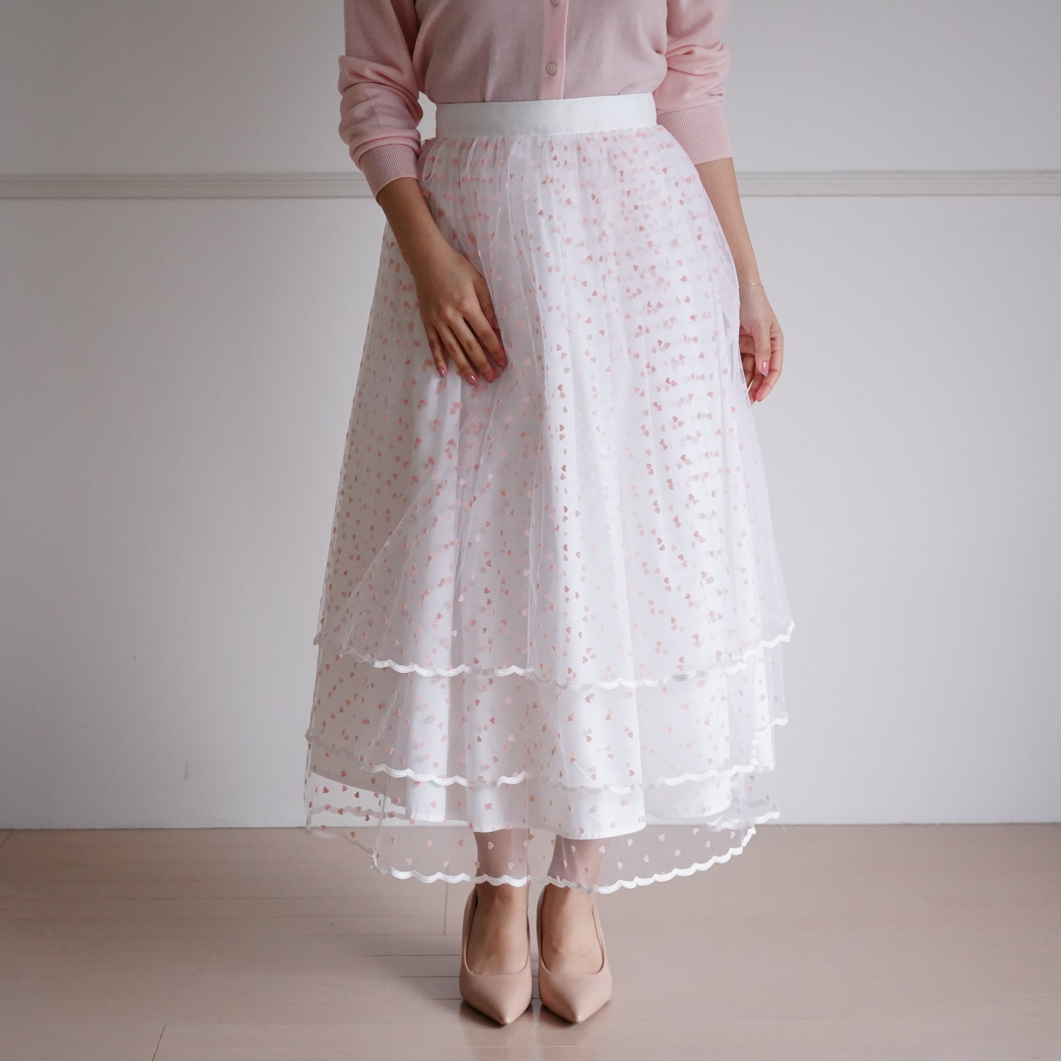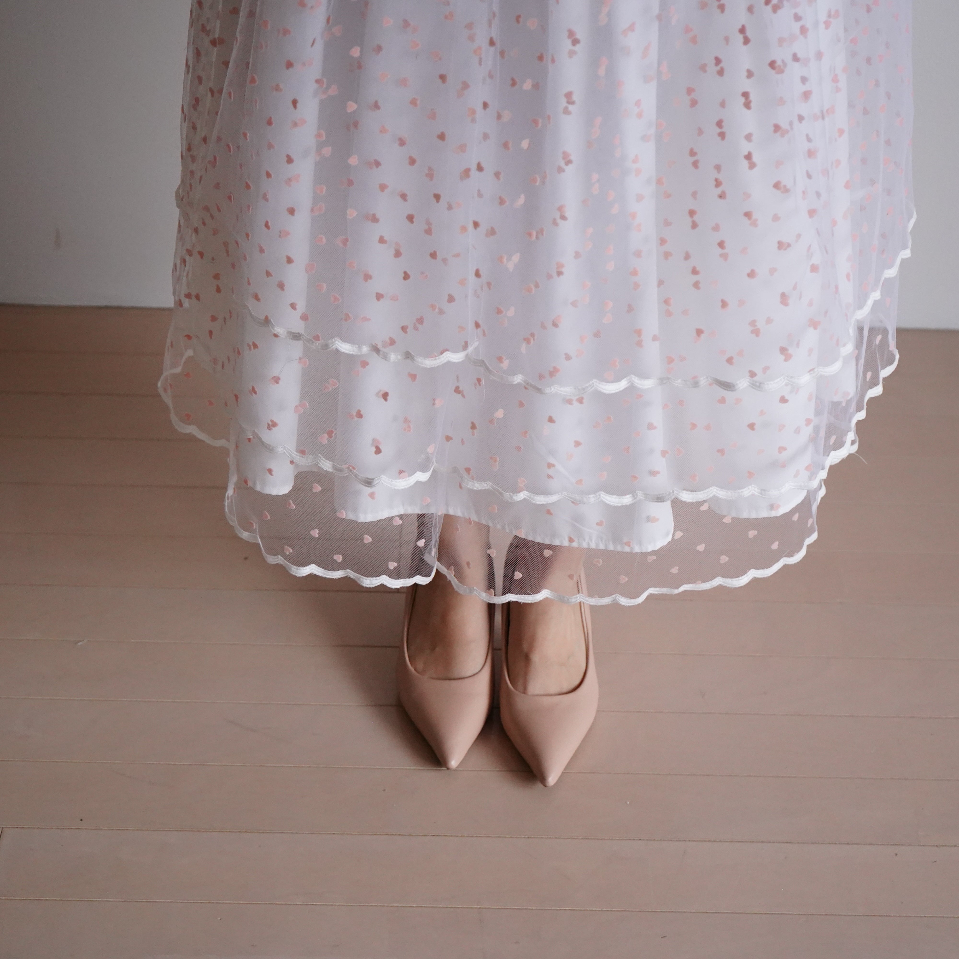 Heart Dot Tulle Over Skirt ハートドットチュールオーバースカート(オフホワイト)F