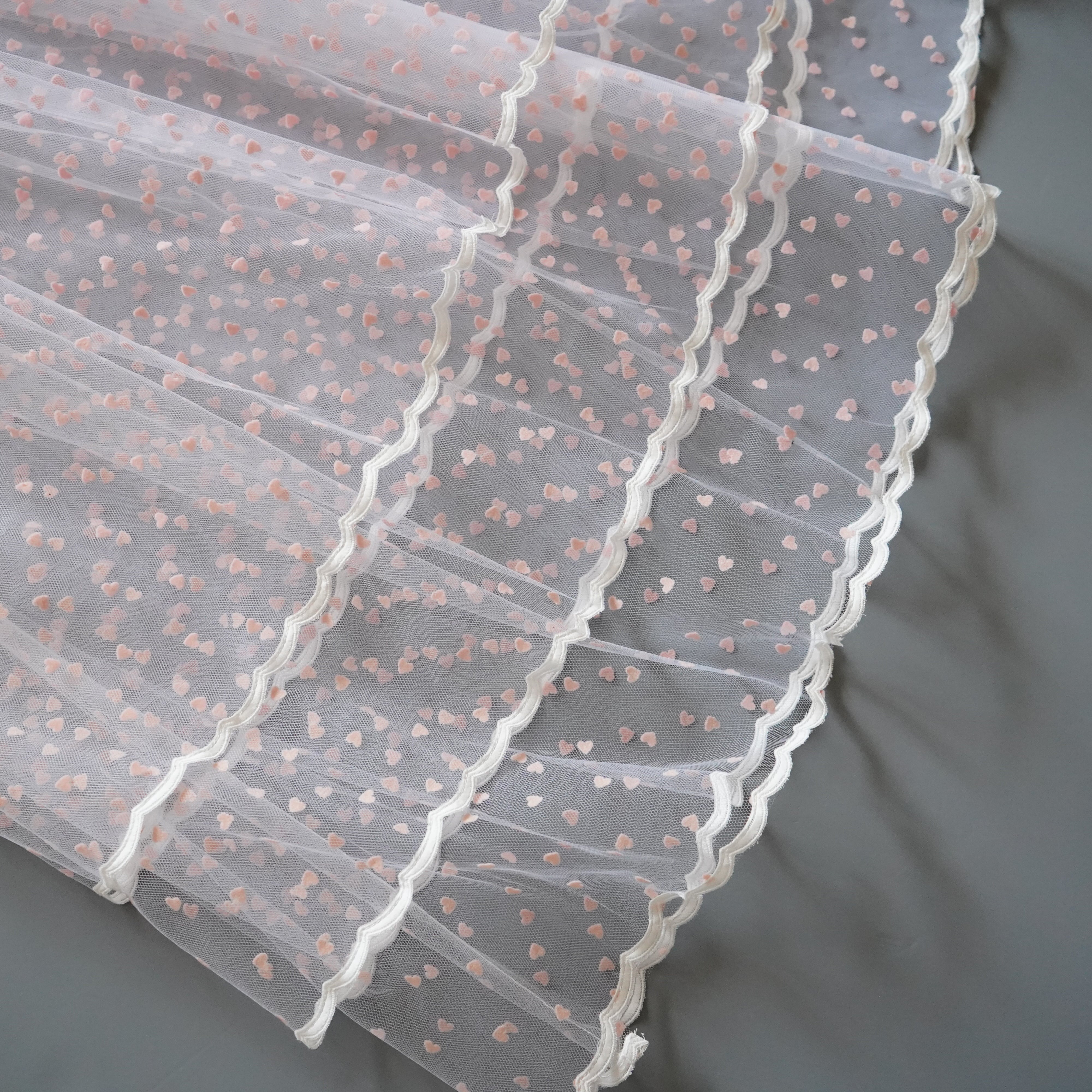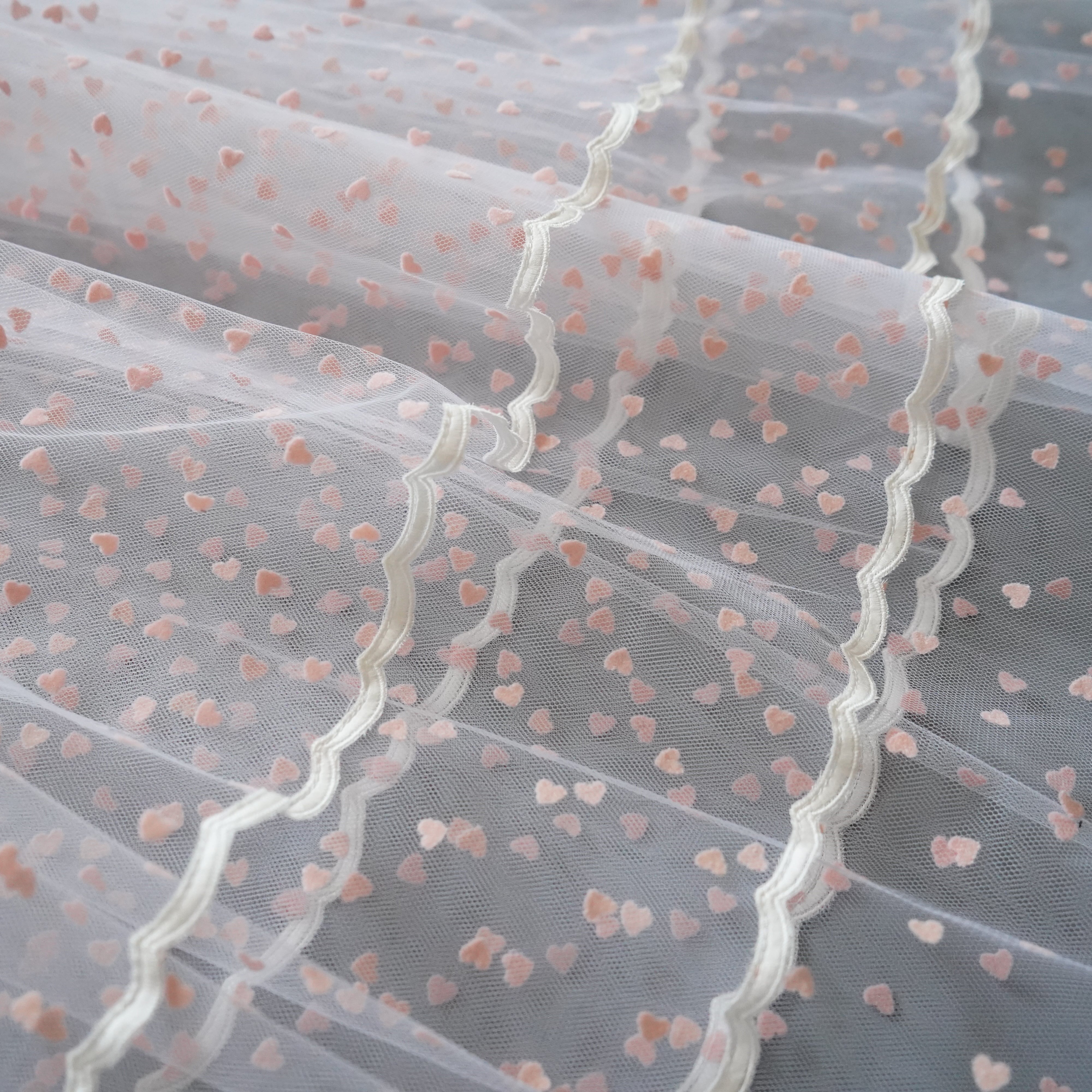 ハリのあるチュールレース生地に、フロッキーのハートがドットに入っています。