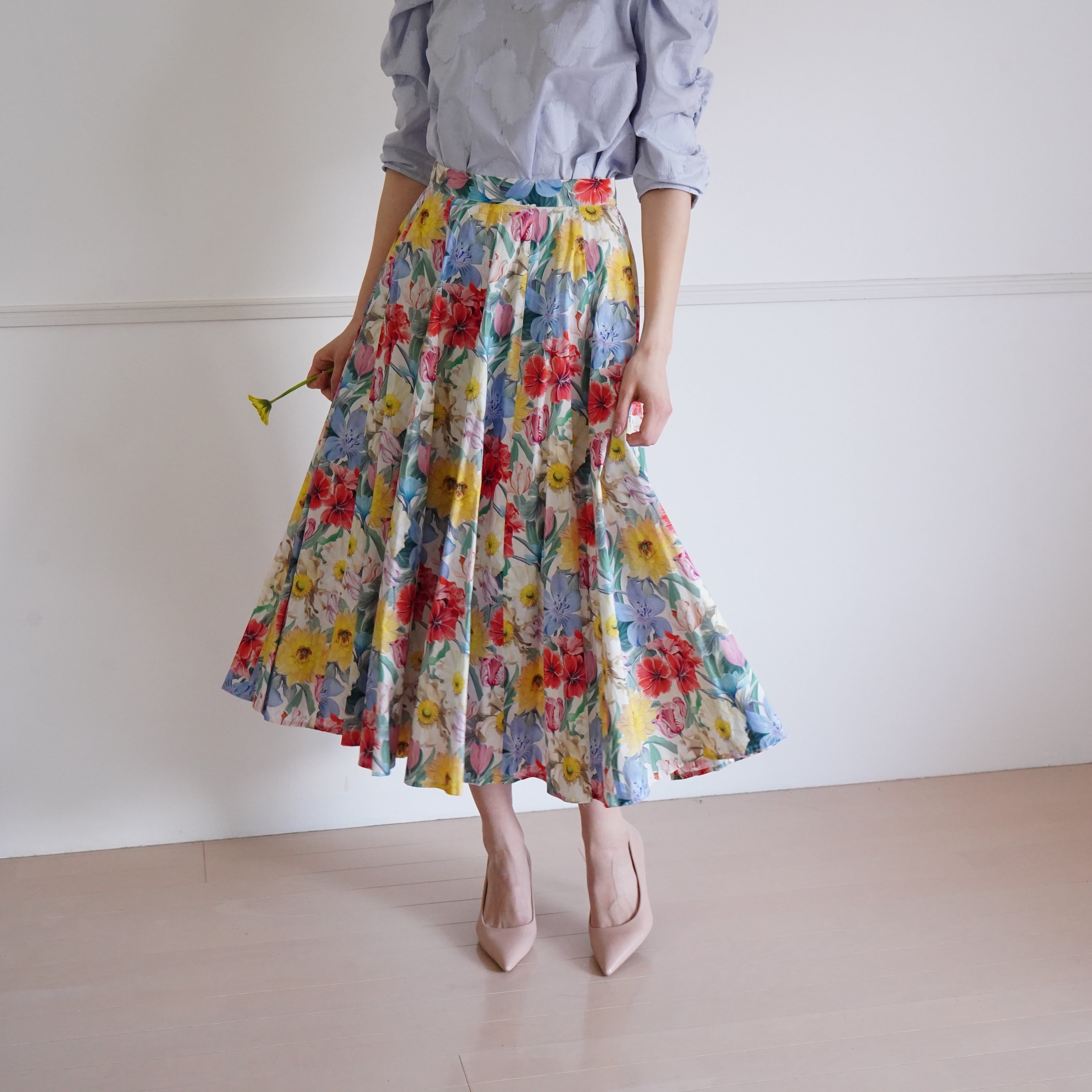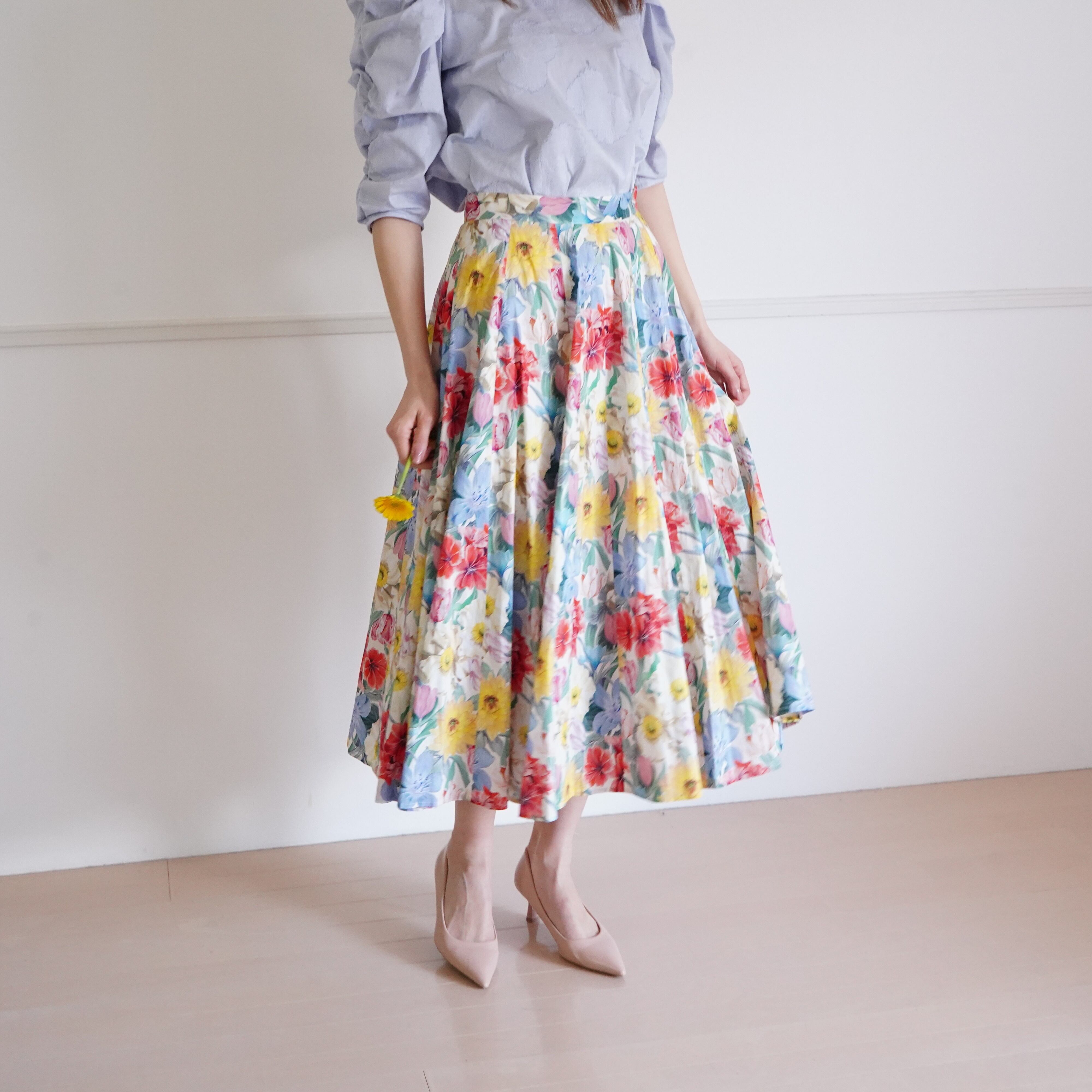 大きな花柄がとても華やかなスカートです。