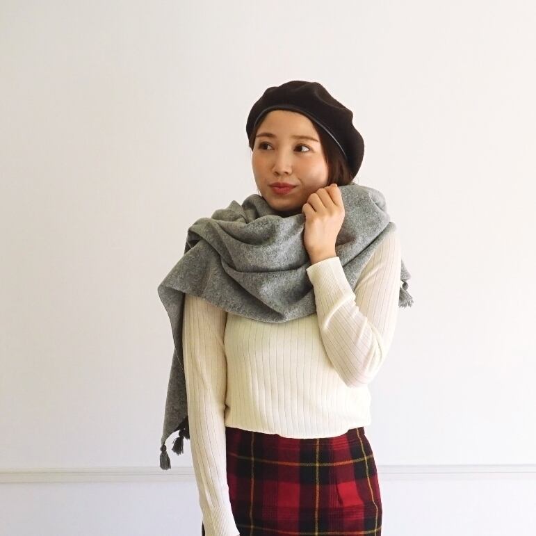 お顔周りにほどよいボリュームを出してくれるストールです。
