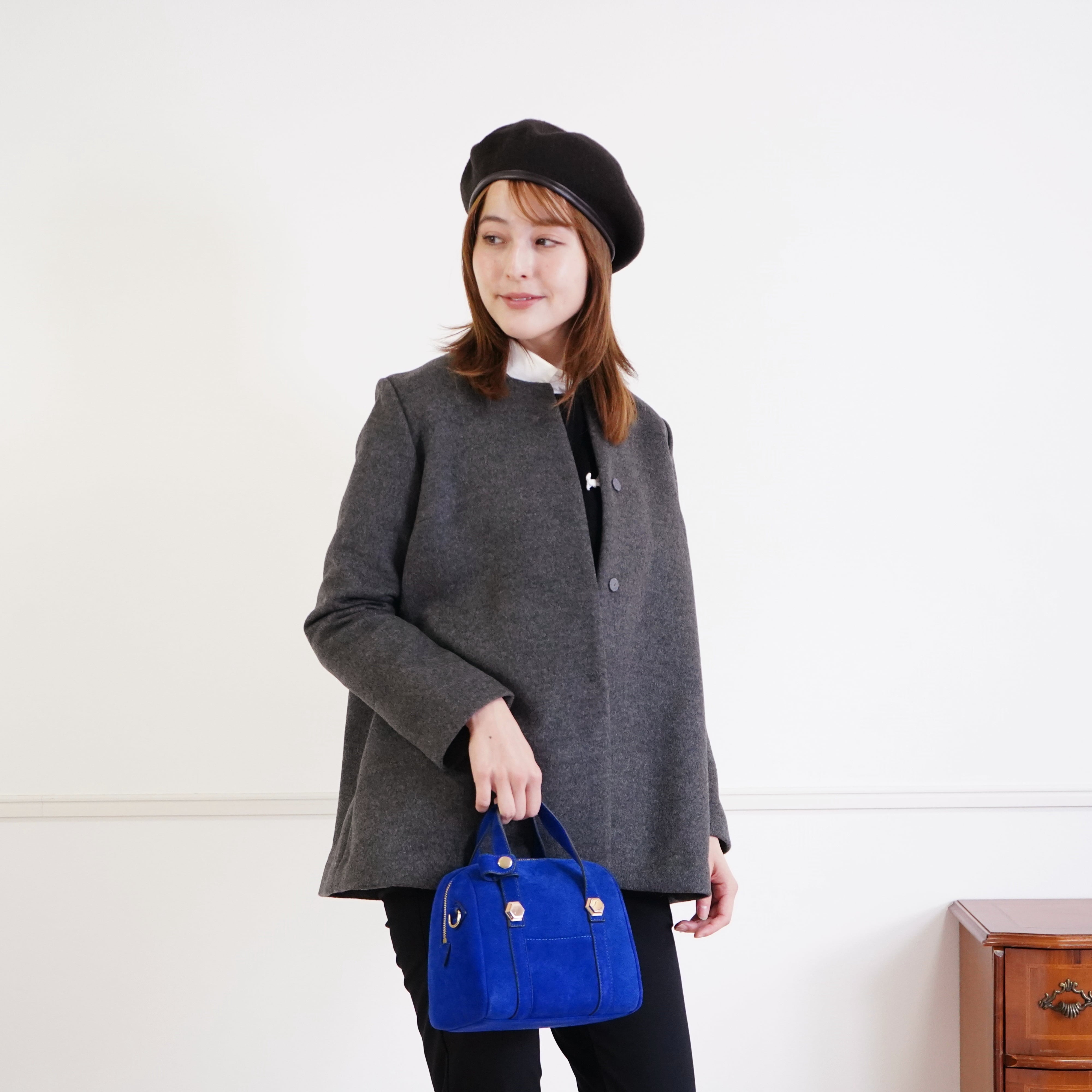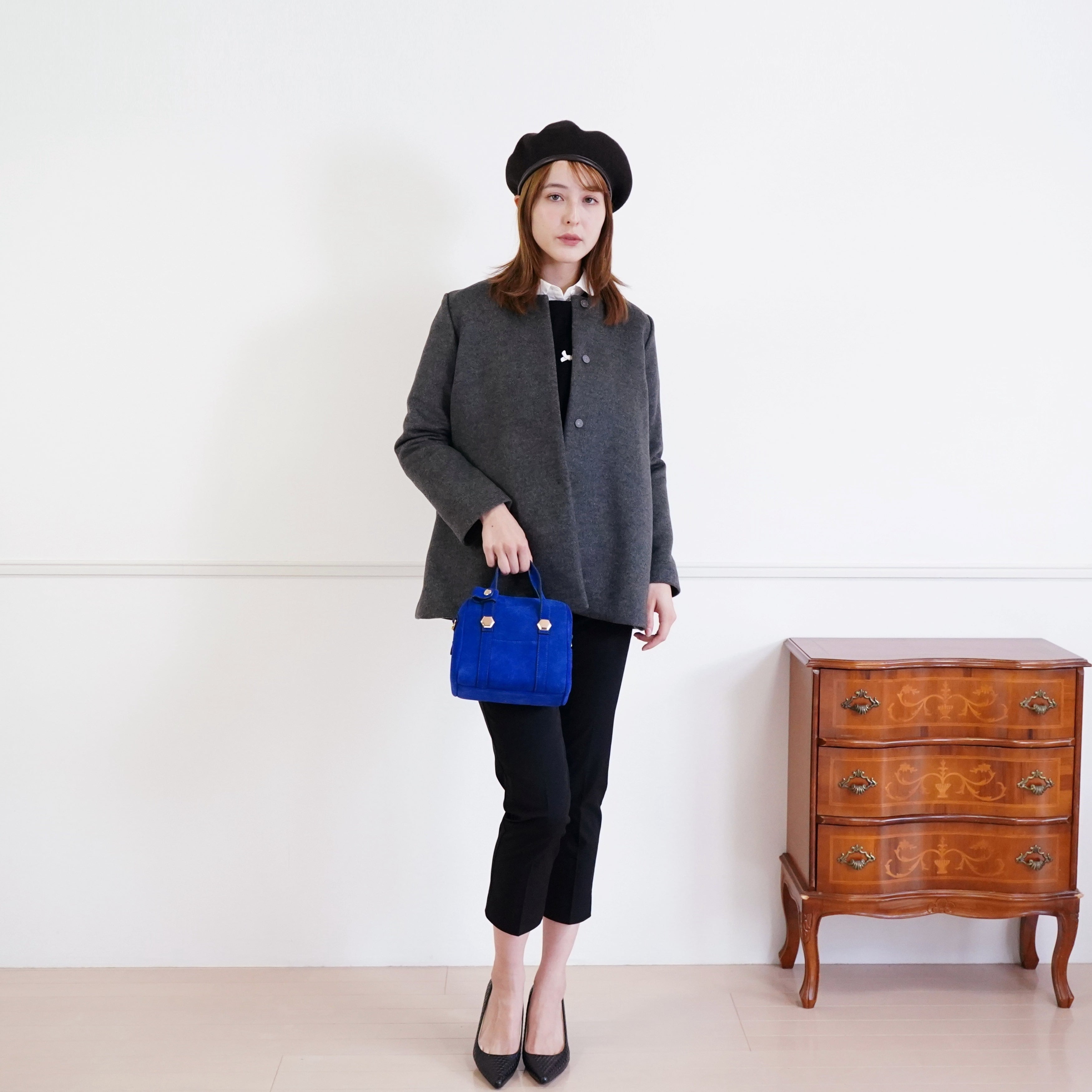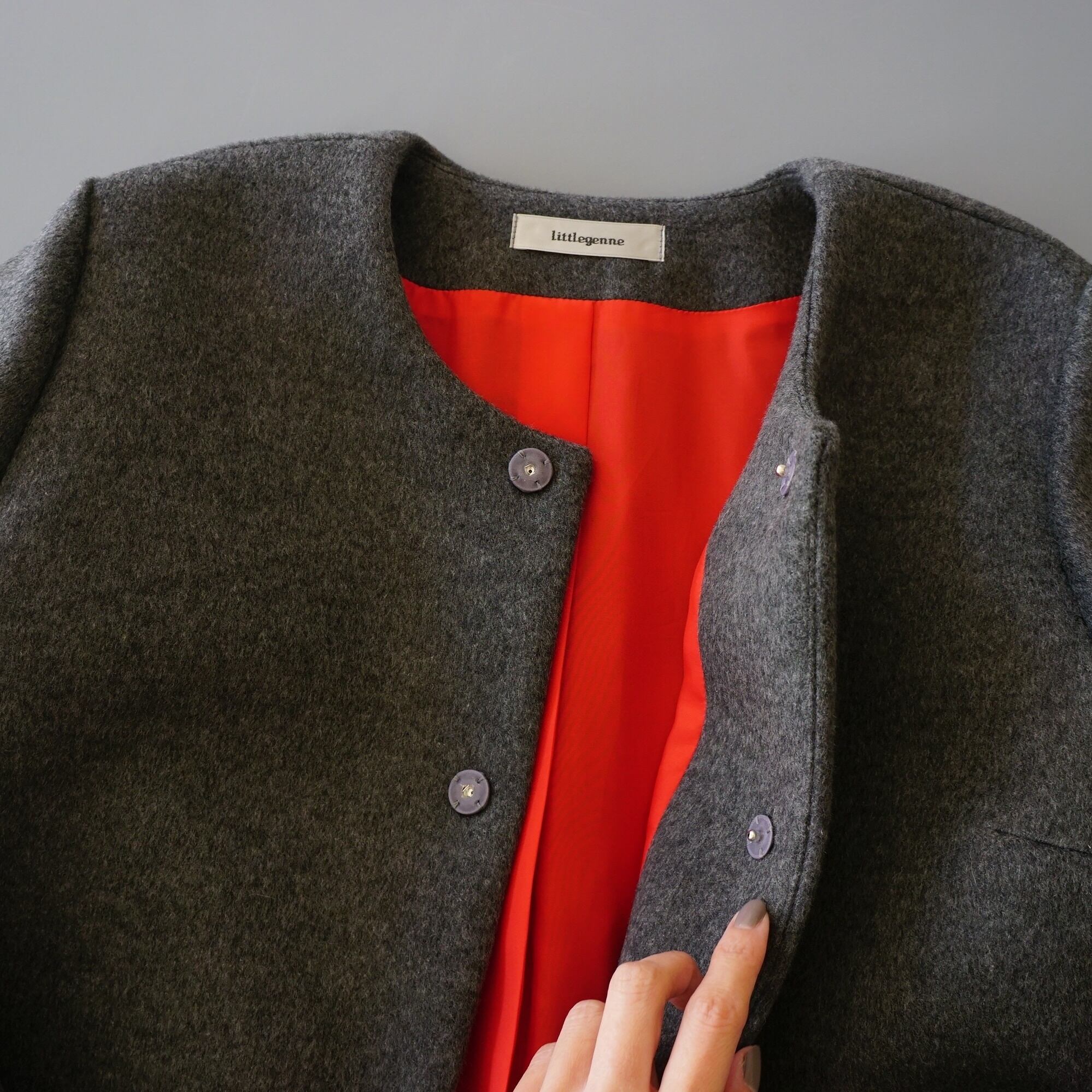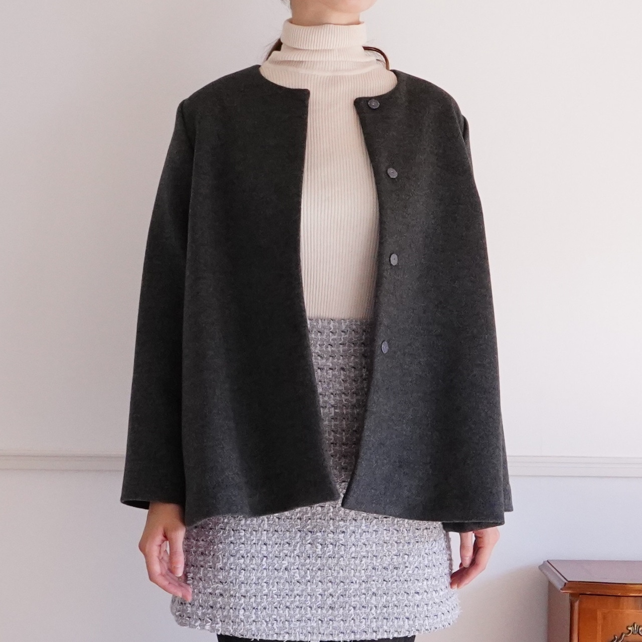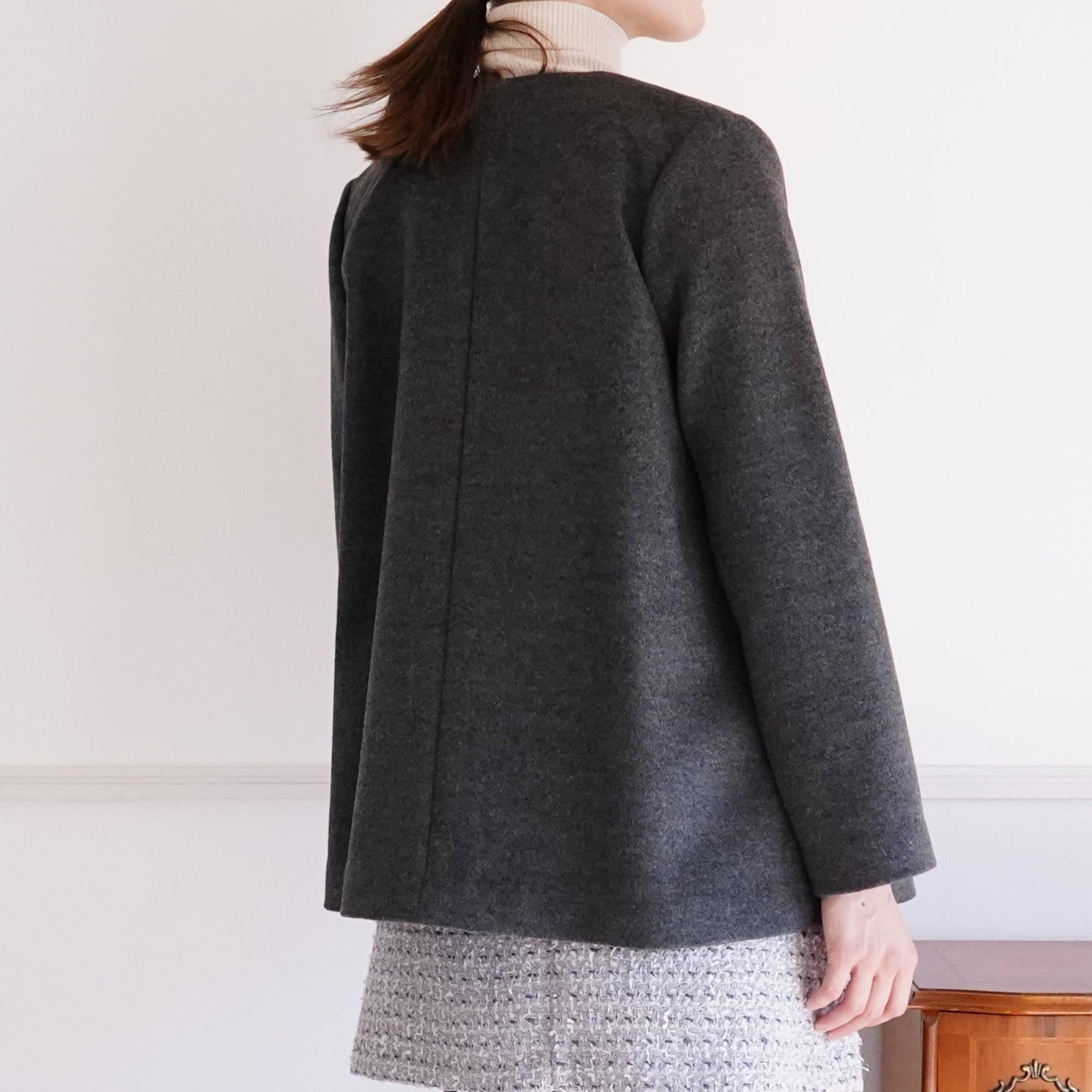 Cashmere coat とろける!最上級カシミヤ100%のノーカラーコート(グレー)