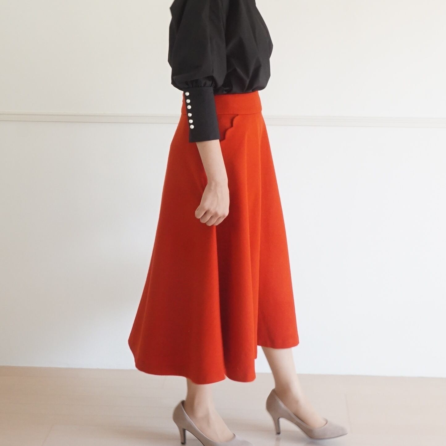 ウールフラノを使ったたっぷりと量感のあるフレアスカートです。