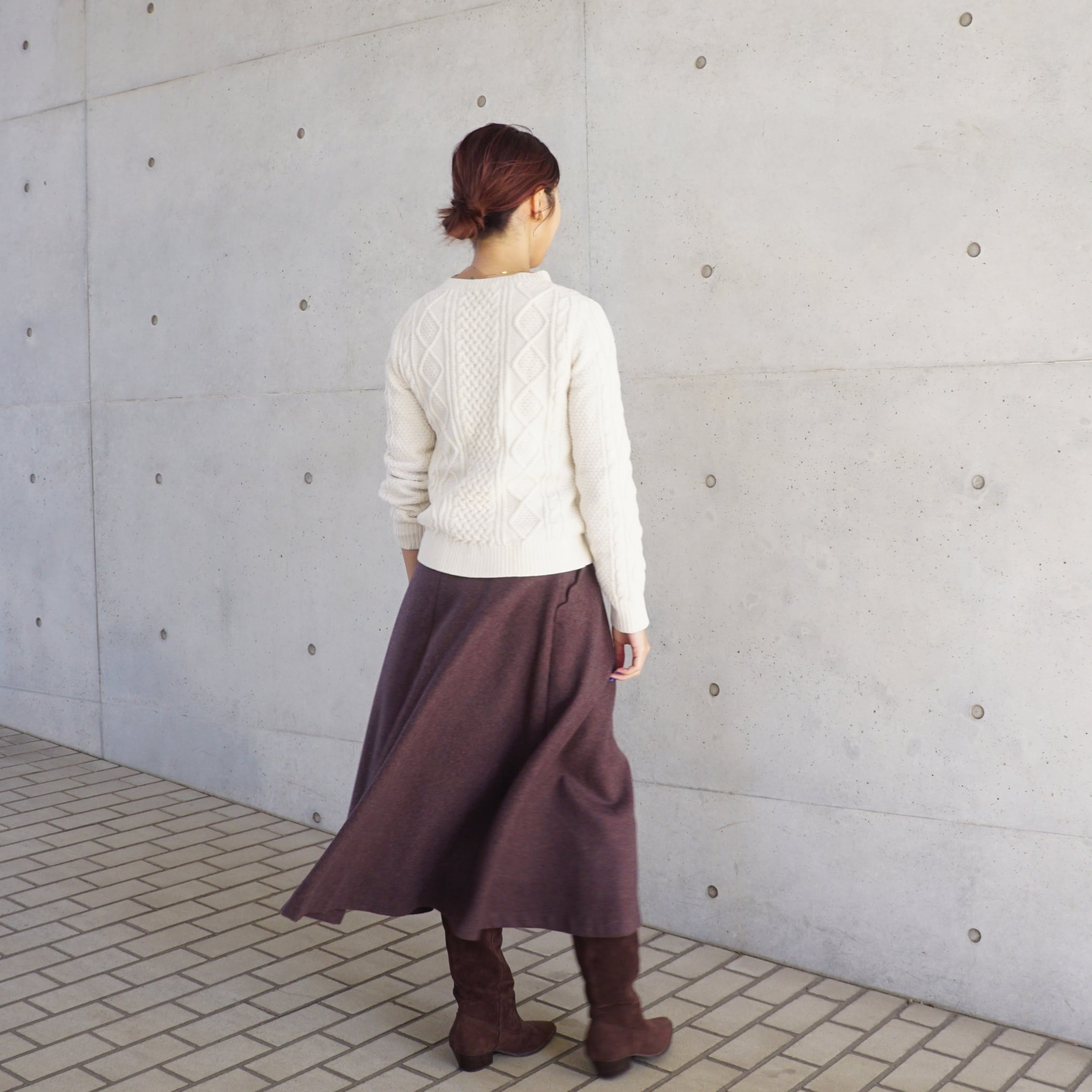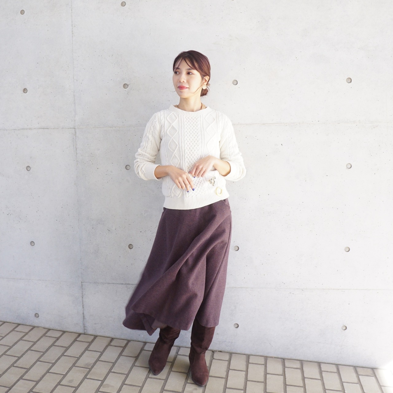 ボリュームのあるニットを合わせたスタイリングまで。