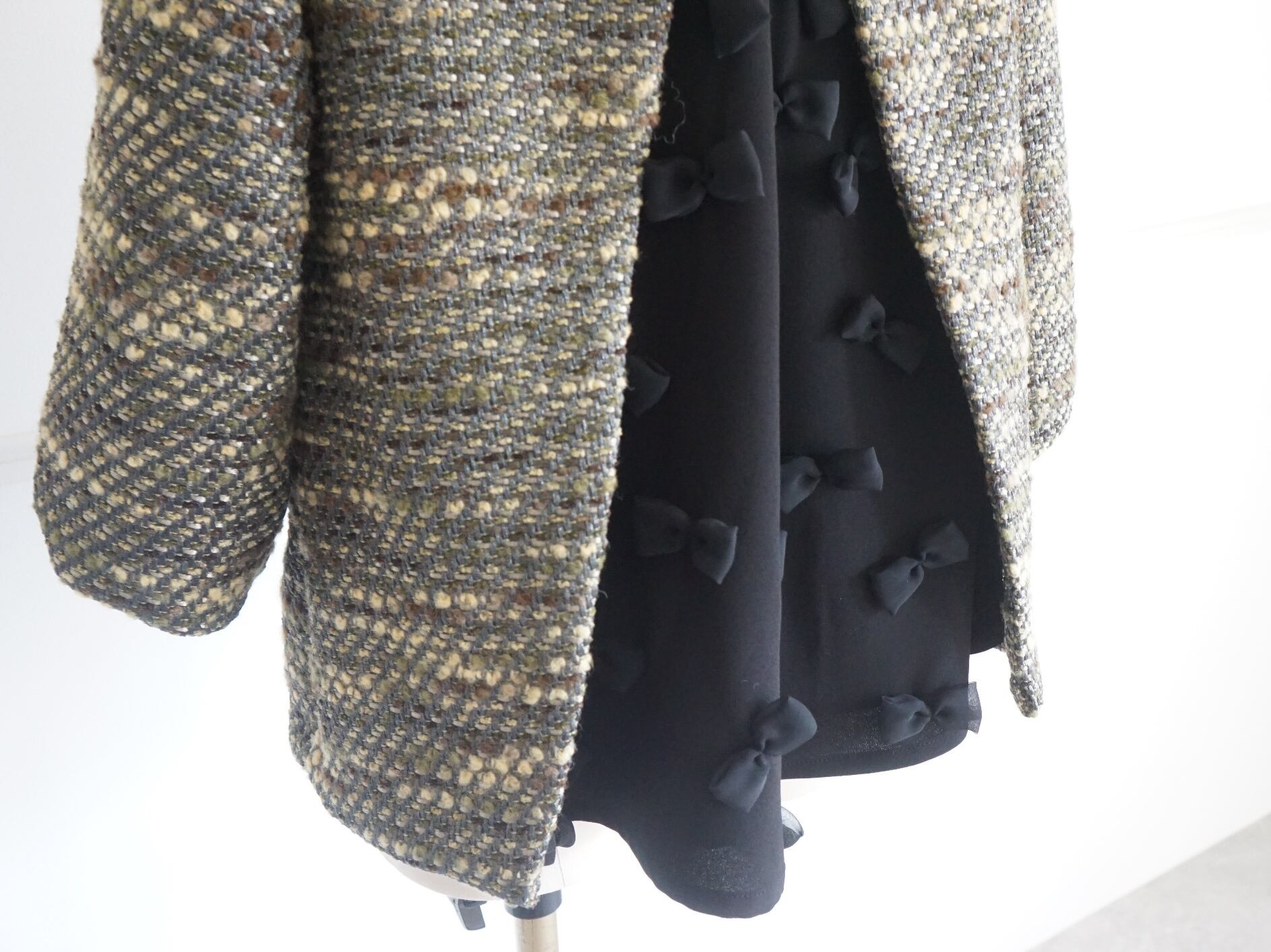 後ろ沢山リボンのリントンツイードブラウス(ベージュ系)38