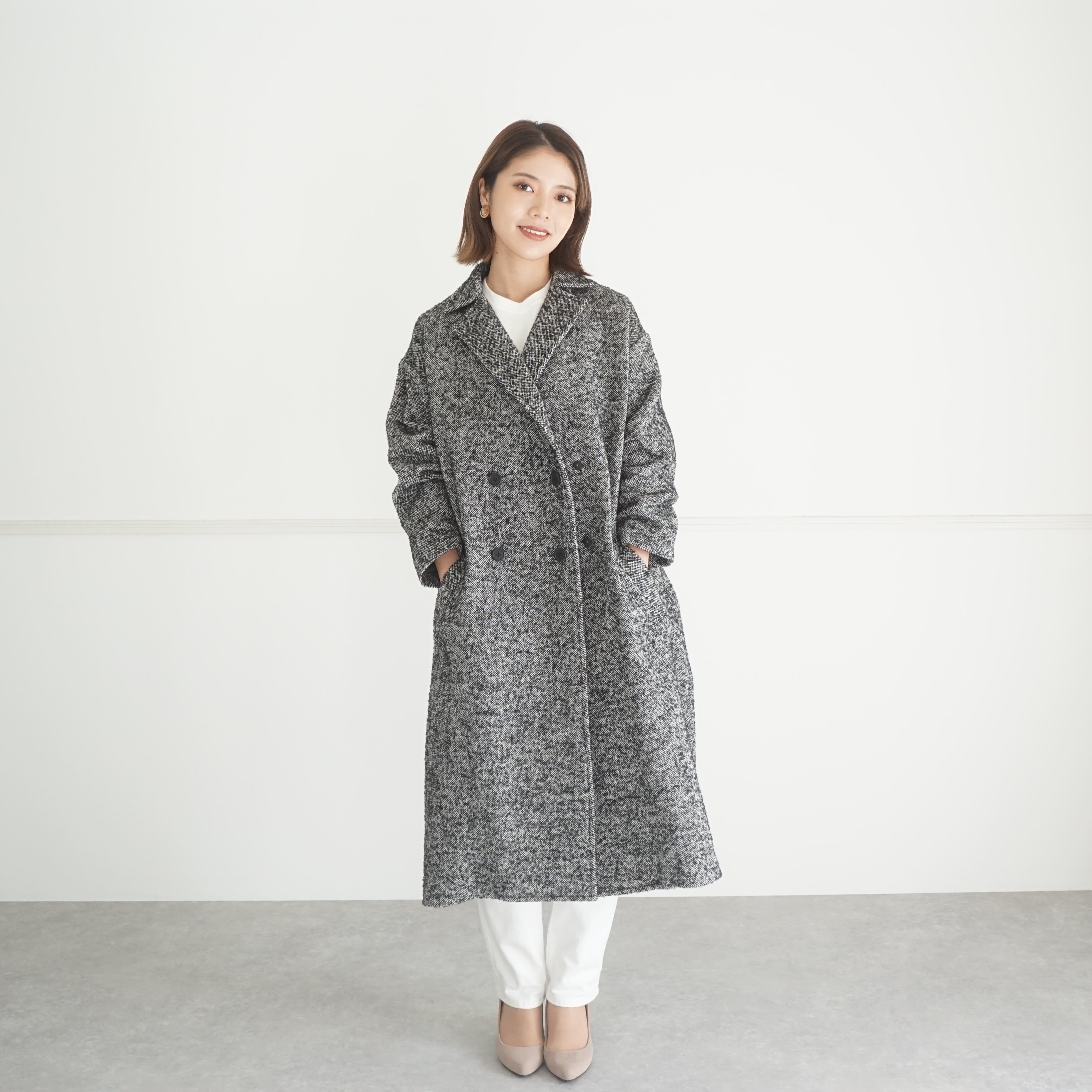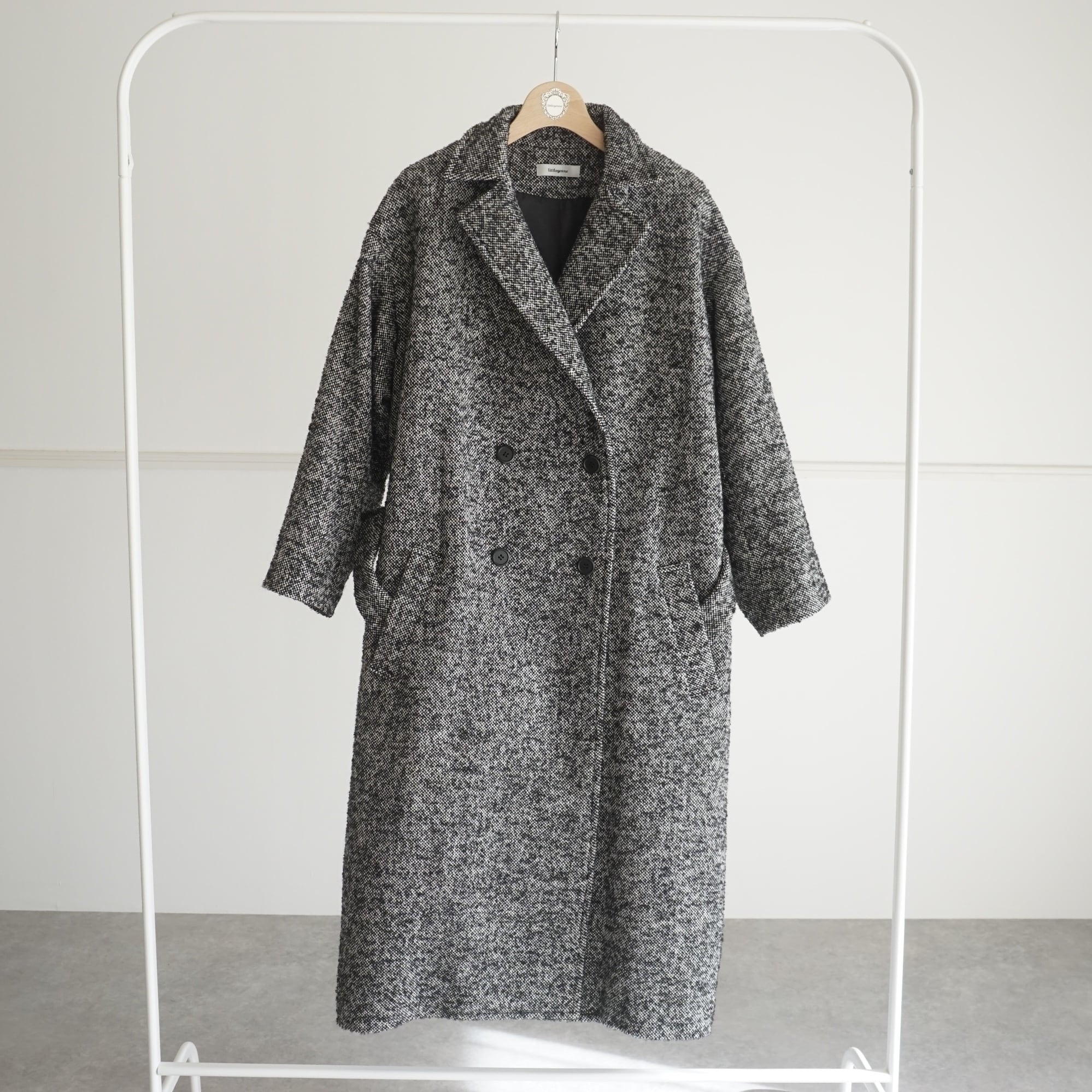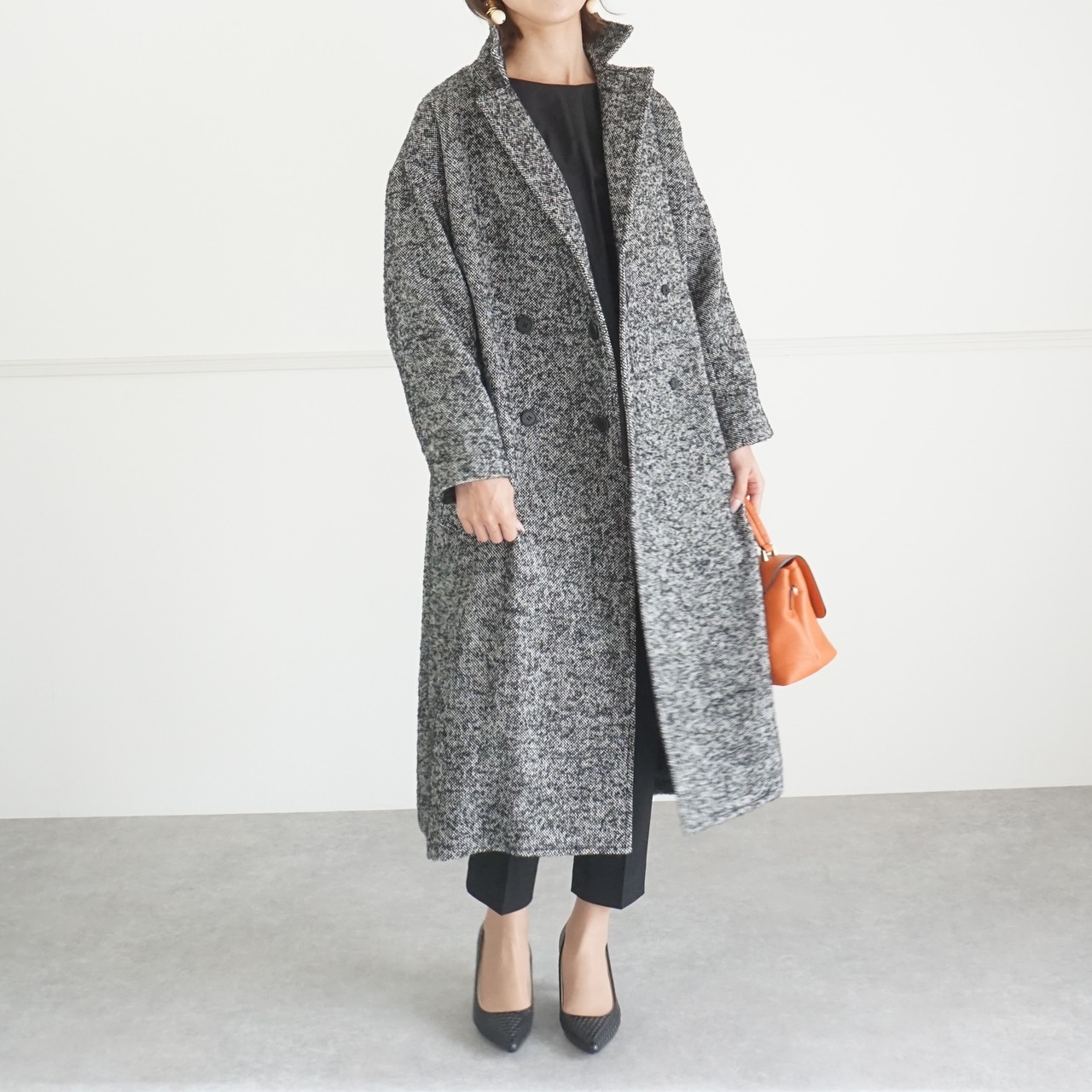 Tweed double breasted long coat ツイードダブルロングコート(ブラック)38