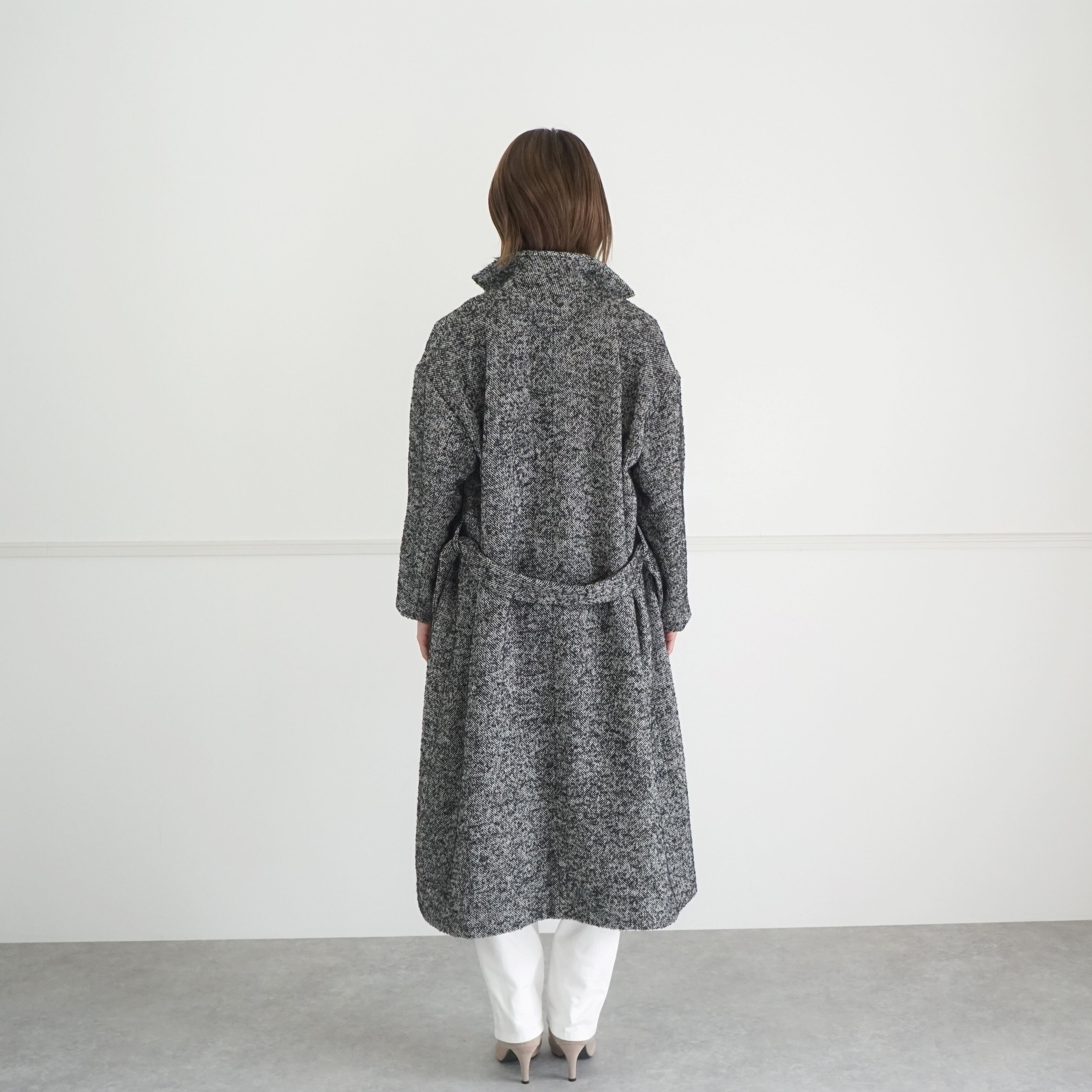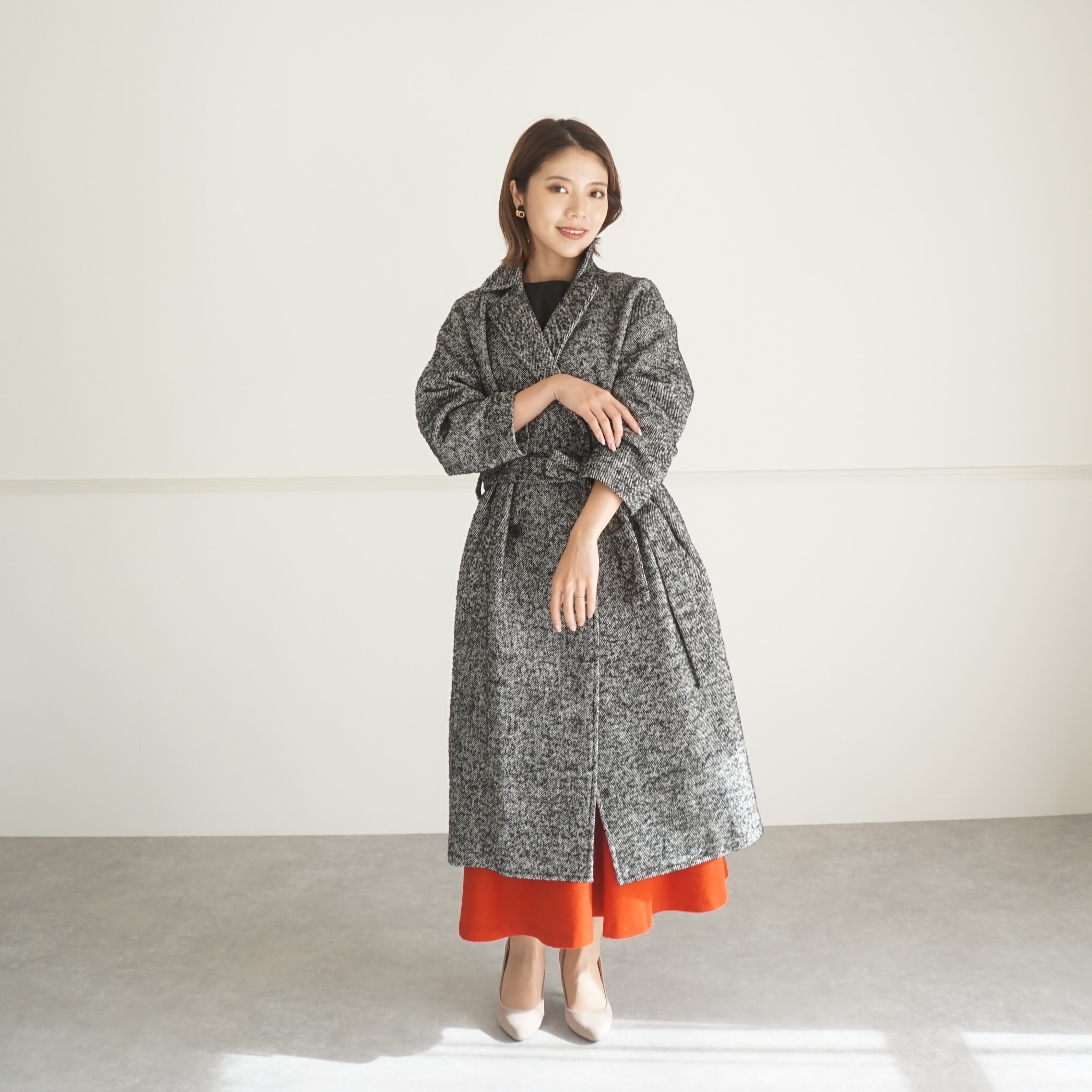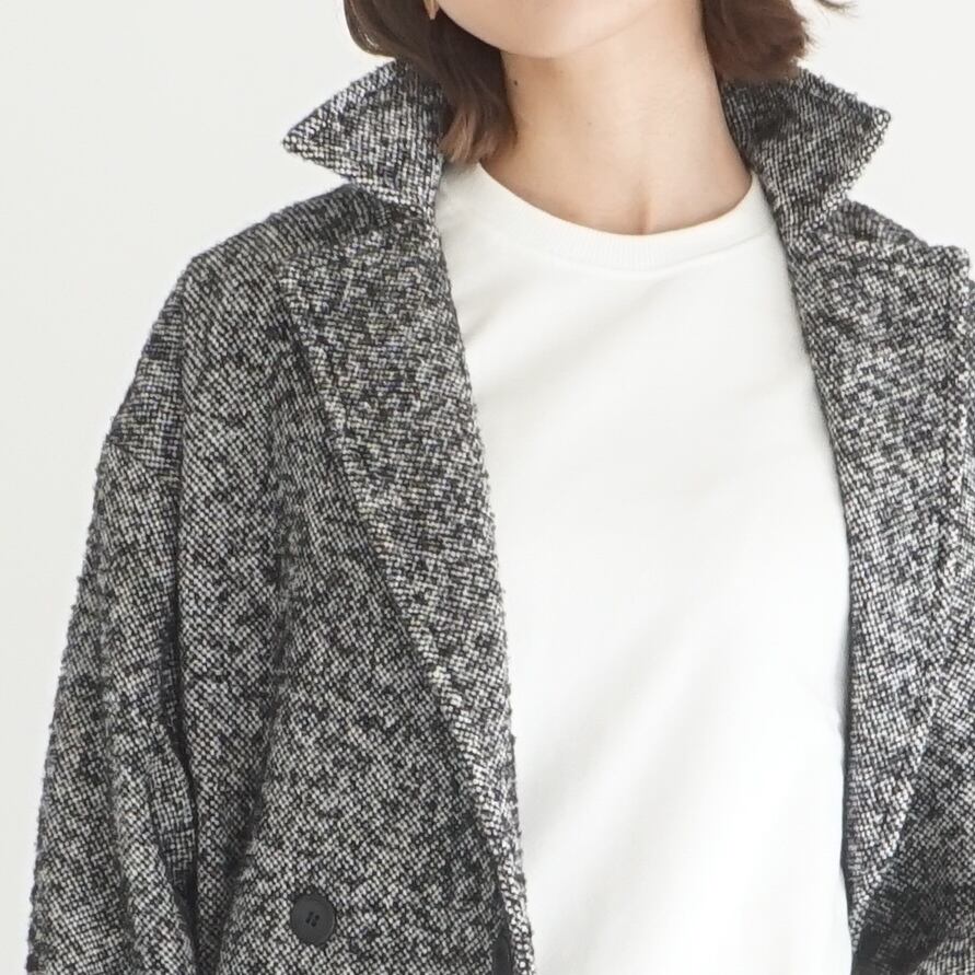Tweed double breasted long coat ツイードダブルロングコート(ブラック)38