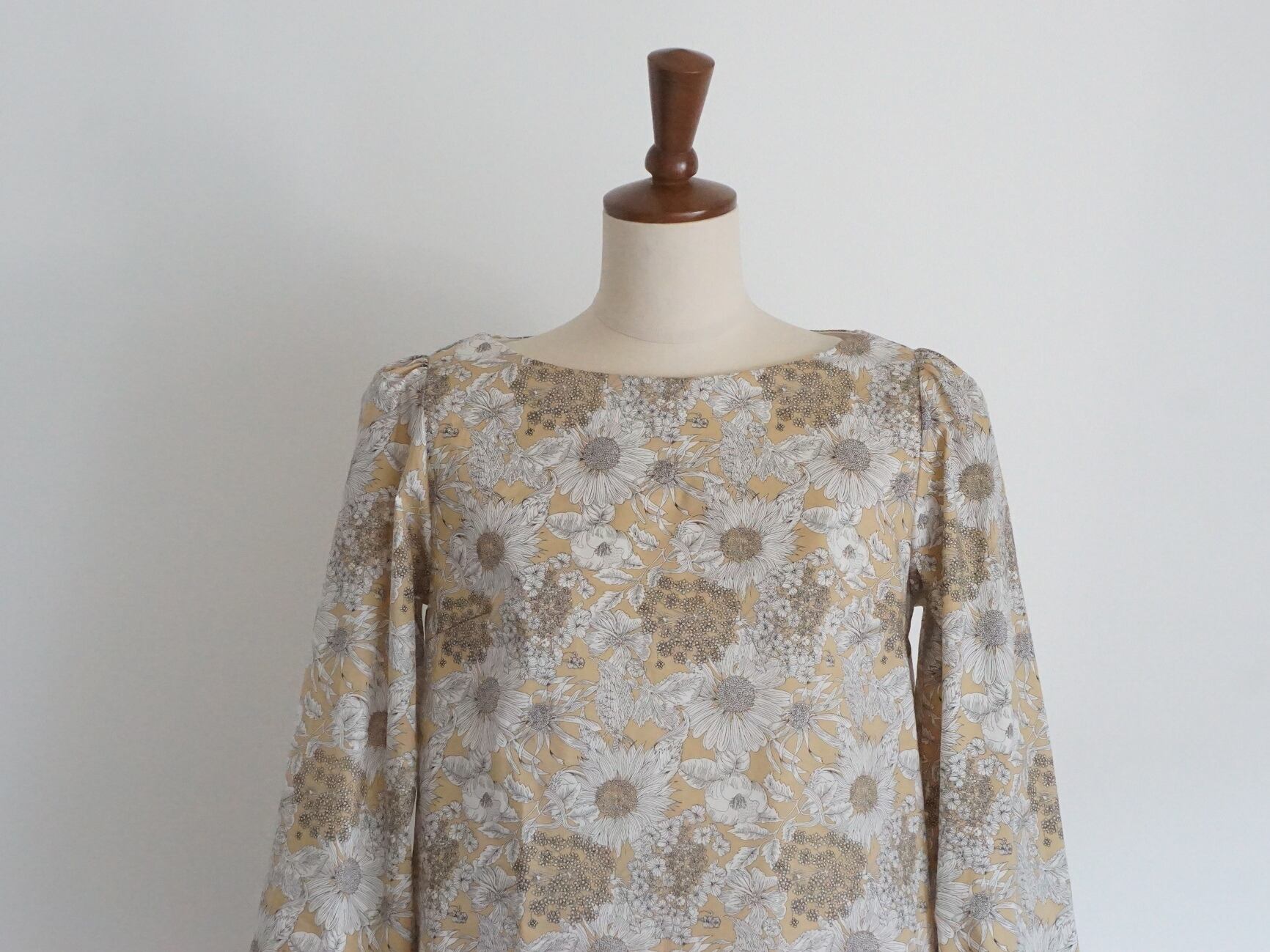 サンプルセール★リバティの花柄タック袖ブラウス(ベージュ)38