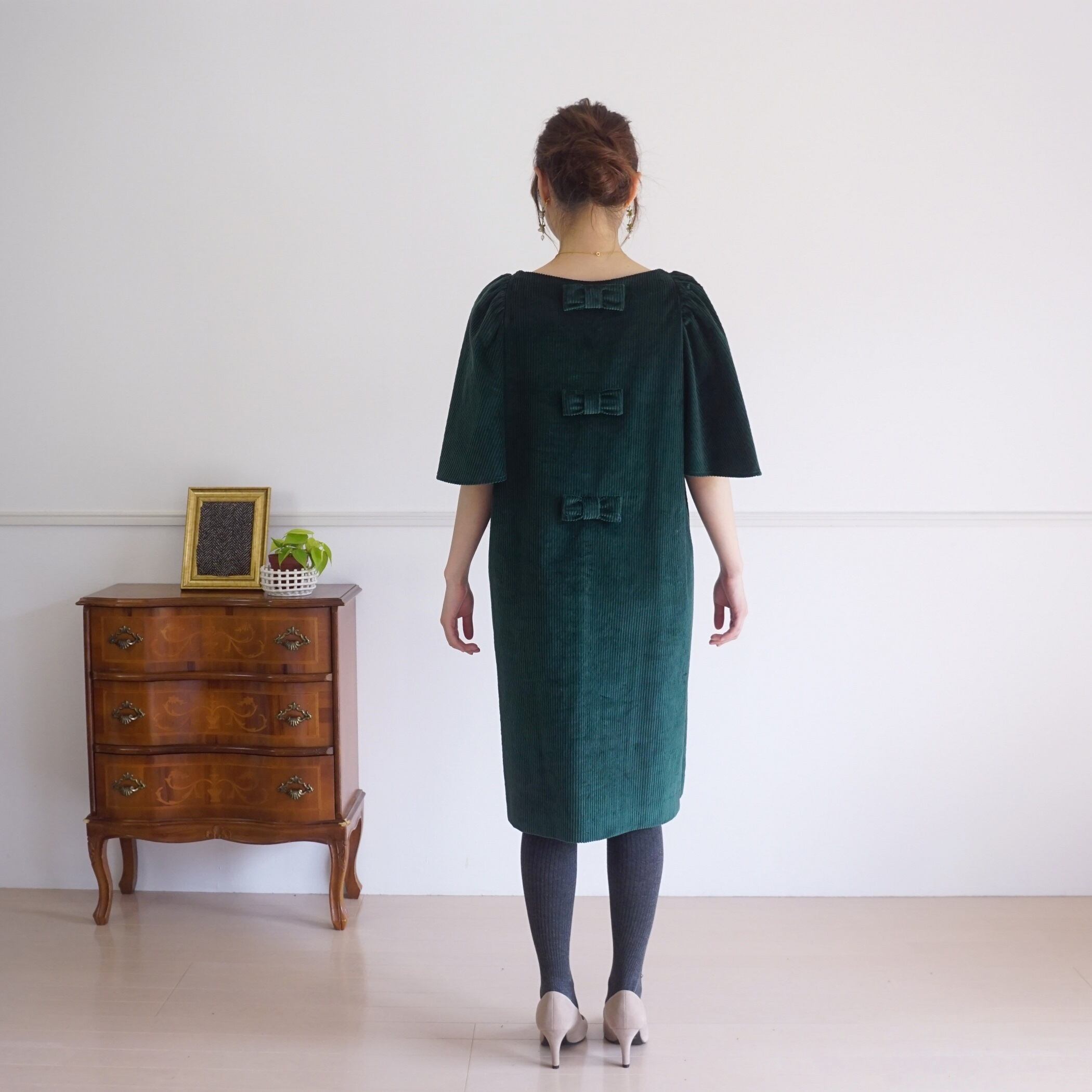 Corduroy flare sleeve dress 深みコーデュロイのフレアスリーブワンピース(グリーン)38