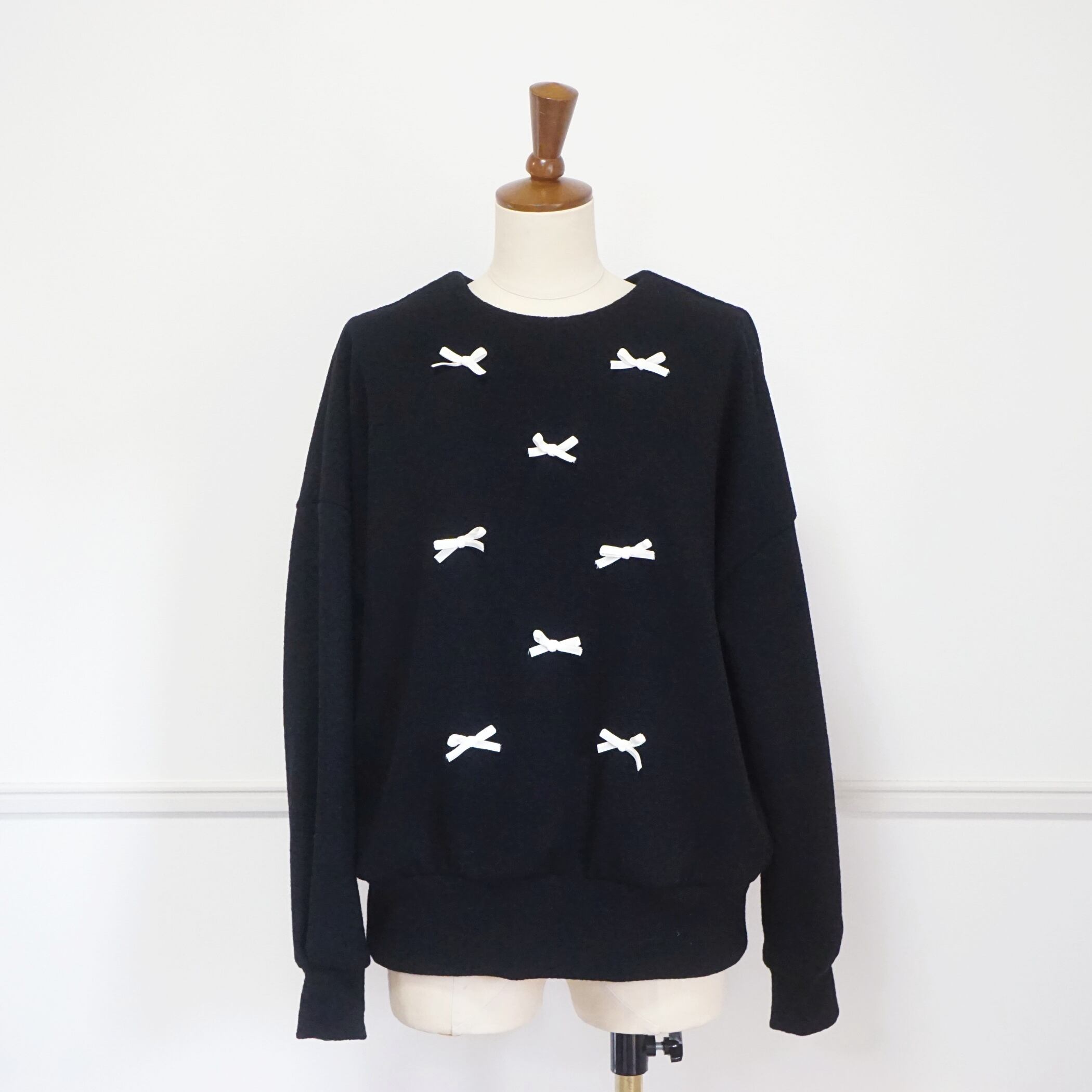 Sweater with Petit Bows プチリボンニット(ブラック×オフホワイト)F