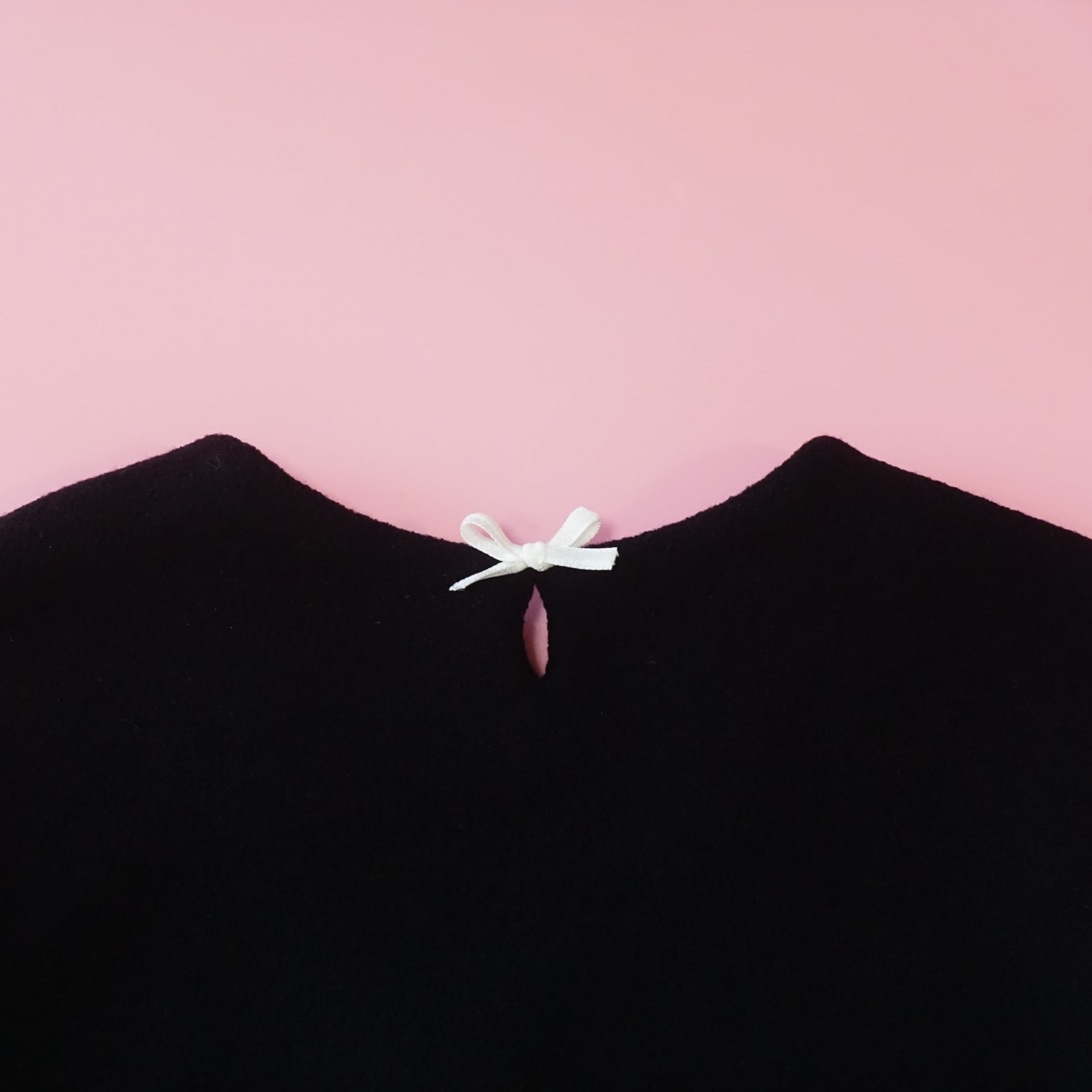フロントと後ろの涙あきにベルベットのプチリボンです。