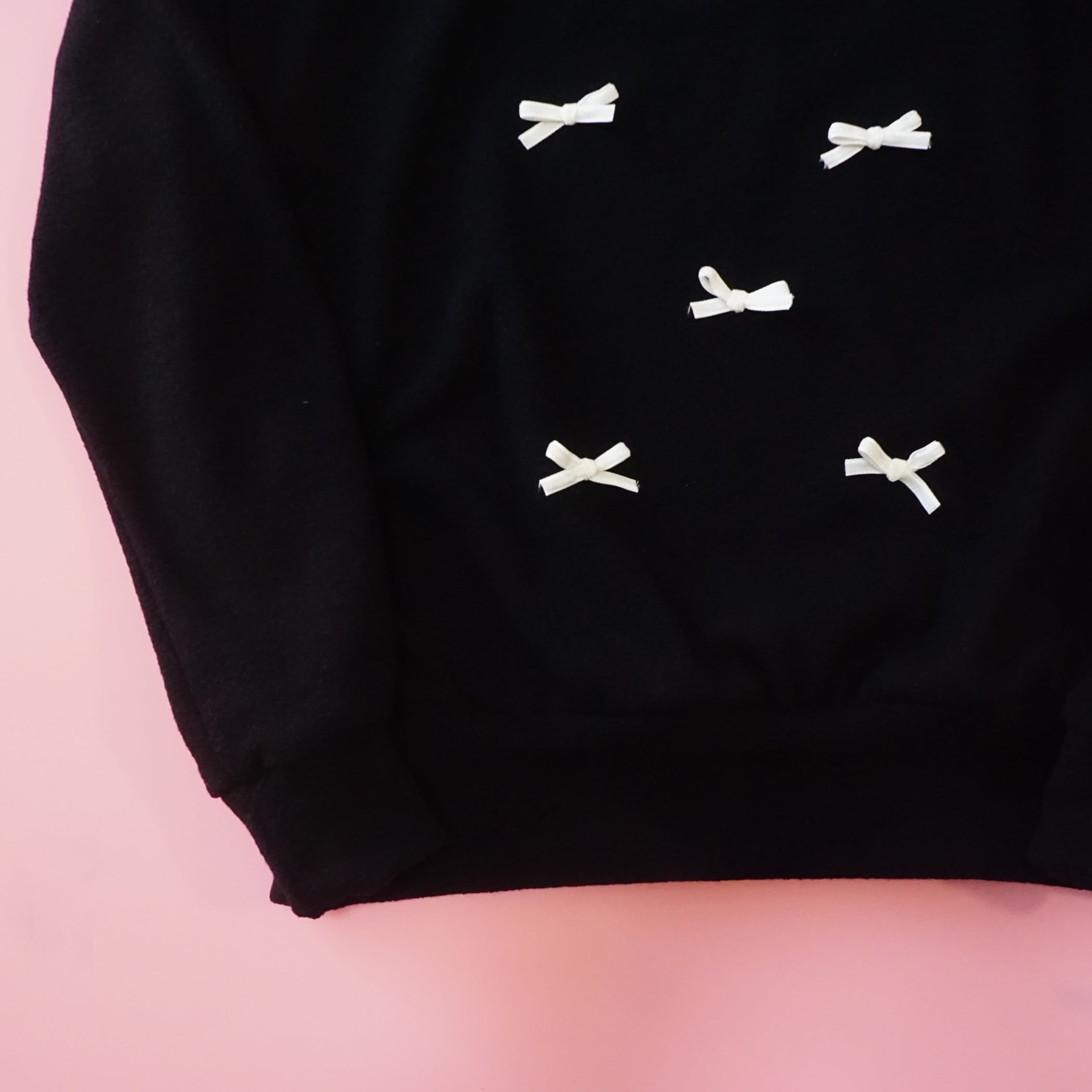 【セットアップ可】Petit Bow Sweater プチリボンニット(ブラック×オフホワイト)F