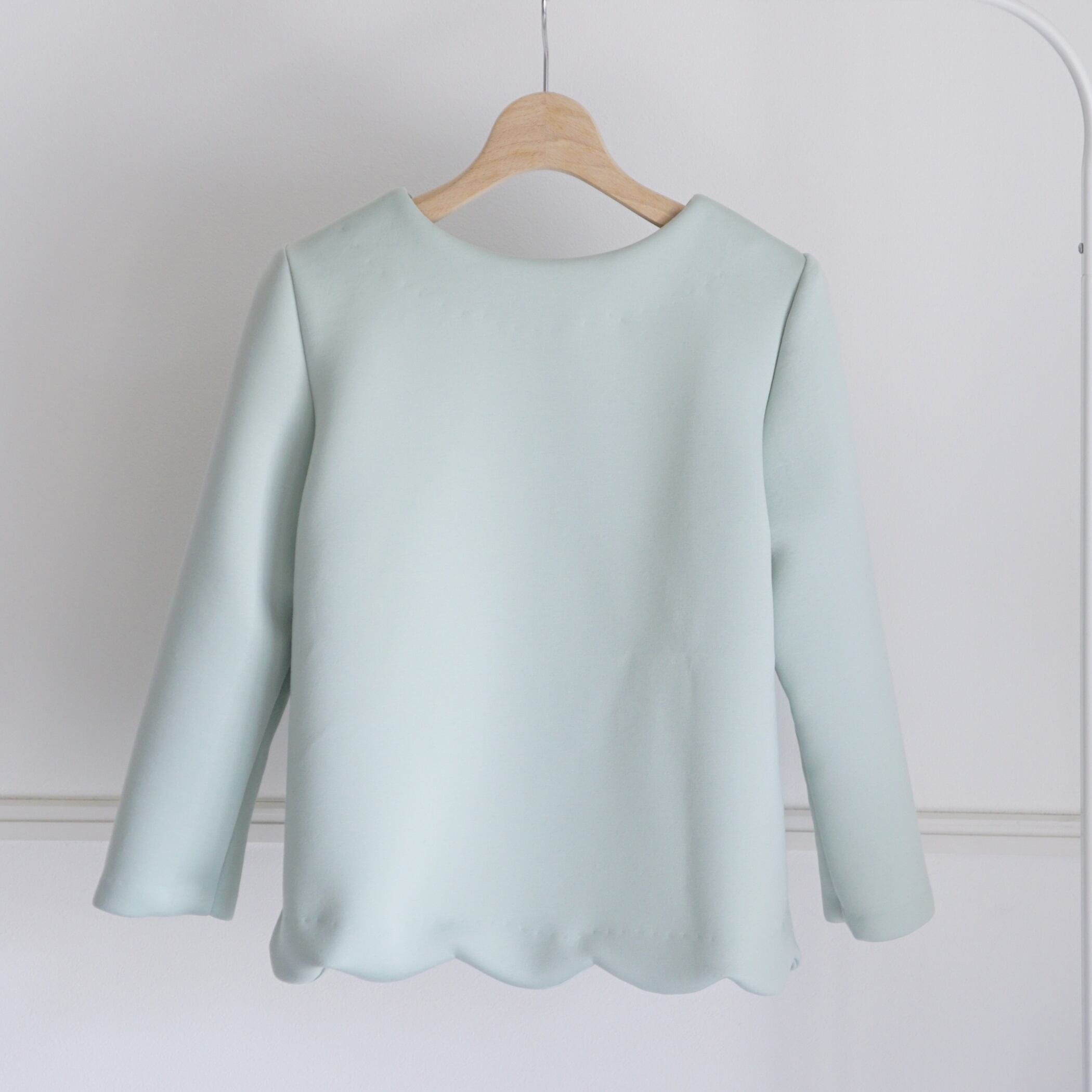 裾のスカラップで、お手持ちのボトムスも新鮮なコーデに。