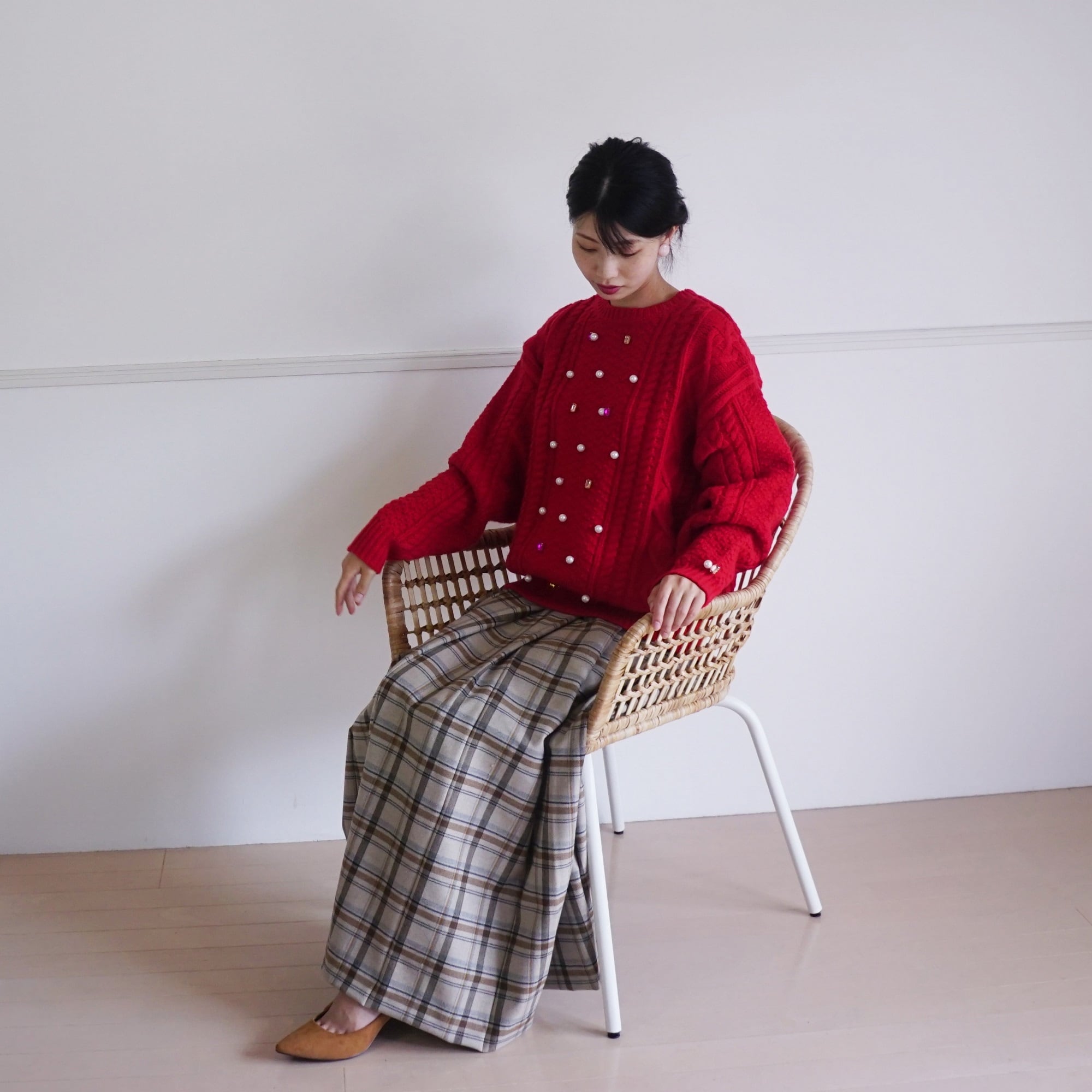 Bijou Aran sweater ビジューパールアランニット(レッド)F