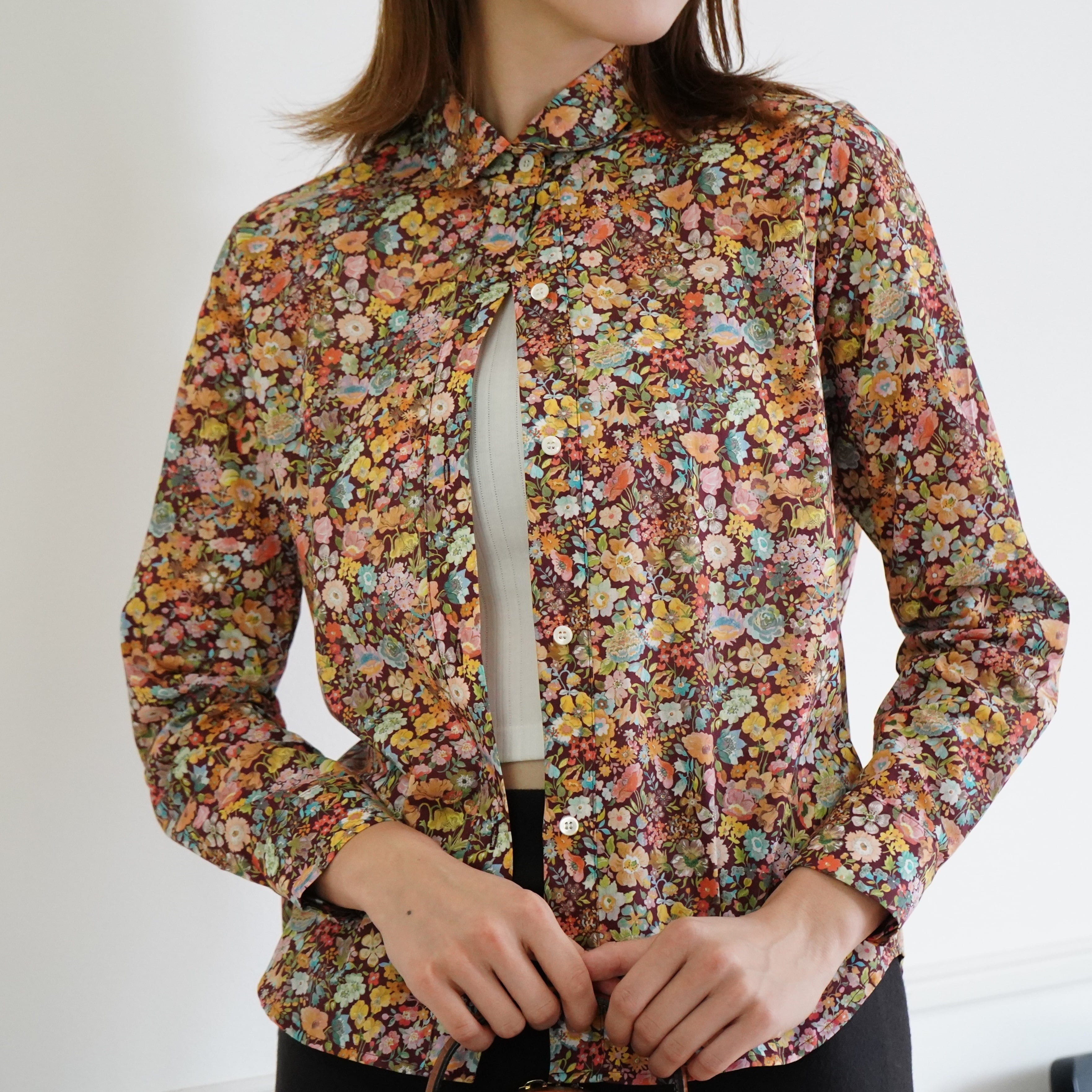 台襟つき丸襟シャツブラウス(リバティ・ブラウン)38