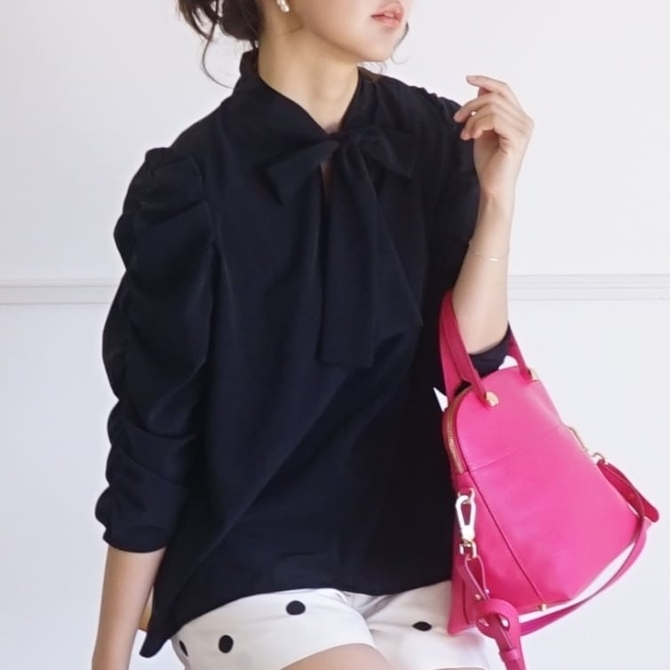 くしゅくしゅ袖ボウタイブラウス(ブラック)38